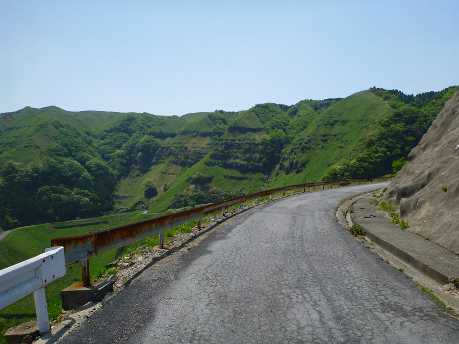 早朝5時3人の仲間と共に、阿蘇を目指します。阿蘇へは何度も行ったことがありますが、今回は自転車での往復に挑みます。 夜明けが早くなりましたね。スタート後間もなく空は白み、6時頃太宰府付近で日の出を迎えます。長い道中への漠然とした不安を覚えながらも、まだ車の少ない道を順調に走行。夜明〜日田間は霧に包まれた景色を楽しみながら走る幸運にも恵まれます。 9時前には日田市街を通過、国道212号に入ります。いよいよ阿蘇への本格的アタック開始です。途中お気に入りの松原ダム湖の景色を撮り、杖立温泉では川を埋め尽くさんばかりの鯉のぼりを撮影。この頃には長旅への不安も何処へやら、下城の滝そばまで立ち寄る余裕も。(小さな写真はクリックして下さい) それにしても、木々の新緑の色が瑞々しく目にしみます! 阿蘇が近づくにつれ勾配は厳しさを増し、予定よりやや遅れ12時過ぎに阿蘇山を望む場所に出ました。 早速ミルクロードに入り、今日の目的地ラピュタ・ロードへ向かいます。 とここでサプライズ!何と仲間のurumanさん夫妻に遭遇。 え〜〜っ!一歩先にラピュタ詣で!! 会話もそこそこに我々もラピュタへ急ぎます。 ラピュタ・ロードの説明はしません。写真が語り手です!小さな写真はクリック拡大してご覧下さい。 しばらく景色を楽しんで1時半過ぎ、やや遅くなりましたが阿蘇を後にします。帰りは菊池渓谷を通り抜け、山鹿、小栗峠、久留米を経由するコースを取ります。片道約130㎞、かなり疲れているはずなのに、最後まで30㎞/hを超える驚きの巡航スピード!まさに、帰心矢の如き走りでした。 結局は8時頃の帰宅となりましたが、走行距離263㎞、充実度120%、達成感120%、大満足の一日でした。
