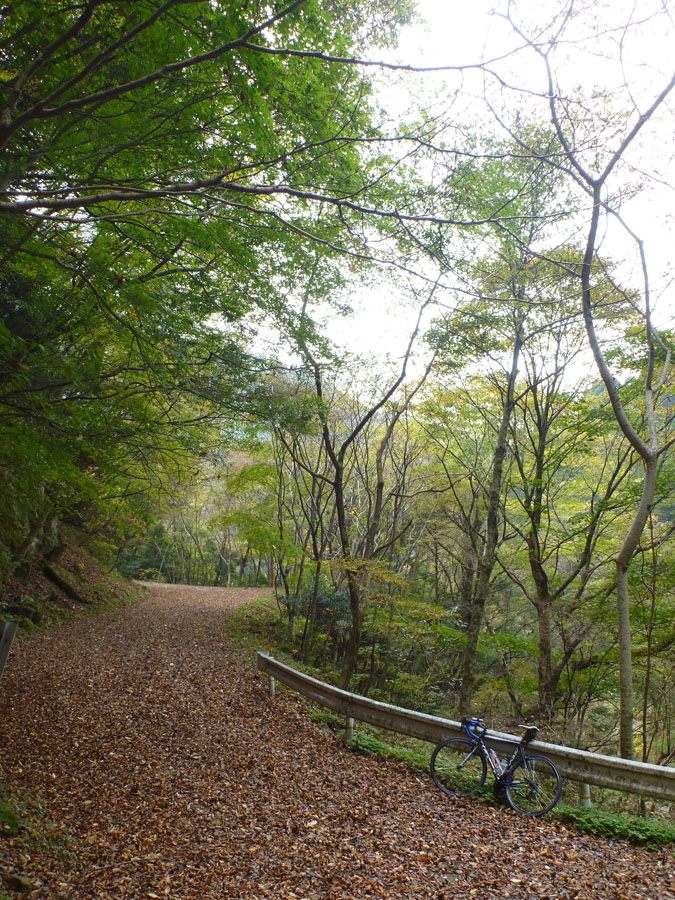 杣の里手前で見かけた銀杏に、これが最後の見所になるかも、、、、とばかり皆一斉にシャッターを切ります。 杣の里から先は、道路封鎖されていました。しかし、それで引き返す者は誰もいません。封鎖の間を通り抜け、落ち葉散り敷く道にタイヤを滑らせながらも構わず上っていきます。 しか〜〜し、突然出現した崖崩れ現場!道路封鎖も当然です。 青年メンバーには、しかし、撤退の文字はないようです。ロッククライミング? 自転車を担ぎ、次々と岩場を通り抜けます。 この先、急勾配の坂を重いギアで駆け上り、とっくに視界から消えてしまった青年部の後を息を切らして上ると、やっと釈迦岳下の椿ヶ鼻の高原です。生憎の曇り空ですが、却って晩秋の風情が感じられます。 山頂をめざす青年部メンバーを見送り、冬物のウエアに着替え遠くの景色を眺めて寒さから気持ちをそらします。メンバーそれぞれが釈迦岳の激坂に思い出を刻んで戻ると帰路に就きます。ここまで3回のパンク騒動で予定時間をかなり回っています。 修理の度に遅れを取り戻す構図ができ上がったようです。 パンク王はN村さん、一人で6回引き受けました。タイヤも2本!パンク部長は驚愕人、peさんで2回。そして、パンク平部員は私で1回。お釈迦になったチューブが1日9本!!! 若い過激メンバーが多いだけにパンクロックがお好きなようで、パンクあり、ロッククライミングありと、、(^o^) 合所ダムに着いた頃には日暮れも間近。最後の記念撮影の後、筑後平野へ突入。福岡組3人は吉井からJR輪行。筑紫野組4人は空腹に耐えながら自走で帰ります。それぞれが忘れられないドラマを背負って、、、END 最後になりましたが、参加の皆さん、いろいろ助けて頂きありがとうございました。そして、楽しい出会いと思い出に感謝。
