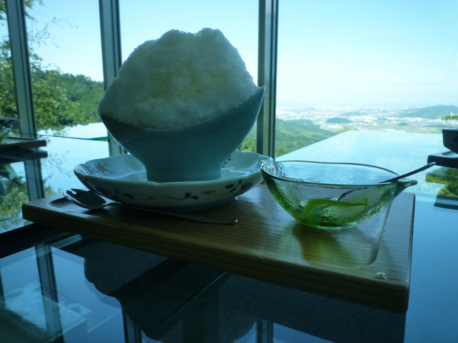もっとも前日、校区のお祭りで楽しく飲んだせいか体調が優れない。加えて、朝からの暑さでとてもスピードを出せる状況にないのが現実。かろうじて、仲間に遅れず付いて行く状態。結構無理をした次第です (^^ゞ しかし、元々調整のために企画したツーリング、走るにつれて徐々に元気回復。更に、米の山と共に、わらび野が目的地とあって期待も高まります。何と言っても、前回訪問した折の好印象が強く残っています。 米の山は、アウターで上りきることだけを目標に、山ならではの朝の涼気を楽しみながら進みます。途中目に留まった白い花、名前がわかれば教えて下さい。『ユリ』ではありません。葉っぱを見て下さい。『ユリ』のそれとは全く違います。 我が愛車もそのパノラマの中に飛び込みたい衝動を抑えられないように見えます。(ま〜さか〜〜!) 太陽が照っているのに、むしろ涼感を覚えたのは標高のせいなのか、はたまた絶景の秘めたる魔力か?たっぷり3〜40分は景色に見とれていました。 全面のガラス窓越しの絶景。中空に浮かぶピアノ。そして、ゆったり広々とした店内。洗練された接客。汗臭い男どもには過ぎた、至福の時が流れる贅沢空間。夜景を眺めながらの食事は想像しただけでも癒されそうです。もう完全に行く気分、、、(^。^) 一緒しません? 本日のコースはこちらです。