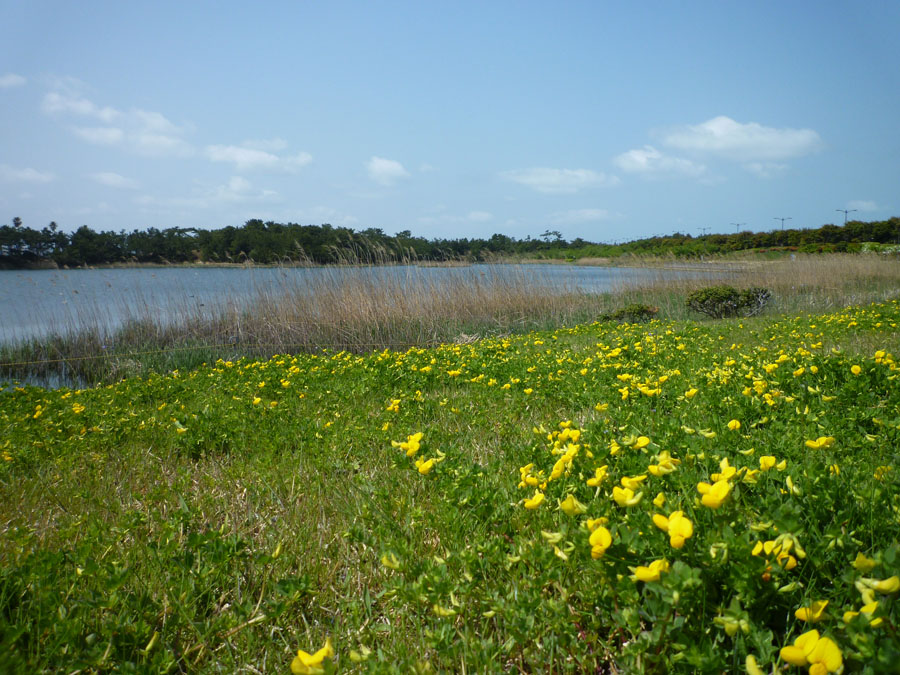 もっとも前日、校区のお祭りで楽しく飲んだせいか体調が優れない。加えて、朝からの暑さでとてもスピードを出せる状況にないのが現実。かろうじて、仲間に遅れず付いて行く状態。結構無理をした次第です (^^ゞ しかし、元々調整のために企画したツーリング、走るにつれて徐々に元気回復。更に、米の山と共に、わらび野が目的地とあって期待も高まります。何と言っても、前回訪問した折の好印象が強く残っています。 米の山は、アウターで上りきることだけを目標に、山ならではの朝の涼気を楽しみながら進みます。途中目に留まった白い花、名前がわかれば教えて下さい。『ユリ』ではありません。葉っぱを見て下さい。『ユリ』のそれとは全く違います。 我が愛車もそのパノラマの中に飛び込みたい衝動を抑えられないように見えます。(ま〜さか〜〜!) 太陽が照っているのに、むしろ涼感を覚えたのは標高のせいなのか、はたまた絶景の秘めたる魔力か?たっぷり3〜40分は景色に見とれていました。 全面のガラス窓越しの絶景。中空に浮かぶピアノ。そして、ゆったり広々とした店内。洗練された接客。汗臭い男どもには過ぎた、至福の時が流れる贅沢空間。夜景を眺めながらの食事は想像しただけでも癒されそうです。もう完全に行く気分、、、(^。^) 一緒しません? 本日のコースはこちらです。 今回は記録更新状況のお知らせの筈でしたが、予定変更!20日(水)のサイクリングの報告をします。記録更新については、四王寺山に挑戦し、25か26日に報告したいと思います。 さて20日、鹿児島ツアーで筋肉の疲労が溜まっている感じ。自転車仲間のyamamenさんに軽いポタリングにお付き合いをお願いします。兎に角無理せず平地を走るだけ、やや気乗りしない志賀島ツアーに出掛けます。少しでも変化をと、海の中道海浜公園へ急遽予定を変更。気乗りしないままに、、、。 西サイクリングセンター口で開園前の時間潰し。最新の自転車を背景に愛車の撮影をします。どう見ても子供向けの雰囲気。所在なげにyamamenさんもブラブラしています。 しか〜し、園内を進み展望台のシーサイドヒルシオヤに来る頃には、二人共に気持ちが高揚してきます。玄界灘の素晴らしい眺めが得られます。 左手には志賀島 シーサイドヒルシオヤ 右手は和白方面 公園は、和白方向に拡張され以前の倍近くになっています。玄界灘を眺めながらの海沿いの道!景色を楽しみ、潮風を受けながら爽やかな気分で自転車を走らせます。 走り詰めたところに陸橋があり、県道59号を渡り博多湾側へ行きます。この陸橋から撮ったのが、記事の冒頭の写真です。左手に能古島、右手に志賀島が見えます。飛行機まで飛んで気持ちを高めてくれます。(笑) 見晴らしのよさでは、陸橋を渡った環境共生の森も負けてはいません。玄界灘と博多湾の両方を写真に収められます。玄界灘側と博多湾側、甲乙つけ難い眺望です。 道路を下ったカモ池周辺の眺めもいけ(池)ます!今回写真が多いですが、せめて良さそうなのだけでもクリック拡大して楽しんで下さい。 レンタサイクルでなければ、このカモ池口からも帰れますが、今回は今来たこの道帰りゃんせ。花を楽しむために西口へ引き返しました。厳選3枚を披露して終わりです。 さすが国営です!海の中道海浜公園は都会のオアシス、大人のための公園でもあります。5月1日の日曜サイクリングは海中決定。ツール・ド・国東に出場の皆さん、これまでの疲れを、海中で癒しレースに向けて英気を養いましょう。 (本文中の写真や緑色の文字はクリックして下さい)
