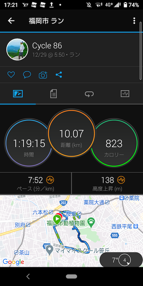 先週 11月 年間累計 ラ ン 39㎞ 129㎞ 1678㎞ 自転車 10㎞ 284㎞ 1004㎞ 先週も10km走たった1回だが実施、これが救いだね。 やはり月末は活動量が少なくなってしまう。『やはり』の言葉に諦めの気持ちが籠もってるな。年末と月末が重なる12月、一年最後の月くらいも少しまともな活動がしたいもんだ。 今月の目標は据え置き。新たな目標追加は平成3年1月に。 今月の目標 ①土・日は酒の日 ②瞑想・笑筋稼ぎ一日2回(瞑想目標夜30分) ③日記・ブログ2日以内更新 ④今日は何する?(一日の行動予定書き出し) ⑤反復横跳(俊敏性の回復・強化) ⑥就寝前机上5分間整頓 ⑦インターネット 8:00以降利用 ⑧就寝21:00前 [600(ペース)、535(ペース)等の表記は、 それぞれ1㎞6分00秒、5分35秒で走ること] 今週のムッサン 5日(土) 2日連続10km走の影響? まさかと思うが目覚め遅すぎ。自転車でも?と思ったが結局完全休足。雑用に専念した。(笑) 先ずは、イルミネーション点灯準備。 ご近所が点灯し約1週間、呼びかけ人たる者、点灯せず放置はできない。取り敢えず、乾電池式4セット設置。全体一斉点灯は来週中に何とか・・。 次は、年賀状の準備開始。これも来週中の投函準備完了が目標。これまでは大晦日・元日にエンヤコラショイって感じだったが。 4日(金) 今朝も走った上智10kmJOG、 当然一日絶好調。昨日下準備していた餃子完成。早速夕食に一皿焼いて食べた。中の餡がとにかくジューシー。余は満足じゃ〜!(笑) 3日(木) 舌の根が乾いた今日、流石に上智10kmJOG走りました。10km走るとやっぱ気分が良い。行動・心に余裕が生まれるね! 年末に帰省するであろう息子と、手作り餃子を食べながら酒でも飲もうと先週に続いて餃子作りをするゆとりもあった。明日からもこの調子! 2日(水) 『明日は出来れば10km』の舌の根も乾かぬ今日2日、 あっさり休足を決め込んだ。しか〜し、『今日は何する?』効果と言って良いだろう、休足したのに全く心にもやもやが残らない。 区役所訪ねて用務を済ませ、庭の除草に剪定も手際よく片付け、頭の痛い年末の仕事を生まれてこの方最も早くほぼ完了! 更に散髪も済ませスッキリ。因みに散髪は60以降はバリカンで自刈り。しかし、これやっぱり言い訳だね。明日はラン顔晴〜!(笑) 1日(火) 気が乗らない感じもあったが、辛うじて誘惑の女神の手を逃れた。 上智5kmJOG 明日は出来れば10km、、、出来るかな・・。 30日(月) やや疲労感あり完全休足を決め込んだ。専らブログ編集と町内会関係来客との協議で一日過ごした。 午後、高齢者宅を訪問。事前に色々考えるより行動を起こす。 『下手の考え休むに似たり』考えるより行動!だね。 29日(日) 再開Team Cycle 86 ツーリングの第2回。今回も遠く糸島から二人が参加してくれた。雷山登山の影響でやや脚に不安があったが、心優しきメンバーに助けられ鏡山ノンストップアウター縛り完登達成! 走行距離:107km 詳細はこちらの記事で |