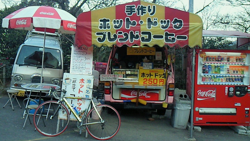 年末自重し休止したジョギング。元旦から早速再開!!と高らかに快進撃報告予定が、文字通り予定に終わるとは、、。開始4日目膝に違和感を覚えつつも完走。しかし翌日から階段の上り下りにも難渋。一日6㎞と抑えたつもりが、、。僅か20㎞で再休止(涙)。あまり気負わず取り組みます。 こんな体たらく。せめて正月写真で彩りを。 初日の出の写真と、二枚目が大濠公園のスナップ。左手に突き立つのが福岡タワー、中央やや左一際高いビルがシーホークホテル福岡、その右、ほぼ中央部にヤフードームが僅かに黒く弧を描いて覗いています。 (写真はクリックで拡大できます) 新年早々痛めた膝の影響で4日間完全休養。やっと9日油山上り初め。これまで紹介しませんでしたが、頂上展望台にはホットドッグの屋台店があります。ご主人とはすっかり顔馴染み。客と主の関係を超えてのお付き合い。今回はその店と展望台でのスナップをお届けします。