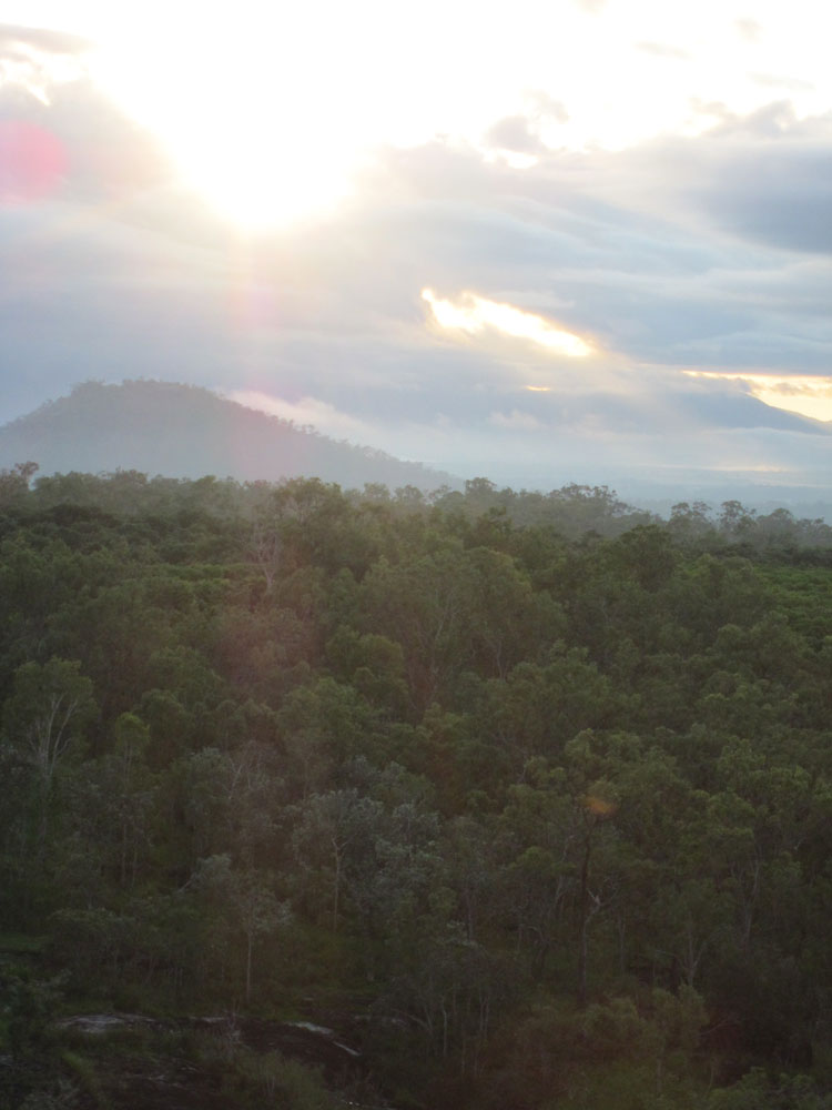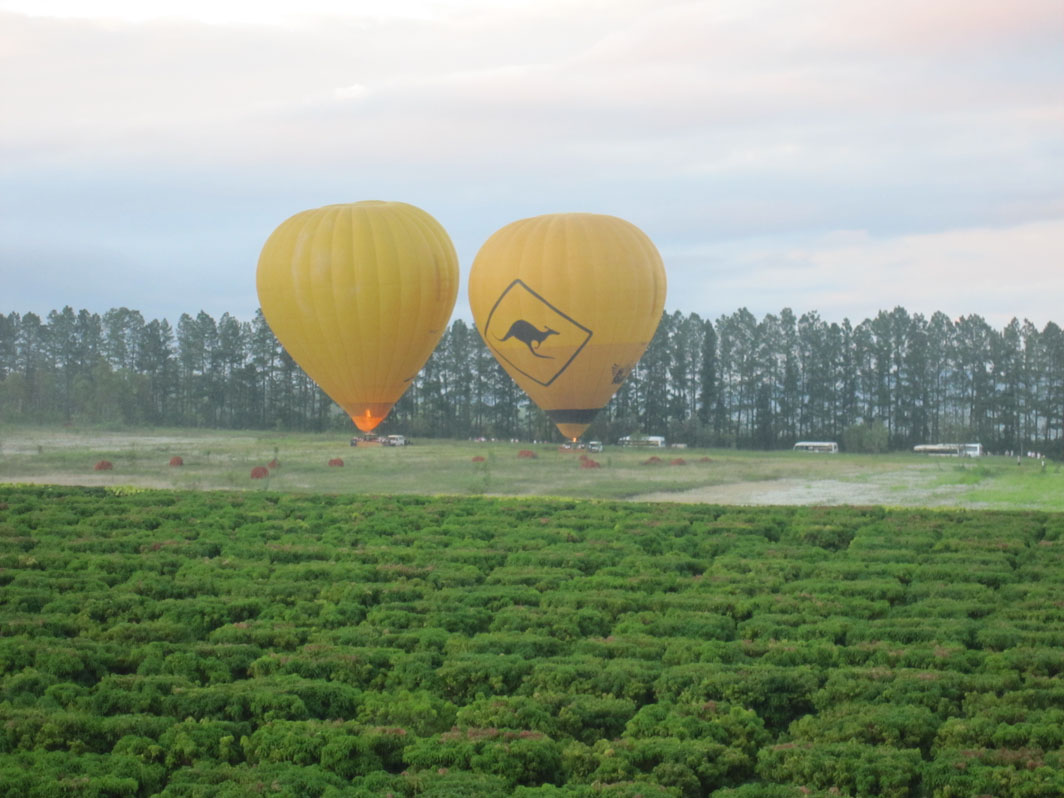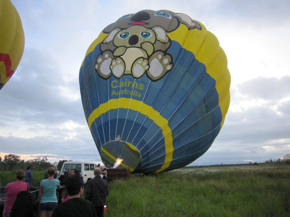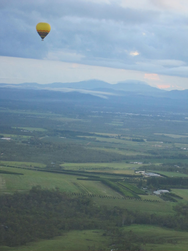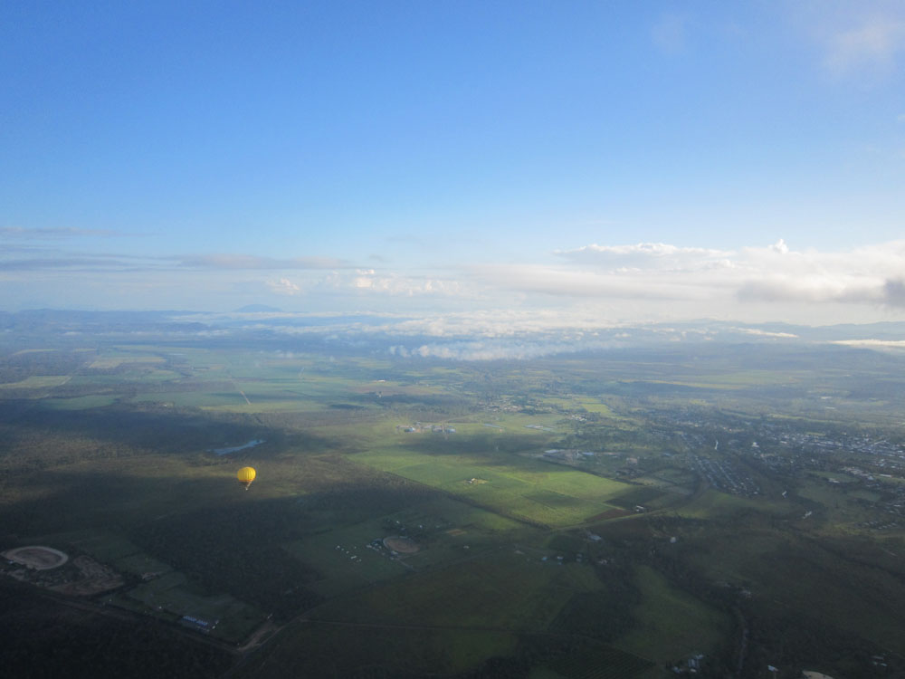 先発の熱気球 岩だらけの原野 熱帯雨林上空小型のカンガルー目撃 先発熱気球が低空に 雲に映った熱気球〜ゴーストバルーン〜