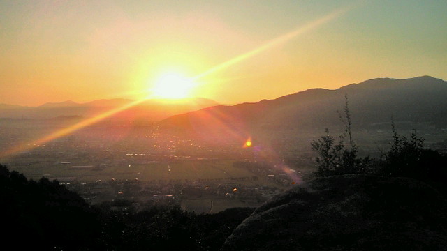 ただし今回は、まず新聞記事の紹介から。 大阪市の交差点で自営業の女性(69)が大けがをした自転車同士の事故をめぐり、大阪地裁が7月、パートの女性(60)に約1300万円の損害賠償を命じる判決を言い渡していたことが1日、わかった。(9月3日 産經新聞) 平成20年、自転車が第1当事者となった事故は全国で約2万5千件。だそうです。自転車ライダーの皆さん、自転車ライフを長く楽しむためにも呉々も安全運転を心がけましょう。また万一に備えて、自転車保険に未加入の人は加入を検討してはいかがでしょうか。私は、日本サイクリング協会の会員登録をして自転車総合保険と交通事故傷害保険に加入しています。 車も自転車も同じ。常に危険を予測しながら、思いやりの気持ちをもって運転することが重要だと思います。今回訴えたいことも、まさにこの思い遣り、互譲の精神を持つことの大切さです。 自転車は燃料を利用せず、従って排気ガスを出さない環境に優しい乗り物です。健康増進になり、心身のリフレッシュを計ることもできます。これからの時代の要請に適う乗り物であり、利用者の増加が望まれる乗り物である。 これらは、サイクリストであることにいささかの誇りを持つ所以でもあるのだが、前回も書いた通り、現実は肩身の狭いものである。 自転車の位置付けが曖昧。時に歩行者扱い。時に車扱い。ために車道を走っていると、心ないドライバーの警笛や罵声を浴びることになる。某県のパトカーからの注意に至っては、何をか言わんや。並進する自転車の速度を知ってか知らずでか、いきなり左折し歩道を横断するドライバー。あわや衝突、と覚悟したのは一度や二度ではない。 我に正義あり、自転車に正義ありと言い募るつもりはない。ただ、お互いもっとゆとりと思い遣りの心を持ちたいものである。 くどくど書かない。2つの事例を考える資料として終わりにする。 『久比岐自転車道』 新潟県直江津・糸魚川間にあるこの道路。北海道を除いて、最高の自転車道である。特徴は、車道から自転車を排除するのでなく、自転車歩行車道から自動車を閉め出す姿勢が感じられる点である。 自動車は動力で動く。自転車・歩行者は人力で動く。この事実に立脚した道路である。 国道8号線は、山々がつくる起伏を迂回して海沿いを走る。 一方自転車歩行車道は、一段低い車道と日本海の眺めを楽しみながら続く。勾配はなだらかで、山々が迫るところは照明完備の数百メートル規模の専用トンネルがあり、直線的で車道より距離も短くストレスを感じることなく走られる。進んで車道を避けて走りたいと思わせる道路である。 『福岡県を走るのは怖い』 これは、出会った長期・長距離自転車旅行者の多くの感想である。 県の最大手バス会社の平均的運転マナーの酷さは目に余る。 ・自転車に対する幅寄せ。 ・後方からのエアブレーキ?を吹かしての威圧。 ・バス停手前での強引な追い抜き・停車。 『道路はバス専用』と勘違いしているようである。弱者への思いやりのかけらもない。 通勤時間帯のバス専用レーン。公共の足としての役割もあり、致し方ないとも思う。しかし、それだけの便宜を受けるのなら、感謝の心を運転に表してほしいものである。専用レーンに入る一般車を、まるで邪魔者を追い払うかのように指導する職員。しかし、その目の前を信号無視で通過するバスを指導するのを見た例しがない。 今回添付の写真は、飯盛山から眺めた日の出時の写真です。