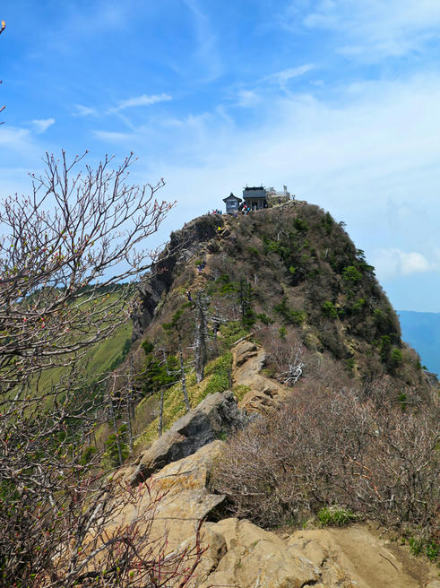 今日も羽田野君の運転で石鎚山を目指す。 ロープウェイで山麓下谷駅から山頂成就駅へ。駅名を聞い て山頂到達が保証された気分だね。更にリフトに乗り継ぐと 展望台。石鎚山が少し近付いた感じだ、、。 今日も羽田野君とはここでお別れだ。本当に何から何まで ありがとう! しばらく歩くと、石鎚神社 中宮 成就社に到着。石鎚山 がご神体であるようだ。 今日はバッテリーの残量が少なく、超節約モードの写真撮 影。成就社の写真も上の一枚のみ・・。 成就社を過ぎるといよいよ登山開始! 少し進んだところ で修験者に出会った。早朝3時登り始めて、下山途中とのこ と! しかも、一本歯の下駄で!! 我々の登山の無事を祈 って法螺貝一吹き。あたりに響き渡った。あなかしこ! 重い荷物のせいか、足の裏が熱く痛い・・。ランを休む代 わりに、負荷を掛けようと荷物を増やしたのだ。汗をダラダ ラ流しながらの苦しい歩きだった。 しか〜し、終わりのない道はない。いよいよ石鎚山が眼前 に聳え立つところまで辿り着いた。 残念ながらここから山頂の往復区間の歩行データが残って いない。間違ってGPSを一時停止したようだ・・。 登った証拠は山頂での写真。 石鎚山頂と周辺の眺め、しか〜し、ここが終わりではない のだ。糸のように細い尾根が次の山頂へと続いている! 鎖にしがみついて岩場を降りていた女性が足が届かないと 泣き出しそうな声を上げている・・。私も恐る恐る歩いたっ て感じだな。何しろ高所が苦手で・・。 アケボノツツジかな? 美しい花には癒やされたが、その 先は断崖だからね・・。・・。(汗) それにしても木内君は健脚だ! 登山では常に一人遙か先 を歩いていた。脚力・体力をつけるにはランだけでなく山歩 きにも積極的に挑みたいと思わされた。 やっとの思いで天狗岳。緊張で笑顔が強張ってる? 天狗岳側から望んだ石鎚山。険しい道にも幾分慣れたが、 引き返すのも大変でございましたよ。 アケボノツツジもそうだが、山頂近くには桜らしき花も咲 いていた。 標高が高く花の時期も遅いのだろう。葉っぱも同じ。緑は 麓から山頂へと登ってくるようだ。 花の背景に石鎚山! 絵になる景色だね〜〜! そんな石鎚山も徐々に遠く小さくなっていく・・。 『さらば! 石鎚山!』 と、少し感傷的な気分も出てきた頃、『来た〜〜〜!』 雪! 雪! 残雪だ! 表面の汚れを拭って口に入れた。 じゃりじゃりした舌触りで粗めのかき氷って感じ。 仕上げは氷で顔パック。ひんやり生き返ったね! やがて石鎚登山のゴール、石鎚スカイライン終点の土小屋 が見えてきた。次の写真の尖った山の下に見える白、土小屋 の駐車場である。 羽田野君が車を回送して待機してくれているのだ。 再び6人全員集合! 羽田野号で帰路についた。 車窓からは汗を残し足跡を残してきた石鎚山が見える。 場所により様々な山容を見せてくれた石鎚山だった。 松山空港への途中、道後温泉に立ち寄り汗と一緒に疲れも 流したのは言うまでもない。何度目の温泉・・?! かくして楽しい3日間の旅は終わった。しかし、楽しい思 い出は消えないね! 3日間の総てに感謝! そして、石鎚の雪より嬉しい奇跡が福岡で待っていた。 電話もメールも連絡一つしてなかったのだが、空港で女房 と娘が出迎えてくれた! 改めて総てに感謝!! ![]()