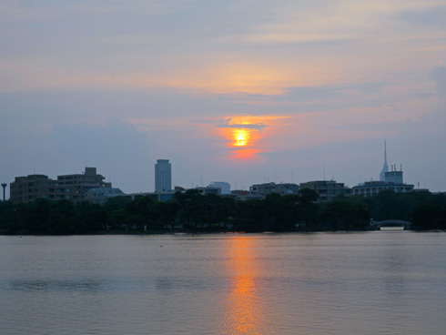 先週 8月 年間累計 ラ ン 79㎞ 133㎞ 2184㎞ 自転車 30㎞ 45㎞ 1072㎞ いつもは静かな護国神社だが 約二ヶ月半、有酸素トレーニングを続けたが、成果は上が るだろうか!? 暑さに負けて一番肝心な長距離走ができな かったのは遺憾だが、今後の練習の中で取り戻そう! 先週はフォームチェックとスピードアップを狙って坂練等 新しい取り組みを始めた。飽くまでも感覚的にだが、フォー ムが安定しスピードも速くなってきた手応えがある。 今週はより一層の手応えを感じたいものだが、急いては事 をし損じる。今月中にハーフ走最低2回を目標としよう! [600(ペース)、535(ペース)等の表記は、それぞれ 1㎞を6分00秒、5分35秒(のペース)で走ることを言います] 今週のムッサン 19日 坂練の日。西公園の坂を駆け上がる。と言えば聞こ えは良いが、坂に遊ばれてるだけかも。脚力不足を 痛感するばかり。歩きの距離が減ったのが救いか? 西公園10㎞JOG 18日 まだこの時期この暑さ、露じゃないでしょ〜〜? 夜雨がふったんだ、、、多分。朝日に輝く宝石! 今日はフォームチェックの日。もっとも正しいフォ ームがわからない自分にフォームチェックができる かって話だが・・。(汗) 慣れない動作に頭と体が混線、歩き主体?なのに汗 ドバドバ! 200m直線コースを6往復でヘ〜ロ ヘロのヘロ・・。最後はいくらか混線状態を脱した ような??? 焦らず焦らず、、、JOG 6㎞ 走り終わった後の空。今日も良い天気暑い一日にな りそうだ。 夕方大濠出動。体ほぐしと全力走。しか〜し、今日 のは全力走とは言えないぜ・・。 JOG 6㎞ 4㎞平均 542 今日は不調だ・・。 17日 朝上智10㎞。有酸素トレーニングのつもりだが、頑 張ってしまったか?しかし、膝が上がらない・・。 筋力に問題あり。体感的には後半ペースダウンだが 実際にはペースアップ!もっと挑戦的になるべき? 上智10㎞JOG:610(614→605) 夕刻スコール! 通り過ぎたところで出動。 黒い雲が残ってるが大丈夫だろう! と走り始めて 間もなく土砂降りずぶ濡れ・・。しかも西日はしぶ とい。最悪の状況。蒸し暑さに気持ちが萎えそう。 何とか4㎞の全力走達成。JOG 6㎞ 4㎞平均 527 合格〜〜! としておこう。 人をずぶ濡れにし満足顔の西の空の恨めしき。 16日 今日も朝は雨・・。坂練出動したのは10時近くで 一転かんかん照りの中のランになった。まっ、何事 も練習、練習。って思っておこう! 途中GPS操作ミスしたが、坂練自体は様になってき た気がする! 体の各部の動きを意識できるように なったかも? 西公園8㎞JOG(操作ミス分補正) 坂練の影響ではあるまいが膝に違和感強し。夕方練 即中止。まだまだ妥協力健在なり・・。(汗) 15日 朝かなり雨が強かった。で、二度寝。これで却って 疲れた? 盛り上がらない気持ちで大濠へ行ったが 気持ちがそのまま走りに持ち込まれた。 体が重く鎧でも着て走っている感じ。練習にならな いぜ・・。大濠10㎞JOG:635(643→628) 朝の不甲斐ない走りには原辰徳? 夕方は朝のリベ ンジ。何としても4㎞の全力走!! でっ、何とか顔晴り抜いた。途中4㎞の平均 531 JOG 6㎞ 14日 朝、西公園10㎞JOG。坂練4回目。キック力の強化 とストライドを伸ばすことが狙い。上りと下りの間 をJOGで繋ぐのだが、上りで疲れ果てウォーキング で繋いだ。最後の2㎞全力走は 516でまずまず。 夕刻大濠で2㎞全力走プラス疲労抜きJOG。夕方の 走りは平凡・・。JOG 4㎞ 13日 朝の疲労感強し・・。朝の出動は自粛、普段行き届 かない家事に精を出すことにした。2時間ほどの作 業で伸び放題だった庭木がすっきり! 夕方暗くなり始めた頃、大濠出動! ゆっくりJOG の予定が、涼しささえ感じる中で体が軽く気持ち良 いペースで走れた。 今週は何となく良い走りができそうな予感!? たった6㎞走っての予感、当てにならない?(汗) JOG 6㎞:550