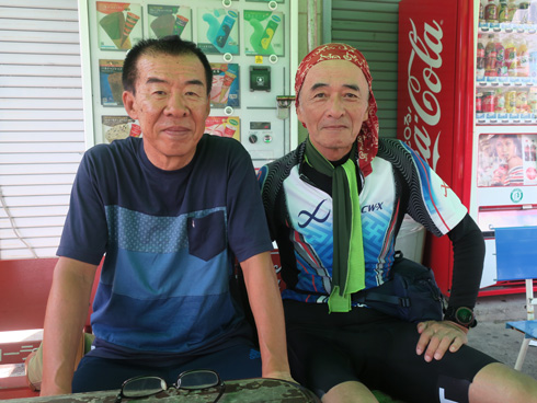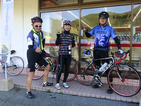 今月初の自転車ツーリング出動! 34℃? 35℃? 猛暑予報の中集まったのは夜更かし による体調不良を押して参加の urumanさん、華麗なヒルク ライマーくぼちゃん、と私 Cycle 86。 そして、も一人剛脚ツーキニストPiccolinoさん。 八木山峠筑豊側展望台で一息。愛を誓う二人! やっぱ男 女カップルでないと、、ちょっとかなりきもい・・。(笑) 峠からの下りを利して一気に飯塚へ駆け下り更に走ること 約一時間半、香春岳麓で写真タイム。 山頂には我々を歓迎するアパッチの狼煙!! ここを通りかかる度、西部劇の場面が脳裏に浮かぶ。 時は10時、既に30℃超え!? ここで炸裂、秘策アイスヘル! 頭がキンキンに冷えて最高! 生気が蘇る。 アイスヘルにパワーをもらい、11時半アタック開始! 平尾台の上り坂、、、手強い!! なおか〜つ、剛脚の二人が前に出ない・・。俺の根性拝見 と来たか? 剛脚鬼のお陰でノンストップ登坂!(笑) ど根性の報酬は来し方の癒やしの眺望。 登坂途中思いがけない励ましの声! 苦しい勾配の要所要 所で車を止めての激励! Piccolinoさんのツイッター友 kanaGさんだ。 若き日陸上で活躍されたらしく、スラリとした体型は正真 正銘のアスリート! 膝を痛め今は自転車一筋!? 苦しい坂で力を頂いた上に、冷たいアイスをご馳走になっ た。kanaGさん『ありがとうございました!』 アイスで生き返った後は、平尾台の眺めで更に力がみなぎ るのを感じる! 空を舞うパラグライダーに心も全開! しか〜し、最高の癒やしが待ち受けるのはこの先! 千仏鍾乳洞入り口である。 氷水のような地下水の中を奥へ、奥へ。 照明もなくなった中、懐中電灯を頼りに地獄へ突入! カメラ・懐中電灯をビニール袋に包み万全の防水対策、頭 上から降り注ぐ水をくぐり抜け先へ先へ進んだ。 だがまた、しか〜し、奥の状況は想像を超えていた。天井 低く水位は深い・・。頭以外は水の中。這うように200m 程も進んだろうか? 遂には岩にぶつかりサングラス破損。 最深部到達は諦めた・・。一段の防水対策が必須である。 寒さ対策も考慮の要あり? 最深部は次回のお楽しみ! 一番残念なのは写真が撮れなかったこと。これも次回の課 題としよう。 斯くして、ヒヤヒヤワクワクの子ども洞窟探検終了! 洞を出るとまたまた夏の現実に引き戻されるが、心・配・ ご無用っ⤴ 我々の士気はすこぶる高い! 今の気持ちを体で表現すると、、、 この後『蔵』の焼きカレーと肉うどんで空腹を満たし、JR 小倉から輪行。冷え冷えのビールで喉を潤した。 しか〜し、唯一人糸島までの全行程200㎞超を自走した 御仁がいる。剛脚 Piccolino氏!! 恐るべしイトシマン! 今回もドラマチックな102㎞自転車旅だった。 皆さんありがとう! また楽しく走りましょうね!