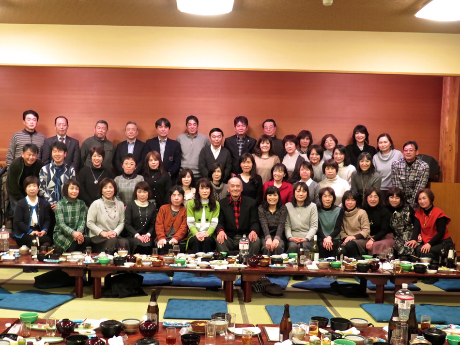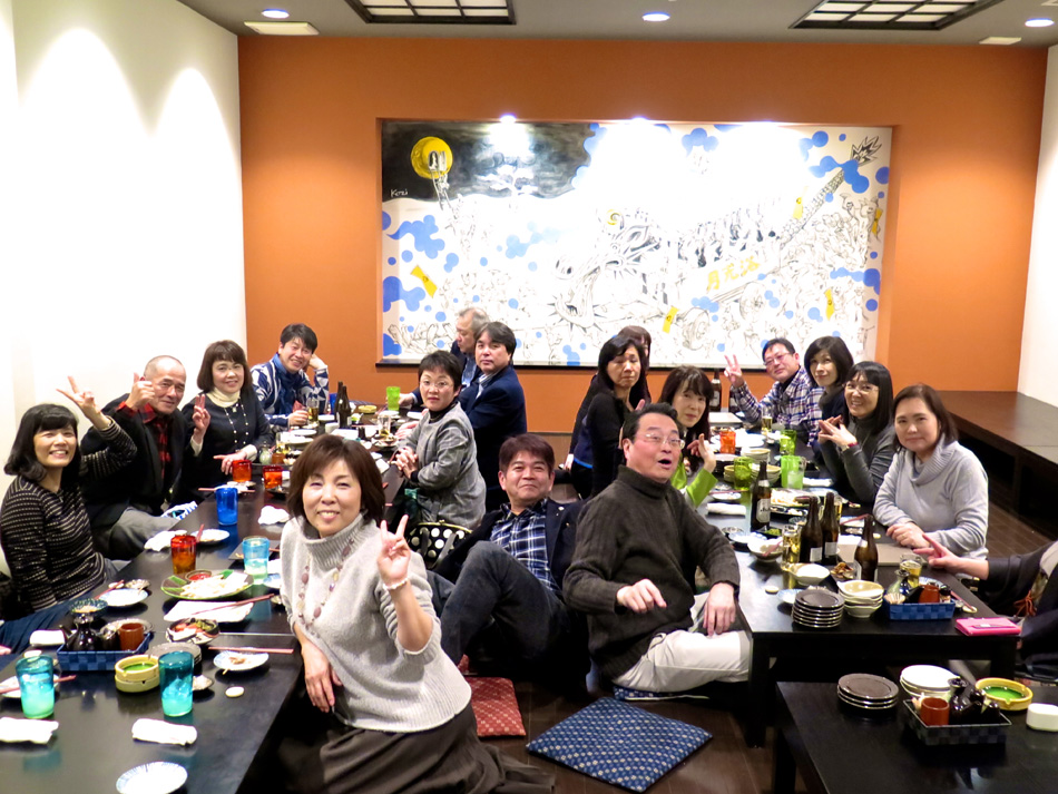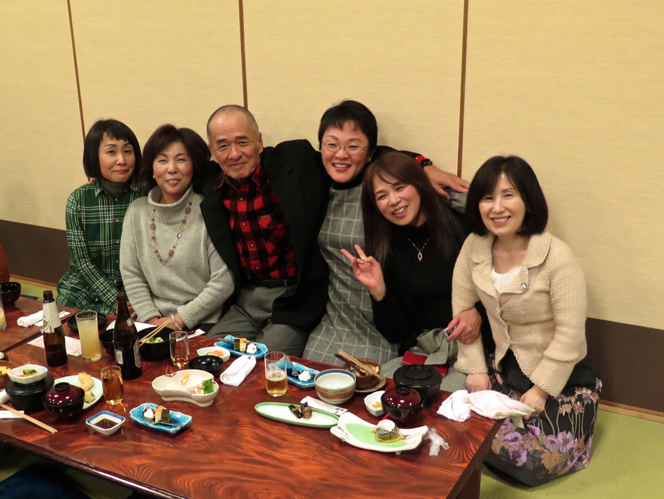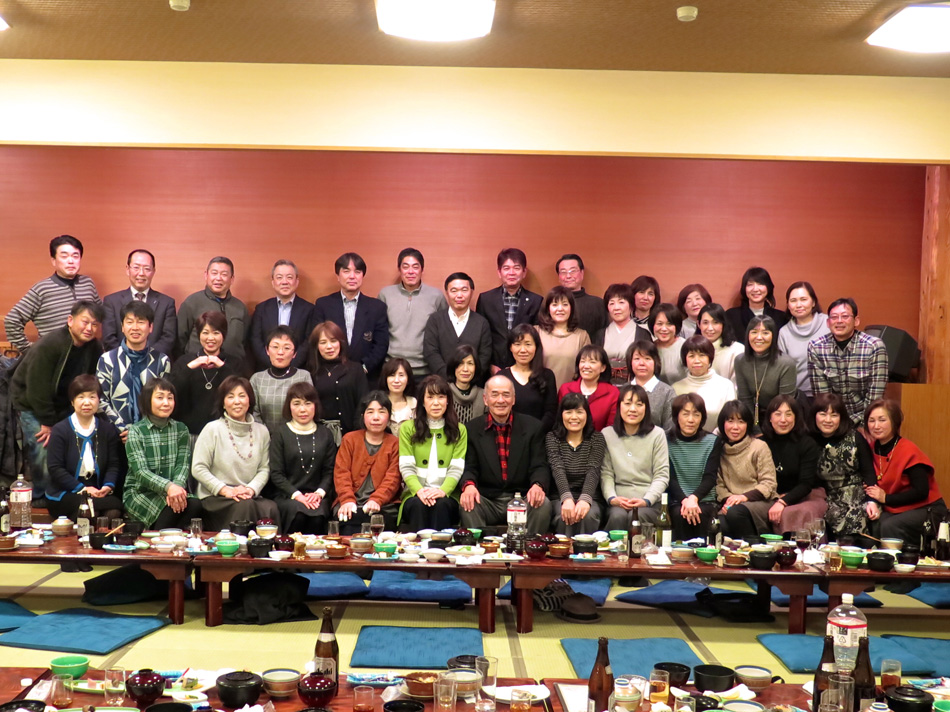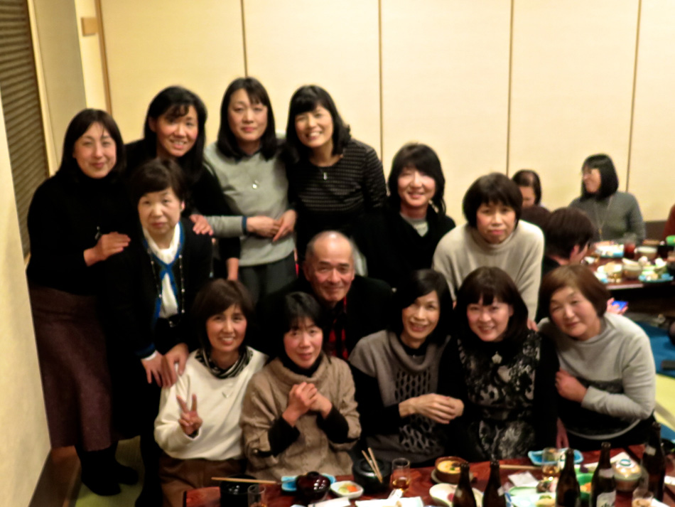 味しい料理とワインで楽しい時を過ごした。 しか〜し、今日はそんな料理教室中からソワソワ・・。 で、教室の様子も後日復習がてら報告することにする。 なんてったって今日は夕方からがメインディッシュ!? 料理教室が終わって、スポーツショップや本屋で時間を潰 した後、大牟田へ向かった。 着いた先は竜宮城! 夢のような時が待ち構えていた! じゃ〜〜〜ん! 初めての赴任校大牟田商業高校で初めて担任を務めた学年 の同窓会の会場である。もちろん乙姫様も多数! 乙姫様と一緒だと鼻の下が随分長くなるようだ。(笑) それに引き替え、、、後は、言わぬが花。 自分の前頭部の輝きを強調し、同じく自分の髪の薄さを誇 張した以外なにも修正は加えてない。(爆笑) しかし、確かに鼻の下が短くなっている気もする・・? だが、しか〜し、環境が変わると、、、 我が鼻の下は、男性と一緒か女性と一緒かを表示するリト マス試験紙であるらしい。 関東を始め、遠路を厭わず駆けつけた教え子もいる中、二 次会も賑わいました。 最終電車ぎりぎりまで一緒させてもらいましたが、本当に 夢のような時を過ごし気持ちも若返りました。 ある乙姫様からは素敵なチョコを頂きました。最近はもら うこともなくなったバレンタインチョコ!! 若かりし頃にもらっていたら、、、 皆さん、招いていただいて本当にありがとう! 3年後かな? 4年後かな? 皆さんの『還暦祝い』の同 窓会。必ず声を掛けて下さいね! それまで長生きできるよ うに、マラソンと自転車で体を鍛えます。(笑) では、その日まで!