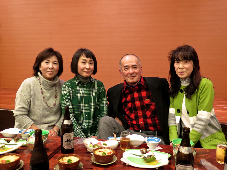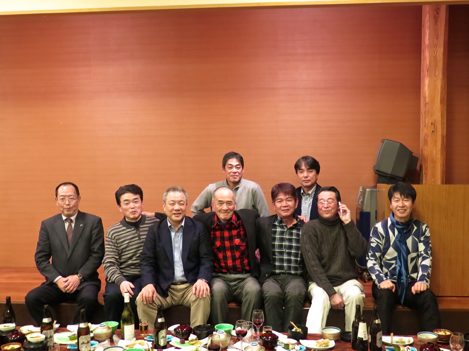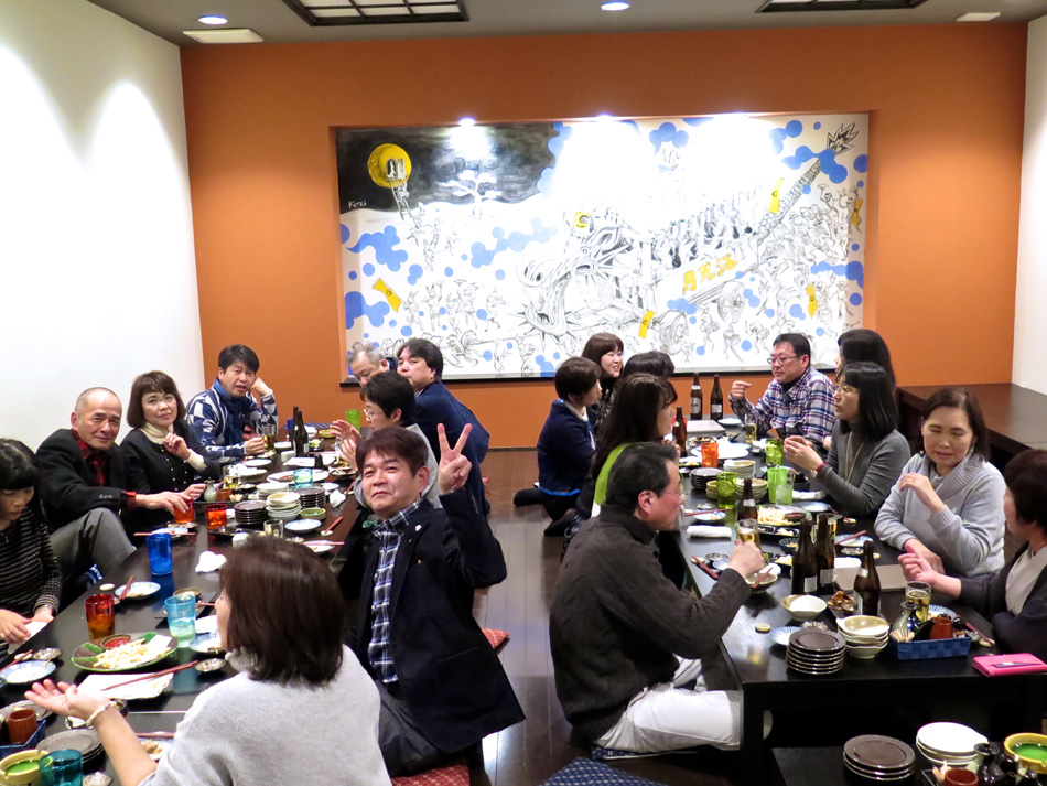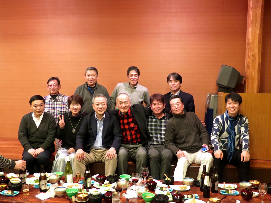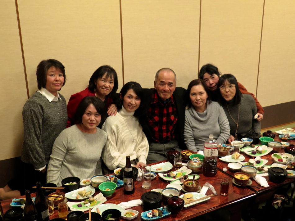 味しい料理とワインで楽しい時を過ごした。 しか〜し、今日はそんな料理教室中からソワソワ・・。 で、教室の様子も後日復習がてら報告することにする。 なんてったって今日は夕方からがメインディッシュ!? 料理教室が終わって、スポーツショップや本屋で時間を潰 した後、大牟田へ向かった。 着いた先は竜宮城! 夢のような時が待ち構えていた! じゃ〜〜〜ん! 初めての赴任校大牟田商業高校で初めて担任を務めた学年 の同窓会の会場である。もちろん乙姫様も多数! 乙姫様と一緒だと鼻の下が随分長くなるようだ。(笑) それに引き替え、、、後は、言わぬが花。 自分の前頭部の輝きを強調し、同じく自分の髪の薄さを誇 張した以外なにも修正は加えてない。(爆笑) しかし、確かに鼻の下が短くなっている気もする・・? だが、しか〜し、環境が変わると、、、 我が鼻の下は、男性と一緒か女性と一緒かを表示するリト マス試験紙であるらしい。 関東を始め、遠路を厭わず駆けつけた教え子もいる中、二 次会も賑わいました。 最終電車ぎりぎりまで一緒させてもらいましたが、本当に 夢のような時を過ごし気持ちも若返りました。 ある乙姫様からは素敵なチョコを頂きました。最近はもら うこともなくなったバレンタインチョコ!! 若かりし頃にもらっていたら、、、 皆さん、招いていただいて本当にありがとう! 3年後かな? 4年後かな? 皆さんの『還暦祝い』の同 窓会。必ず声を掛けて下さいね! それまで長生きできるよ うに、マラソンと自転車で体を鍛えます。(笑) では、その日まで!
