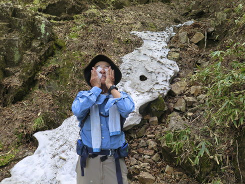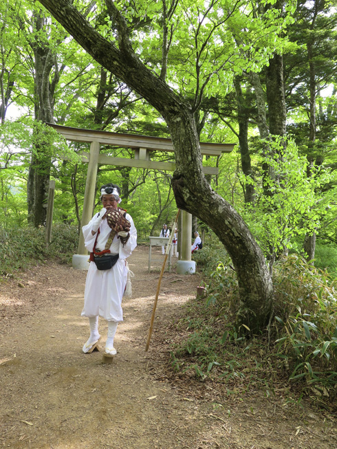 今日も羽田野君の運転で石鎚山を目指す。 ロープウェイで山麓下谷駅から山頂成就駅へ。駅名を聞い て山頂到達が保証された気分だね。更にリフトに乗り継ぐと 展望台。石鎚山が少し近付いた感じだ、、。 今日も羽田野君とはここでお別れだ。本当に何から何まで ありがとう! しばらく歩くと、石鎚神社 中宮 成就社に到着。石鎚山 がご神体であるようだ。 今日はバッテリーの残量が少なく、超節約モードの写真撮 影。成就社の写真も上の一枚のみ・・。 成就社を過ぎるといよいよ登山開始! 少し進んだところ で修験者に出会った。早朝3時登り始めて、下山途中とのこ と! しかも、一本歯の下駄で!! 我々の登山の無事を祈 って法螺貝一吹き。あたりに響き渡った。あなかしこ! 重い荷物のせいか、足の裏が熱く痛い・・。ランを休む代 わりに、負荷を掛けようと荷物を増やしたのだ。汗をダラダ ラ流しながらの苦しい歩きだった。 しか〜し、終わりのない道はない。いよいよ石鎚山が眼前 に聳え立つところまで辿り着いた。 残念ながらここから山頂の往復区間の歩行データが残って いない。間違ってGPSを一時停止したようだ・・。 登った証拠は山頂での写真。 石鎚山頂と周辺の眺め、しか〜し、ここが終わりではない のだ。糸のように細い尾根が次の山頂へと続いている! 鎖にしがみついて岩場を降りていた女性が足が届かないと 泣き出しそうな声を上げている・・。私も恐る恐る歩いたっ て感じだな。何しろ高所が苦手で・・。 アケボノツツジかな? 美しい花には癒やされたが、その 先は断崖だからね・・。・・。(汗) それにしても木内君は健脚だ! 登山では常に一人遙か先 を歩いていた。脚力・体力をつけるにはランだけでなく山歩 きにも積極的に挑みたいと思わされた。 やっとの思いで天狗岳。緊張で笑顔が強張ってる? 天狗岳側から望んだ石鎚山。険しい道にも幾分慣れたが、 引き返すのも大変でございましたよ。 アケボノツツジもそうだが、山頂近くには桜らしき花も咲 いていた。 標高が高く花の時期も遅いのだろう。葉っぱも同じ。緑は 麓から山頂へと登ってくるようだ。 花の背景に石鎚山! 絵になる景色だね〜〜! そんな石鎚山も徐々に遠く小さくなっていく・・。 『さらば! 石鎚山!』 と、少し感傷的な気分も出てきた頃、『来た〜〜〜!』 雪! 雪! 残雪だ! 表面の汚れを拭って口に入れた。 じゃりじゃりした舌触りで粗めのかき氷って感じ。 仕上げは氷で顔パック。ひんやり生き返ったね! やがて石鎚登山のゴール、石鎚スカイライン終点の土小屋 が見えてきた。次の写真の尖った山の下に見える白、土小屋 の駐車場である。 羽田野君が車を回送して待機してくれているのだ。 再び6人全員集合! 羽田野号で帰路についた。 車窓からは汗を残し足跡を残してきた石鎚山が見える。 場所により様々な山容を見せてくれた石鎚山だった。 松山空港への途中、道後温泉に立ち寄り汗と一緒に疲れも 流したのは言うまでもない。何度目の温泉・・?! かくして楽しい3日間の旅は終わった。しかし、楽しい思 い出は消えないね! 3日間の総てに感謝! そして、石鎚の雪より嬉しい奇跡が福岡で待っていた。 電話もメールも連絡一つしてなかったのだが、空港で女房 と娘が出迎えてくれた! 改めて総てに感謝!! |