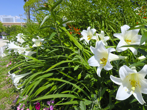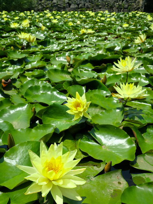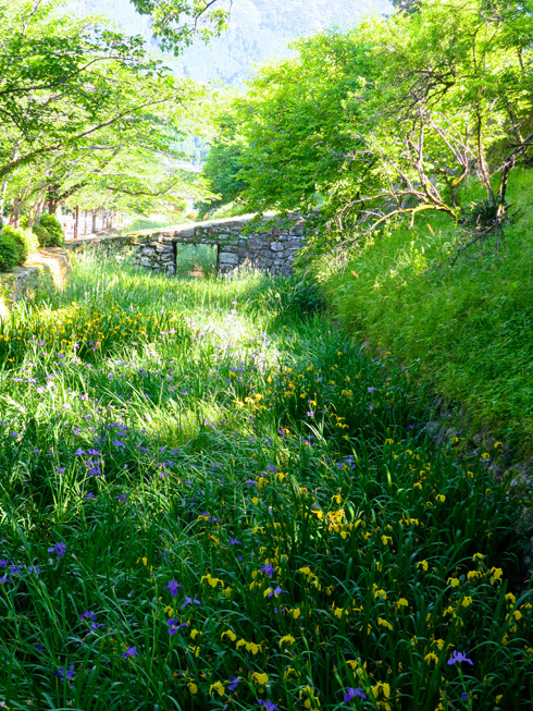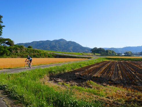 ていた鍋ヶ滝ツアーは秋月ツーリングに変更した。 200㎞超の予定が100㎞未満と超短縮だが、それでも 恐る恐るの走行だった。もう足を痛めるのはご免だ・・。不 安はあったが感動もあった。 随分久し振りの秋月行きで、見慣れたはずの景色が新鮮に 感じられる。秋かと見紛う麦秋。 グレッグさんの気遣いの走りのお陰で、景色・空気を楽し みながらのんびり走った。雲一つない青空だが、朝方しばら くは空気がひんやり、気持ち良かった。 気ままに脇道・田舎道に入って行って、景色がますます新 鮮に感じられた。 しか〜し、肝心の秋月はゴーストタウンの雰囲気・・。 住み手のない家が増えた感じだし、地元の人もあまり見受 けなかった。日曜早めの時間だったからかな? お堀に咲いた花が唯一の癒やしの景色でしたよ!? 少子化とか過疎化とかの言葉が浮かんで、妙に寂しい気持 ちになってしまったね・・。その寂しさを紛らしてくれたの は我等が食欲!? みなみの里の豚のしっぽに豚足。どちらも美味かった。 かしわ飯のおにぎりも超うま! その後も、二人揃ってカロリー過多・体重増を気にしなが らも、和菓子屋でごちそうさま! 更にサンプラスのパンで ごちそうさま! 何しに自転車を走らせたのやら! 名誉?のために言っときますが、小さな自然の美もしっか り心に刻んで来ましたよ!! グレッグさん、来月は鍋ヶ滝顔晴ります! よろしく!