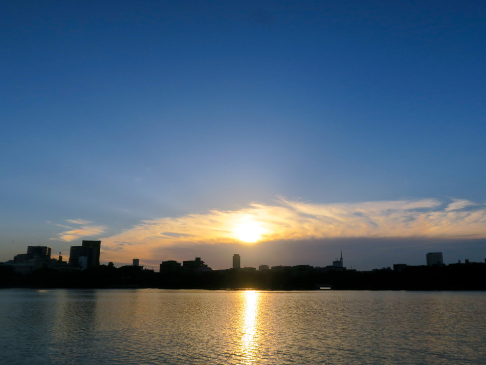先週 9月 年間累計 ラ ン 71㎞ 97㎞ 2479㎞ 自転車 21㎞ 30㎞ 1281㎞ 振り返れば朝! 先週は膝の状態が安定しなかった。レース迄まだ2ヶ月、 今週は脚への負担を加減して、先ずは故障のない状態にする こと最優先! [600(ペース)、535(ペース)等の表記は、それぞれ 1㎞を6分00秒、5分35秒(のペース)で走ることを言います] 今週のムッサン 16日(土) 今朝は苦手な200m×6のフォームチェック走。上体のリラ ックスや足の引きつけ・振り出し等を意識して走るのだが、 意識すればするほど力んでリラックスどころでない・・。 スピードは遅いのにやけに疲れてしまう感じ。 城内6㎞JOG さて、明日は台風18号の影響をまともに受けそう・・。今 日の夕方もどうなるやら? で、続けて4㎞の全力90%走を実施することに。2周目に 入る頃だったかあるジョガーのTシャツに目が留まった。 初マラソン下関海響2011のTシャツ! 我慢ならず声を 掛けた。47歳で今年も下関海響に出るそうだ。なおか〜つ、 下関海響2011が初マラソンだった由! 何たる偶然! 『ようっ、戦友!』って感じ。(笑) しばらく一緒に走り、互いの健闘を祈りレースでの再開を 期した。 大濠4㎞JOG:530 15日(金) 昨日午後の休足は正解だったようだ。まだ暗い中、気持ち 良くJOGに出動。腕振り・上体のリラックスを心掛けながら 走った。今日は幾分フォーム安定? まだ走れる感じもあったが、無理せず10㎞で終了。 大濠10㎞JOG:603(606→559) しか〜し、福岡マラソンが近付いたからか、ジョガーの姿 が一段と増えた感じ。何が楽しいのか憑かれたように黙々と 走る姿はちょっと異様? 自分もその1人なんだが。(笑) 夕方少し迷ったが休足とした。今は何㎞かの練習より故障 しないことが一番! 台風の接近するなか明日は?? 14日(木) 昨夜より大腿部に強い張りあり・・。朝10㎞走に出動した が、両足が鉄板で囲まれたような感じ。(大袈裟) 体・脚共に 重く4㎞でいよいよ強張りが酷くなった。 このところ練習し過ぎ?? 膝の痛みが数日続いているこ ともあり、8㎞地点で打ち切り。 大濠8㎞JOG:606(602→611) 夕方、恵みの雨を幸い二部練中止し休足。 13日(水) 起床は遅かったが今朝は主練。5㎞の全力90%走。しか〜 し、90%ったって目に見えないからね。 多分今日はやや力が入って全力95%走かな?(苦笑) フォームは依然安定しないがまずまず。膝も小康状態? 大濠6㎞JOG:539 (5㎞平均:528) 夕方は体をほぐすJOGの筈だが、ちょっと顔晴り過ぎた? 膝は少し違和感がある程度。腰の方が違和感強い。ま、心配 するほどではない。 大濠10㎞JOG:548(546→551) 刻々と変わる夕空の色彩は息を呑む美しさだった。 12日(火) ちょっと視点を変える。発想の転換?って大事だ。7時半 からのあいさつ活動との関係で、起床が遅くなると早朝ラン を中止することがよくあった。 標準的練習パターンは主練が早朝ラン、そして夕方体ほぐ しのJOG。しかし、主練はあいさつ活動が控えているため延 期・中止が多くなる。という次第・・。 何という石頭・・! 朝起床が遅れた時は、朝ランで体をほぐし。夕方主練をし たらって話だよね。この程度のことで発想の転換などと騒ぐ のは大袈裟だっちゅうの!(汗) JOG6㎞:626 依然、左膝周辺に強張り感あり・・。 で、夕方大濠へ出動したが、朝の曇り空は青空になり暑さ に苦しむ。我が敵は膝よりも気持ちだな。フルマラソンは完 走さえ危うい感じ・・。やせ蛙負けるな、、、。 大濠10㎞JOG:558(603→551) 11日(月) 膝の様子見で早朝ラン回避。あいさつ活動後全力の90% のイメージでインターバル走1000m×4に挑んだ。間のJOG はウォークになったが、年齢相当で正しい選択? 大濠10㎞JOG:1000m4本(503→511→516→510) 膝は3本目からやや違和感があったが『痛み』は僅か。ス トレッチ・マッサージして様子見しよう。 夕方膝の状態チェックでJOG6㎞。依然違和感が残ってい るが、痛みで走れない状態ではない。まだ行ける! 久し振りに夕食自作。味は最高!(必殺:信州手前味噌の術) 10日(日) 朝6時前スタート。ふと見上げた雲の色彩に息を呑んだ! 実際の色はもう少し上品な感じだった!? 2時間走るのが今日の目標。スピードは問わない。朝の雰 囲気を楽しみながら走る。 って、すぐに明るくなったのだが、日曜日とあって車が少 なく慌ただしさがないのがいい。 しかし、悠長な気分で走ったのは僅かな時間。間もなく汗 まみれになり、膝に強張り感を覚え始めた・・。 何とか走りの体裁を保ったのは10㎞位。やがて膝の強張 りは痛みに変わり、緩やかな下りもおっかなびっくり。 にしては、後半頑張りすぎたような・・。 室見川18㎞JOG:644(654→643→634) 雨降り嵐吹けばこその感動! 今週は、焦らず無理せず、三歩進んで五歩さがる??