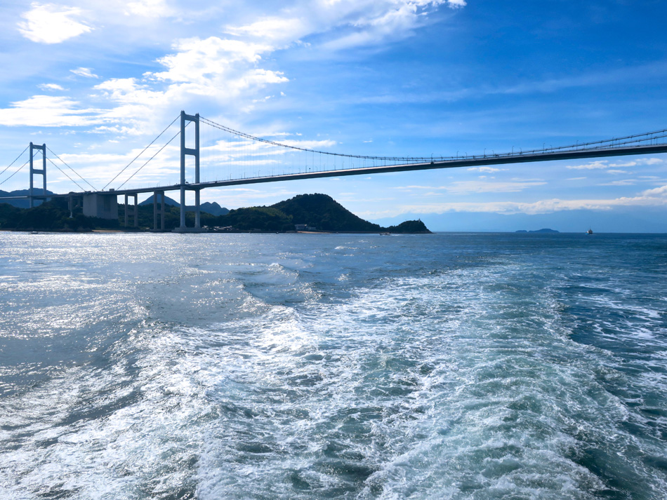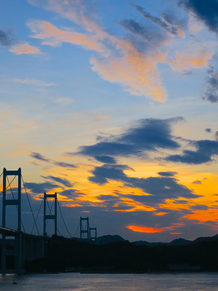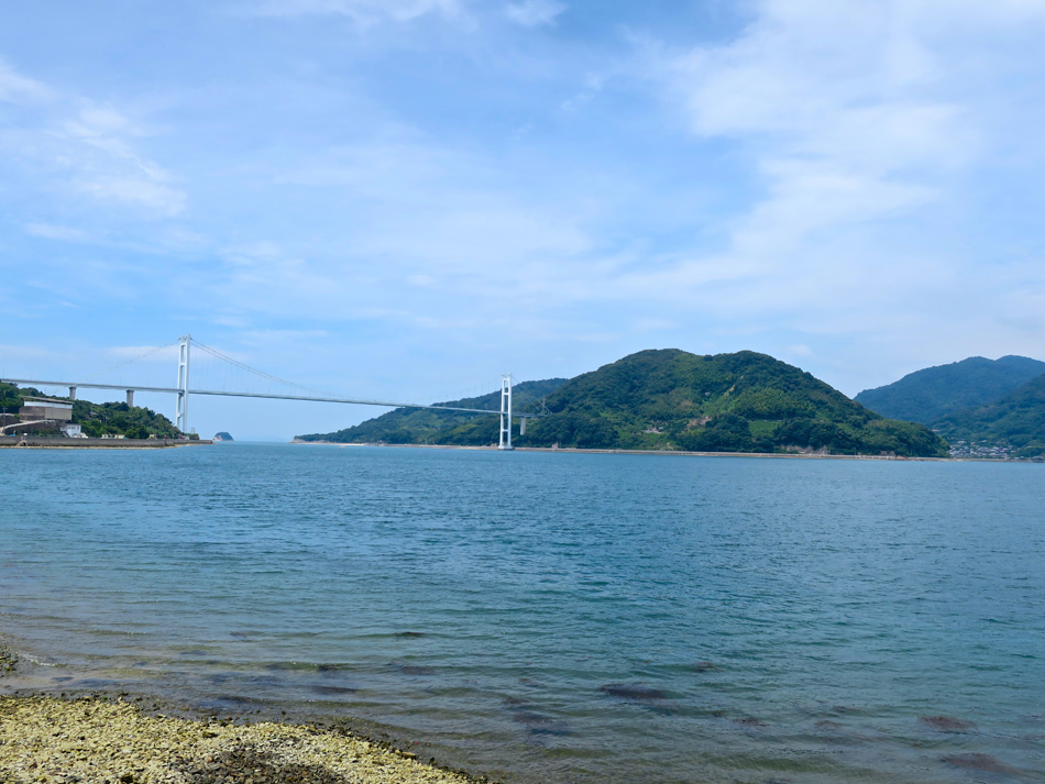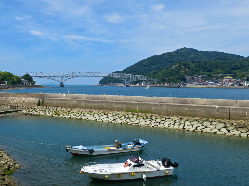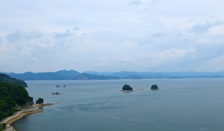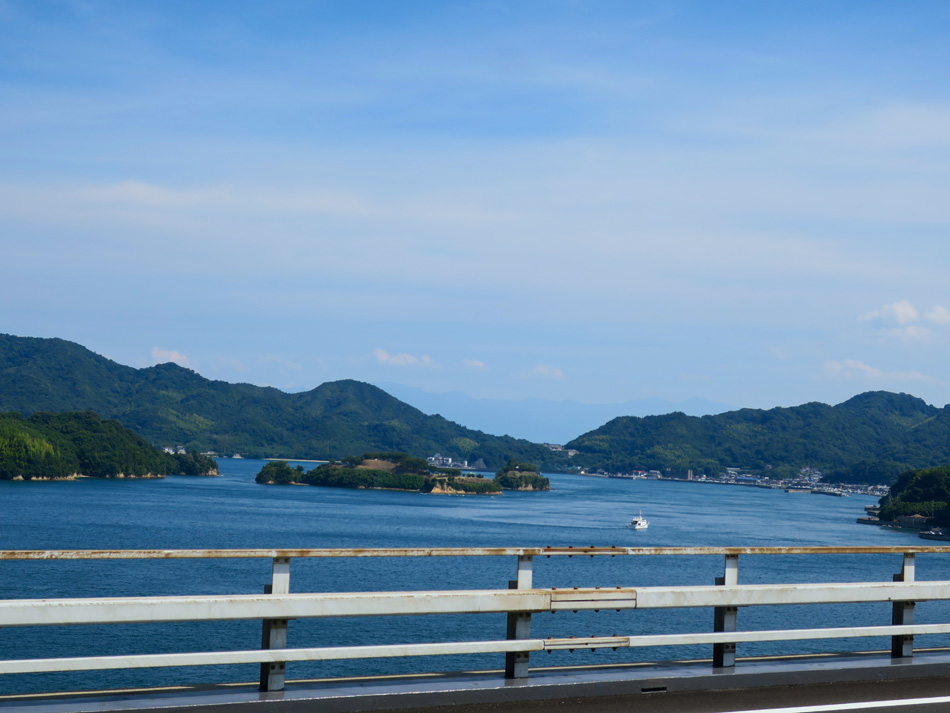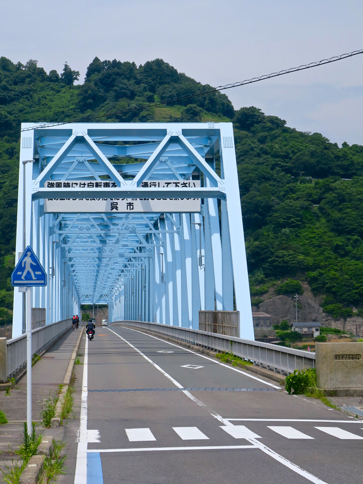 朝6時、スマイリー、グレッグ、uruman三氏にCycle 86 の4人が博多駅集合。 今日は超お久〜、しまなみ海道・とびしま海道ツアー敢行 の日! maple氏が朝倉豪雨災害対応で急遽不参加となった のは残念だが、復興のため頑張って下さい! 博多駅を発つや心は学生時代にタイムスリップ。楽しい旅 の予感に心が弾み、話が弾んだ。 9時前新尾道到着、渡船で尾道を後に向島へ渡る。 向島では、先ずはグレッグさんお薦め『住田パン』で小腹 を満たした。列車疲れ?で3個も食べた。ネジぱんは腰があ り絶妙の美味しさ。 さて、いよいよツーリングスタート! 今回が最後のしまなみ自転車旅行かも知れない。そんな思 いで風景をしっかり目と心に刻みながら走った。 先ずは向島と因島を結ぶ因島大橋。二層構造の橋で車道の 下を走る。この橋はいつも旅への期待を膨らませてくれる。 そして、因島と生口島に架かる生口大橋。 これは一つの芸術作品! 次に生口大橋に似た多々羅大橋が生口島と大三島を結ぶ。 橋の大三島側にあるのが道の駅『多々羅しまなみ公園」こ れは忘れられない場所だ。 12年前の福岡西方沖地震。『家の屋根が壊れた!』との 娘からの衝撃メールを受信したのがここ。今回は食事をした だけだが、その味は超塩辛かった。サイクリストの塩分補給 を考えた、、にしても酷い・・。ここはどうも鬼門だ。 次は大三島・伯方島間のアーチ橋・大三島橋。 機能的な力強い美しさを感じる橋だ。吊り橋の多い中いぶ し銀的存在。見てほっとする橋。 主役登場前の最後を飾るのは伯方・大島大橋である。伯方 橋は一番地味な桁橋、大島大橋は吊り橋で両者は一体になっ ている。写真手前が伯方橋。奥が大島大橋。 伯方橋、山椒は小粒でも、、、見晴らす景色は負けない! そして、大島側から見た大島大橋。 さて、いよいよ真打ち登場! 真打ちに出会うにはそれなりの儀式が求められる。儀式は 時にそれ自体が真打ちとなる。今回がまさにそれだった! 『亀老山展望公園』への挑戦。猛暑と激坂との闘い。鍋ヶ 滝ツアーの辛さを凌ぐ試錬。何度足を着こうとしたことか! しか〜し、激坂を乗り切った先に報酬あり! ご覧あれ! 眼下に望む来島海峡大橋! 更に、汗ダ〜クダクのヘ〜ロヘロの体に鞭打って頂上への 階段を上ると、そこは報酬の宝庫!? 大橋の6つの主塔が一望できる。 そして、魅力的美女との出会い! 心もメ〜ロメロ! 堤里砂さん、uruman情報では愛知で人気のアナウンサー だそう。辛い激坂も疲れも吹き飛んだ! なおか〜つ、自転車自走で上った実力派サイクリスト! 天は二物を与えず? いえいえ、二物も三物も与えます! ますますのご活躍をお祈りいたします。 魅力的なのは景色もまた然り。今治方向の眺め。 限りなく続く瀬戸内の海原 しまなみ海道来し方の眺望 来た、見た、勝った! 来島海峡大橋を渡る途中、一枚の写真も撮らなかったのは 今回が初めてだろう。それほどに強烈な印象を与えてくれた 亀老山であった!