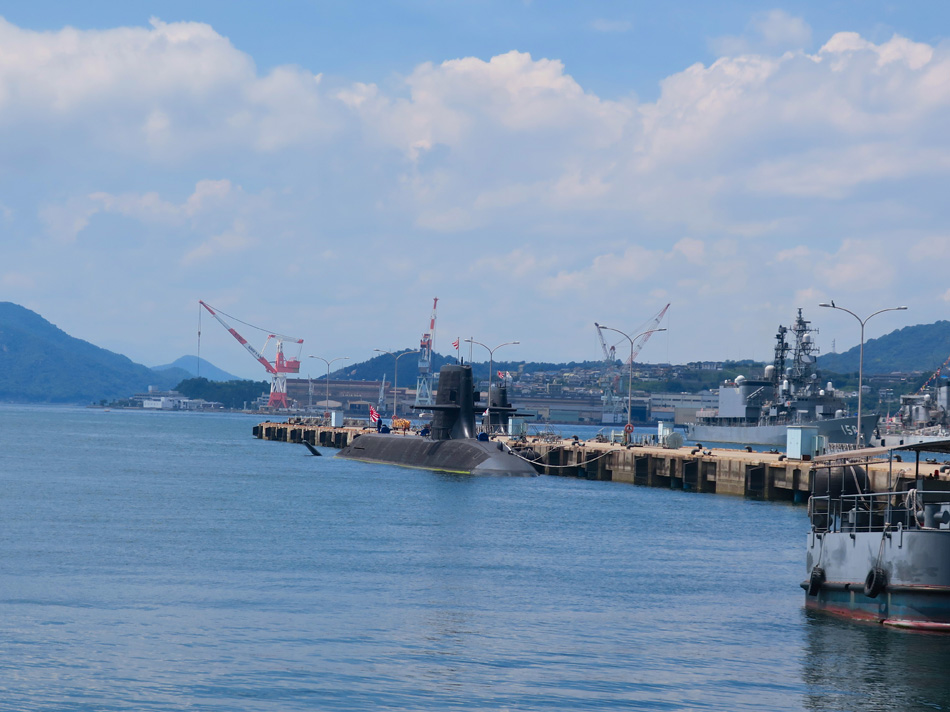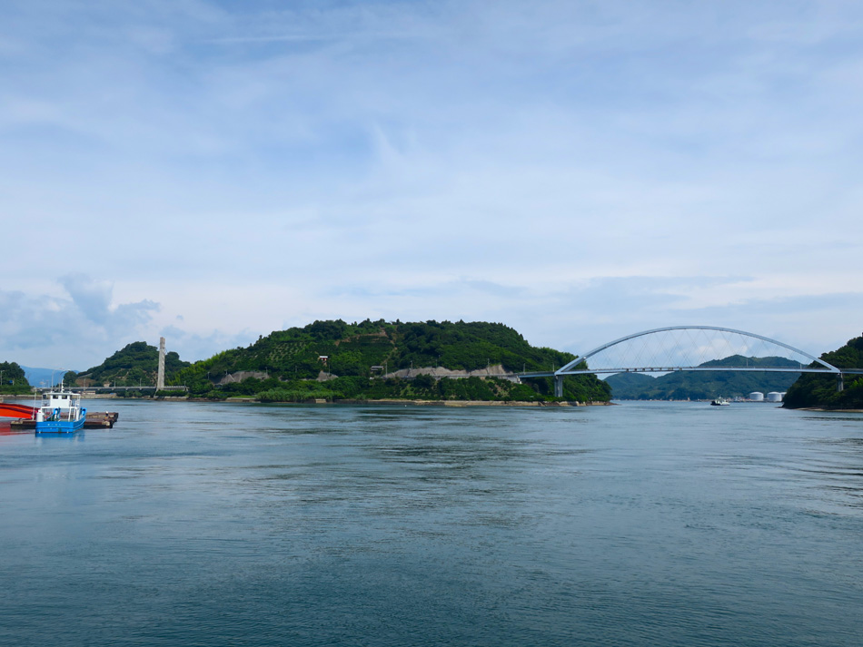 宿のサンライズ糸山、とにかく宿泊料が安い。何と驚きの 一泊2700円。なおか〜つ、眼前に広がる景色最高! 日の出直前の来島海峡の眺め 8時前に宿を出発し今治港へ、そこから渡船で岡村島へ向 かう。ところが昨日の亀老山で疲れたか? タイアが主に代 わって音を上げた。今にもチューブが飛び出しそう・・。 備えあれば憂いなし、タイアのスペアを携行していて事な きを得た。予備タイアの携行は日本一周の旅以来の習慣だ。 船室が自転車修理の場になり、グレッグさんが手際よく作 業をしてくれた。ありがとうございました! 来島海峡大橋をくぐり抜け1時間ほどの船旅。 しか〜し、岡村島で下船するとタイアに代わって主の気分 が優れない。暑さのせいで熱中症気味だった? リタイアし たい気分だった・・。皆さんに迷惑掛けたかな!? 以下、橋の紹介を主に簡単レポで失礼。 先ずは岡村島〜中ノ島の岡村大橋 この橋上に愛媛県今治市と広島県呉市の県境がある。 次は右:中の瀬戸大橋(中ノ島〜平羅島) 左:平羅橋(平羅島〜大崎下島) 豊浜大橋(大崎下島〜豊島) 豊島大橋(豊島〜上蒲刈島) 豊島大橋からの眺めはお気に入り。唯一両側の景色撮影。 北側には二見ヶ浦が3つ!? 蒲刈大橋(上蒲刈島〜下蒲刈島) 蒲刈大橋からは下蒲刈島〜本州間に安芸灘大橋が見える。 下蒲刈島には何度見ても不思議で気になる建物がある。 一坪の土地も無駄にしない精神に脱帽! 今日はもう一つ、うだる暑さに脱帽! これまでは広島駅まで自走だったが、今回は呉からJR利 用で衆議一決。 海上自衛隊基地を訪ねて潜水艦を写真に収め 最後は大和ミュージアムの見学で終了。 1/10モデルではあっても戦艦大和の存在感は圧倒的で あった。零戦や人間魚雷回天などの展示もあったが、胸が締 め付けられる思いがした。 今日は一日暑さと闘った感じ。亀老山の印象があまりにも 強烈で、初日で燃え尽きてしまったかな!? 走行距離155㎞ 海道の景色を満喫した二日間だった。 urumanさん、スマイリーさん、グレッグさん、また苦っ楽 しいサイクリング一緒しましょう!