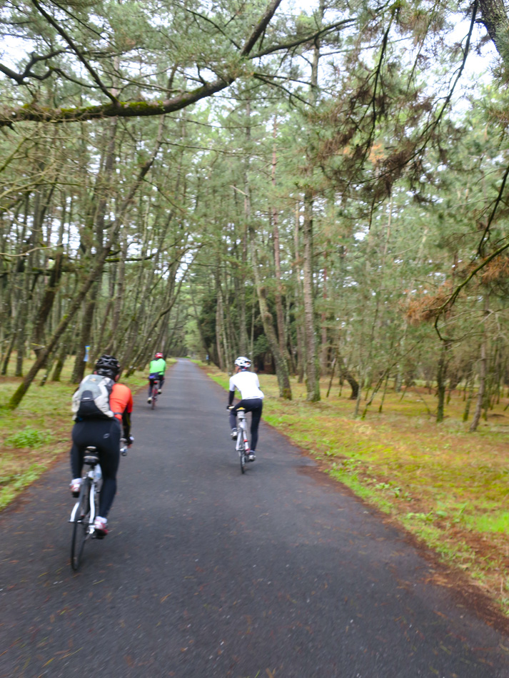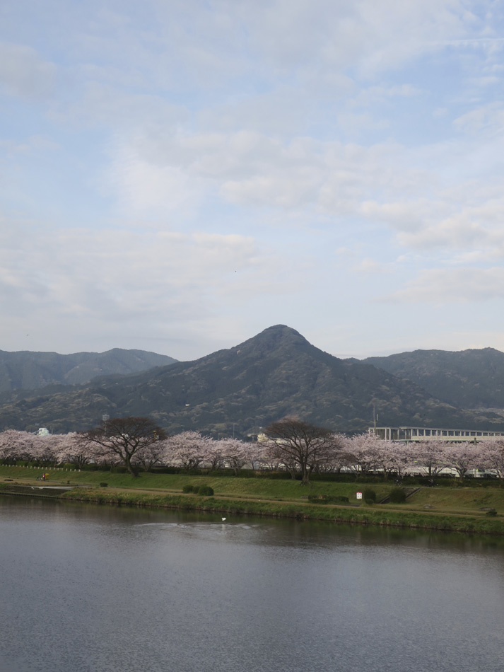 で我がチタン製愛車に錆が出た?! 雨予報が一転、晴の予報になり、予定通り唐津鏡山へ行く ことになった。 ランの影響でやや腰に違和感があり不安一杯のスタート。 傍目にはぎごちない走りだったかも知れないが、満開の桜 をそこここに眺めながら走るのは気持ちが良い! 先ずは室見川河岸の桜並木。青空も広がり始めツーリング への期待が膨らむ。 糸島へ入って、瑞梅寺川の桜。 地元糸島のPiccolinoさんの先導で訪ねた正八幡宮の桜。 華やかな桜の下に、椿から零れた花の赤い色が妙に艶めい た印象を醸していた。 次に訪ねたのは福吉の菜の花畑。タイミング良く電車が通 りかかって面白い写真になったかな。 今日は北九州から集合場所一番乗りヒロさん、私以上に自 転車ご無沙汰デーのスマイリーさん、糸島最強ツーキニスト Piccolinoさんとの楽しい一日となった。 4人の笑顔はサイクリングの楽しさのせいではない。シャ ッターを切る女性への笑顔であ〜る。(笑) 途中すっかり鈍った自転車脚に苦しみながらも虹ノ松原を 抜け、今日のメインディッシュ、鏡山にアタック開始! 鏡山、自転車自己ベストはジャスト16分。多分10年以 上前の記録だが、この記録をあっさり軽々4、5分は改悪し アップアップのアップ坂制覇となった・・。 しか〜し、そのアップアップの報酬がこの景色。 桜の九十九折りの眺めに満足度 100%! 天気予報はその名に恥じない外れっぷり。晴天は朝方のほ んの一時。気温も上がらず肌寒い一日だったが、我々が山頂 にいる間は明るい空に恵まれた。予報より『晴れ男』(ヒロ さん)に頼った方が確かなようだ。(笑) これで終わりの筈だが、地元人 Piccolinoさんのお陰で今 回もう一つ見所があった。『松国の一本桜』 皆さん、今日は楽しい一日をありがとうございました! また是非一緒しましょう! では、その日まで! 本日の走行距離 103㎞ |