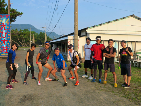 先週 9月 年間累計 ラ ン 55㎞ 78㎞ 2066㎞ 自転車 8㎞ 11㎞ 622㎞ 先週は錦織選手活躍のお陰で随分時間が削られました。 決勝まで勝ち上がってほしかったけれど・・。 グランドスラム初勝利の日が来るのはいつ? 夢を見ているうちが花か? 我がマラソンでも再び夢を見られそうだ!? 先週それな りに頑張ったが、腰痛が再発することはなかった。しびれ感 は相変わらずあるが、練習に差し支えない。 もっとも、我がランのは花が咲くどころか、蕾がつくかど うか・・。福岡マラソン何とか出走できそうだが、今年も完 走狙い、オリンピック精神発揚の場になる雲行き・・。 奇跡の腰痛脱出を果たした今、もうひと頑張りもふた頑張 りもしなけりゃ罰が当たりそう! 今週は大濠10㎞の600ペース切りが最大目標! 果たして??? [600(ペース)、535(ペース)等の表記は、それぞれ 1㎞を6分00秒、5分35秒(のペース)で走ることを言います] 今週のムッサン 11日 福岡マラソン対策第一弾で糸島15㎞JOG。 10人で実施となると、個人練と違って力以上の走 りができる。調べてみると7月3日ハーフマラソン レース以降のベストペース。 久しぶりに走った〜〜を実感! もっとも、帰宅後いつものグータラ生活にどっぷり 浸かったのに成長は感じられないけど・・。 葉室 麟著『潮鳴り』届く。 しか〜し、読む意欲が薄れたような・・。何故? 12日 本日計画休足。腰痛再発防止作戦で暫く5活1休で 行く。今日1日休足で明日から5日間は活動。 明日は早速10㎞ 600に挑戦か!? 今日幸い腰痛全くなし。整骨院で明日に準える! 葉室 麟『潮鳴り』を読み始め結局一気読了。葉室 作品もう十分満腹。卒業します!? 13日 5時前大濠へ! 自転車にはライト。やや肌寒い感 じ、JOG後の寒さ対策でウインドブレーカー携行。 今日600切り挑戦初日。最初1㎞はWarm-upでやや 控えめペース。 徐々にペースアップのつもりだった が、『徐々に』とはならなかった。気負いがあった ようだ。後半加速の余力無し・・。 本日の大濠10㎞JOG:602→602 av. 602 あと一歩だが、糸島JOGの良い流れ続いてる! 明日はゆったり上智10㎞走かな? 14日 起床5時過ぎ・・。朝練は中止、午後走ることにす る。今日は一日曇天。台風16号の影響じゃなかろ うが、今後の進路が心配だ。 昨日の大濠ランでそれなりの走りができ気をよくし た。早速鹿児島マラソンエントリー! ファミリー エントリーだが、果たして抽選結果は? 夕方近くなりラン出撃! 上智10㎞JOG、今日の 目標は心拍数を上げないことだったが、心肺機能も 低下だね、目標達成ならず・・。焦らない!! 15日 今日も5時過ぎ起床・・。 夕刻大濠へ! やや迷ったが2㎞TTに挑戦! やや 根性が足りなかった・・。4本のつもりが3本で終 了。まだまだTTと言える代物じゃない。 大濠2㎞TT×3:518→530→547 平均532 やっぱり、TTでなく速めのJOGだ。次回4本挑戦 習近平さん引退後は民進党党首選に立候補しては? 16日 今朝は4時半起床。朝ラン出撃! と言っても、有 酸素運動意識のSJG(遅めのJOG)、もっとも今は 意識せずとも全てSJGだが・・。 SJGだが、足も体も重く大量発汗。やや疲労気味? 上智10㎞SJG 718→717 av.718 何があったか、六本松交差点に消防車・パトカー多 数、桜坂と2カ所で通行規制をしていた。 東京マラソン落選・・。今までの抽選運が良過ぎ。 17日 起床5時前。気合い入ってる〜! と、言いたい所だが、どうしてどうして・・。 気持ちが目覚めない、あるのは疲労感ばかり。なお か〜つ、妥協の早さは我が特技・・。 即決、休足先取り!! 明日できることは明日に回 せ! しか〜し、明日は一日雨予報。大丈夫かね? 我が行動正当化のため庭木剪定に着手したが、台風 16号の影響でいつ完了になるやら・・? 今日11日、やや不安ながらも糸島17㎞走に参加した。 心には不安の影が射しても、朝の空は青く陽が射している。 走るには、この青空、嬉しいような怖いような・・。 今津運動公園に駐車予定が、利用開始は8時・・。 急遽、大原海水浴場に駐車し15㎞走で決行。貧脚の身に は、決行でなくケッコウ、結構! スタート前、太陽はまさに雲の上に昇ろうとしている。 この暑さの中を走ろうという好き者10名!! 若者に一人混じって粋がるシニア約1名・・。(汗) 最初、敬老精神光り輝く! 颯爽と先頭に立ち走るシニア!! しか〜し、2〜3分・・。 今日の目標は完走。先頭集団は追わない。 福岡マラソンが2ヶ月後に迫る中、腰痛を脱出したばかり、 10㎞走がやっとの現状では、今日この条件の下で15㎞走 り切ることの意味は大きい。 一人だけプールから飛び出したかのように大量の汗を噴出 しながら走った。写真係に徹する予定はスタート直後放棄! 唯一撮った二見ヶ浦は夫婦岩の写真。 この景色、確かに癒やしを感じました。もっとも台風シー ズンに相応しく風速50㍍の勢いで消え去りましたが・・。 やはり、集団の力とは凄いものでございます。一歩も歩く ことなく完走!! 8月末の練習再開後のベストペースで走 り切ることができました。一緒に走っていただいた皆さんに 感謝! 次