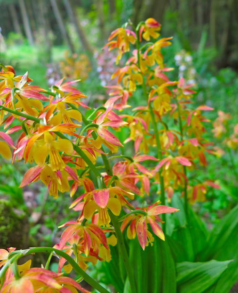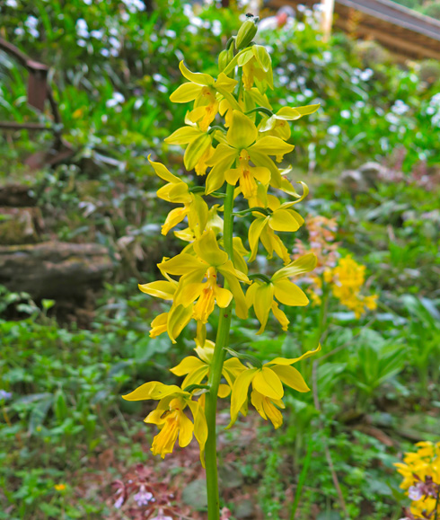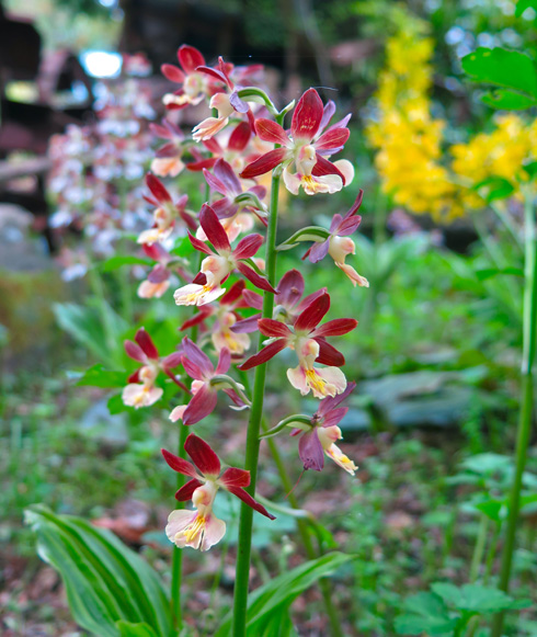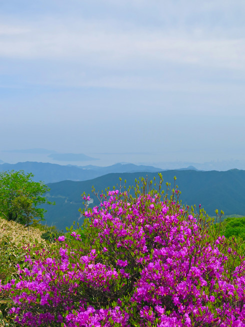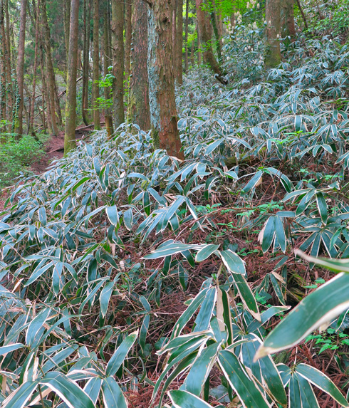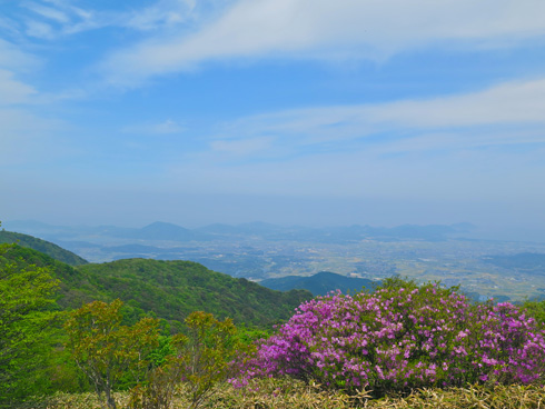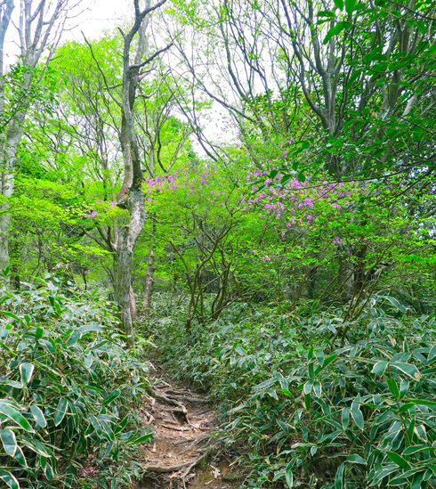 ツジを観たいと思ったのです。しか〜し、「いわらやま」と 読むとは知らなかった・・。 前回井原山には三瀬峠から行ったけど、三瀬峠からの登山 道は通行止めになってました。それで、今回は古場岳登山口 から上ります。これがとんでもハプニングのそもそもの始ま りだったとは知る由もなかった・・。 登山口からしばらくはコンクリートの道を進むが、やがて 砂利道に変わり良い雰囲気に変わります。 更に進むと杉木立が続き、、、 杉木立を抜け暫く登山道を進むと、次第に今日の主役ミツ バツツジが姿を見せる。ウグイスの鳴き声もして結構!! そして、井原山頂上! 曇り空だったけれど、奇跡的に晴 れ間が広がった。何か良い事したかな? 遠く能古島、志賀島、海の中道が見える。博多湾が雲海に 見えたのは先日の八木山峠の余韻か? こちらは糸島方面の眺め。 山頂で食事をし下山開始。もちろん三瀬峠側に下りて行き ます。このルートが間違いだとは思いもしません。行けども 行けども登山者の姿はありません・・。 この方との出会いがなければ、私たちは今頃どうなってい たやら・・。 新村にお住まいの方でした。別荘に案内して頂きました。 そこは、まさに都会からの隠れ家! そして、男心をくすぐ る魅力溢れる場所でした。手作りの露天風呂あり、杉の木に 懸かるブランコあり、シャクナゲ、ツツジ、ギボシ、ドウダ ンツツジ等々、季節の花の咲き乱れる庭! ここは楽園だ! 気に入ったエビネをご紹介。 暫く庭を歩き談笑した後、車で古場岳登山口まで送って頂 きました。最後の写真は、案内して頂いた脊振山系を見晴ら す展望ポイントからの眺め。 今日は本当に何から何まで有り難うございました。いつか 酒をぶらさげて迷い込ませて頂きます!