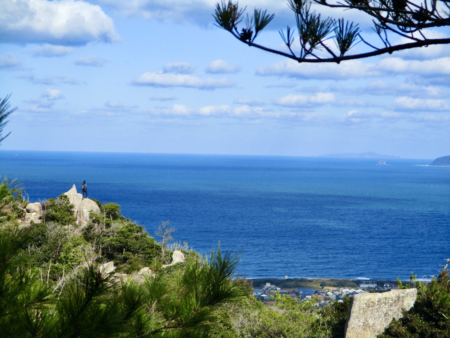 昼近い12月22日11時過ぎ、年内最後の登山に出動! 遅すぎるスタート時間、スマイリーこと藤田さんと目指すは糸島立石山。時間をかけず、労少なくて本格登山気分が味わえるコスパ最高の近場登山だ。 スタート直後にある海岸、玄界灘の荒波が押し寄せる。立石山登山も鶴見岳と同じく海抜0mからスタート。 海岸から登山道に入ると直ぐそれなりの勾配になり登山気分が味わえる。しか〜し、そこはコスパ最高の山、ものの10数分も歩くと絶景が楽しめる! 更に20分程で巨石の眺めが楽しめる。一部山陰に隠れて見える島は姫島。幕末、野村望東尼が流された島である。 数多の巨石の中で最大のものは次の岩だろうか。鳥居と共に小さな祠が設らえられてる。 このように舞台が整うと人は自然と一体になろうとする。巨石に立つ登山者の姿、お気付きだろうか! 冬の陽が傾くのは早い。唐津方向に続く海は太陽に輝いている。 1時半頃、山頂先のお気に入り絶景ポイントで昼食と記念写真。コスパ最高の山行にスマイリーさんも満足してくれたようだ。 『帰やさん(可也山)ぞ!』と美しい姿を見せ付けられるが、熱々のカップ麺とコーヒーで温まった体を冷やすまいと下山開始。 3時前最後の絶景ポイント写真。 多分あなたも”I♡ITOSHIMA" 再び戻った海岸、波は穏やか、迫る夕方を感じた。 大満足〜、久しぶり立石山! 山行最高だぜ! スマイリーさん、年末の忙しい中、付き合っていただきありがとうございました。また一緒しましょう! 立石山登山:54:09 4km |