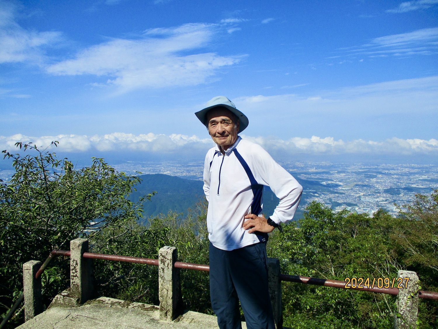 朝の涼を狙った早めのスタートだったが、今年の暑さは異常。人間水源地を自認する汗かき、瞬く間に汗が滲み滴り始める。 宝満こんなに階段続きだったかね・・。一人だったらギブアップしてたろう。だが、後ろにピッタリ堤君、忙しい中付き合ってもらって足を止めるわけにはいかない。 しか〜し、またまたまたの石段。スタートして1時間、写真1枚を口実に遂に足を止めた。 一度止まると5分後2回目。 更に20分後、『この坂さっき登ったや〜ん』と思ったね。ここが最大の山場? 『うんにゃ、うんにゃ、まだまだ!』(涙) 更に約20分9:20、8合目中宮跡到着。もう100m登れば山頂! ここで今日初めてまともに周りに目を遣った。ススキの穂、秋だね〜。 中宮までが宝満の正念場。中宮〜山頂(上宮)もきついけれど精々真夏日、猛暑日の厳しさではない。9:40宝満山撃破。 堤君、ありがとう! おかげで何とか顔晴り、いや頑張りました。次は鶴見岳、宜しくお願いしま〜す。 今日の宝満山登山、ガーミンによると、 宝満山登山:38:40 7km 体感的にペースは『遅い』か精々『やや遅い』、しかしYamapでは『速い』! 信じ難いが、これを宝満登山の基準にする。当面は平均ペース160〜180%を目標に顔晴りたい。 今日の登山で随分多くの健脚人に遭遇した。まるで羽根を纏って翔んでる感じ。宝満は山でなくジム。登山と気負わず、ジムで淡々と事務的に距離を踏む。 2度追い越された御仁に尋ねた。『何往復するんですか?』 『今日はこれで終わりですが、5往復しました』だと!