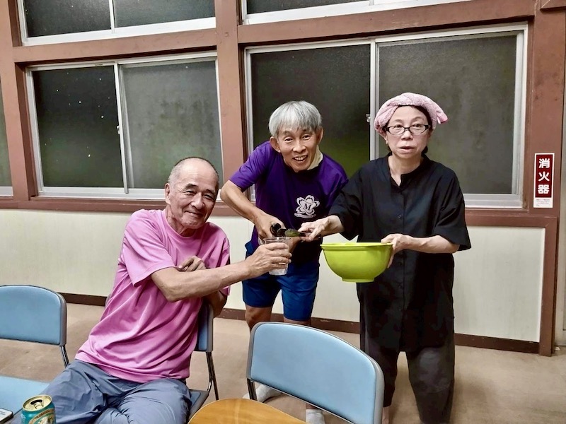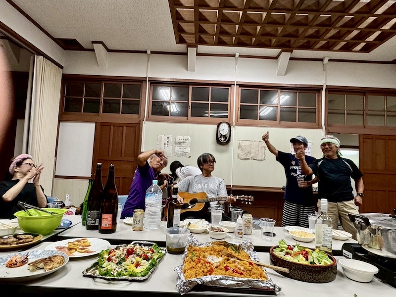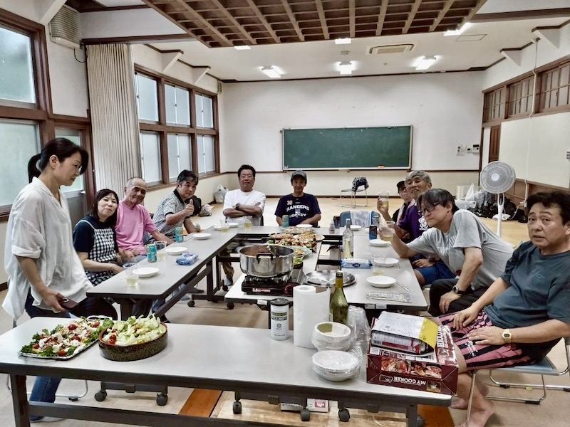 先週 9月 年間累計 ラ ン 33㎞ 60㎞ 1161㎞ 異常な猛暑にやられた感じだ。前向きに、積極的にという気持ちと裏腹に体が動かない。つられて気持ちも動かない・・。 今週中に東京マラソン2026抽選結果が分かるはずだが、当選して気分転換のきっかけになるよう願おう。他力本願だね・・。 登山予定と同行者募集 (現在車が使えない状況で2ヶ月ほど募集中止します) 今週のムッサン 20日(土) 今日・明日はTeam M 鳥羽院山荘合宿練。福岡マラソンを前にメンバー相互で刺激し合い、かつ親睦を図るチーム最大のイベントだ。島尾君に迎えられ、昼過ぎ会場鳥羽院山荘着。先発陣がテント設営も済ませ、諸準備が着々と進む。合宿メンバー11人勢揃い! 夕刻近く、高椋君・堤君が差し入れを手に立ち寄ってくれた。美味しくいただきました、ありがとう! と、突然雷光一閃、雷鳴響き渡り雨・・。幸い大した降りにならず、マラソン組4人は雨中ランニング決行。最速、元い最遅ランナーの私は多用を口実に5kmで打ち切り・・。 鳥羽院山荘JOG:5km キッチンでは男女料理自慢により宴の準備が急ピッチ! 強引に割り込んで二品作った。 その後は、『飲んで食べて、歌ってまた飲んで、時も歳も忘れて過ごしました。あぁ〜、いまだ青春の、真っ盛りでございます〜』 19日(金) 明日合宿練、ペース狙い上智走。ギリギリ合格。 上智5kmJOG:7:50 彼岸を前に墓掃除。手入れされてない墓が増えた印象だが、人口減少の影響だろうか。ちょっと寂しい。 東京マラソン2026、残念ながら落選。これを以って東京マラソン卒業。今後は金印マラソンと福岡マラソンで顔晴る。 18日(木) 雷鳴と雨の朝・・。開き直ってMLB観戦集中。 これじゃ走力つくわきゃないよ。わかっちゃいるけど(苦笑) 17日(水) 週末のマラソン合宿練への準備に専念。大谷の力投・50号HRも虚しくドジャーズ敗戦。酷い継投陣だ・・。 16日(火) 今日も10km目指し上智コース走ったが・・。 返り討ちに遭ってしまった。 福岡JOG:6km ランとの闘いじゃない、自分との闘い。喝! 15日(月) 昨日のリベンジ! と今朝も上智コースで10kmめざした。結果はトラ・トラ・トラ! 福岡JOG:10km 今日もメアド変更で時間浪費。文明の利器? 文明の鈍器! TABATA㉚実施。相変わらず動き鈍重・・。 14日(日) 今週は天気悪そうな予報。稲光と雷鳴の朝だったが、少し遠い感じで10kmを目標に上智コースに出動。スタート間もなく頭上で雷鳴が響き始め1周で終了。 福岡JOG:5km 今日もメアド変更に時間大量浪費(苦笑) 余計なことを始めてしまった・・。