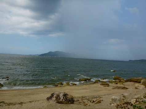 そして、またまた台風。沖縄近海に停滞を続ける15号は迷走台風の様相。おかげで練習も思うに任せず、遅いペースにややイライラ、、。f(^ー^; と、やや倦怠感を漂わせていますが、ここは自然の持つ癒しの力にすがりましょう。 立たんばかりの赤い絨毯が広がることでしょう。 めぐり行く季節の中で精一杯輝きを放つ生きとし生けるものの底力。人間にも、私にも備わっていることを信じましょう。 どんよりした日が続いて妙に感傷的になったようで、、。(^^) ま〜とにかく、やるべきことをやるのみ。『当たり前のことを当たり前に行う静かな勇気』確かに、平凡さ、淡々とした生活の中にこそ本当の『力・勇気』が宿っているのかもしれません。 今月はわけワカメな天気のせいで、昨18日迄に、自転車走行距離516㎞。ジョギング80㎞。 淡々と目指します!100㎞、1000㎞。(大丈夫?) 最後に、我が家の頑張る葉っぱ君の続報。半分に切り落とされた『びっくりグミ』の葉の逞しき生命力の現況をご覧下さい。そして声援を送ってやって下さい。頑張れ、びっくりグミ!! 7月11日、9月2日の写真はこちら。 今日は今月一番のお楽しみ、周防大島サイクリング。自転車仲間yamamenさんに拾って頂き、まっこち、エロビス両氏も合流し総勢4人。