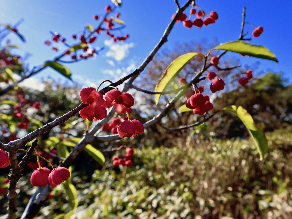 紅葉が楽しめれば、くらいの期待だったが、七曲峠に着く頃には紅葉には早すぎたと思わざるを得ない状況・・。峠に駐車して、取り敢えず、山頂からの展望期待で登山開始! 登山口から、直ぐ階段が始まり気持ちは早くもブルー・・。 しか〜し、自然が気持ちをもり立ててくれた。 いきなり登場したのがこれ、わかるかな〜? 小学生・中学生の頃に近くの山で食べたアケビ! 動物か鳥に食われた残骸だろうが、Tさんと思い出話で盛り上がる。 その後は、見るもの総てが有り難くなり、 新鮮な感動。 暫く登ると景色も嬉しい。筑紫平野、有明海、、、遠足気分! 山頂に近付くにつれ、季節のおもてなし度、更にパワーアップ! そして、いよいよおもてなしの真打ち登場! 山頂で我々を迎えたのは、ヘリコプター! 消防署による遭難者救助訓練だったが、間近に見るヘリコプターに我等の高揚度は最高潮! 〜有明海&平成新山〜 〜遠く伊万里方向を望む〜 〜脊振山地の山並み〜 何もかも総出のおもてなしに、山頂からの絶景の素晴らしさも、流石に影が薄かった??? そんな中、上の写真撮影の最中、天山の主と思しきカラスに、お気に入りの未開封アンパン5個持ち逃げの手荒いおもてなしを受けたことを報告して終わりとします。 天山登山:8km