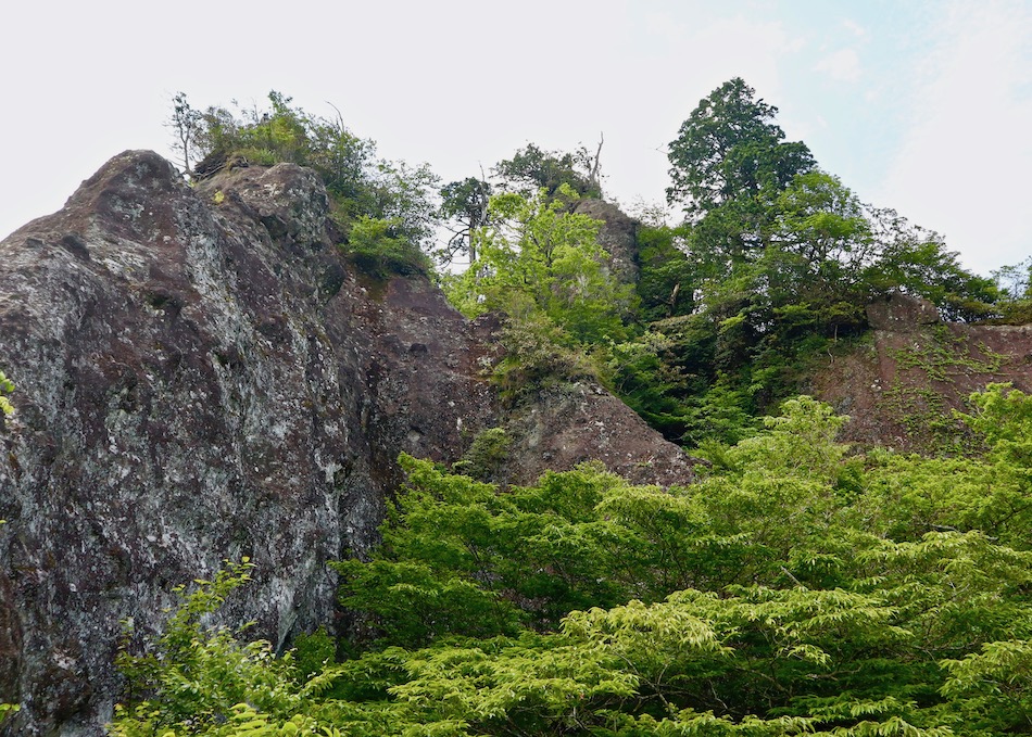 早い出発のおかげで、8時15分頃には登山開始だ。高住神社豊前坊に無事下山を祈願してスタート! がれ場を登る足は重い・・。苔生した岩や倒木が息抜きになる。 20分程で望雲台登り口到着。予想より険しい感じだ。 鎖場を登れば絶景のご褒美! しか〜し、一歩先は断崖・・。 流石、望雲台の名に恥じぬ絶景と思ったが、、、 細い小径に気づき辿って行くと、絶壁の鎖が待ち受ける。この断崖の上が『望雲台』なのだ・・。 望雲台からの眺め! 足元を見下ろす勇気はないが・・。恐る、恐〜る、、、 横には岩場が続くが、まさか・・。登らないよな〜。 遠くの景色で十分満足。 望雲台、上り下り併せて30〜40分程過ごした。自分の中ではこれが今日随一の見所。しか〜し、足も体もすくんで筋肉が強張ってしまった感じだったね・・。 10時過ぎ北岳山頂到着。山頂周辺には草地が広がり高木も多く、手入れされた庭園のような雰囲気を感じた。 木々の緑に癒やされ元気回復、尾根伝いに中岳を目指す。前方右が中岳、左が南岳。 11時前、英彦山中岳制覇。南岳も登頂の予定だったが、足が重く中岳で引き返すことにした。足腰の鍛え方不足だね・・。 中岳で昼食を食べ下山開始。途中雨に降られたが本降りになることもなく無事下山。楽しい一日は斯くして終わった。 望雲台(英彦山)登山:6km 今日一番の思い出は望雲台。感動の一言に尽きる。絶景と膝ガクガクの緊張感。怖いもの見たさってやつ。近々裏を返さねばなるまい。