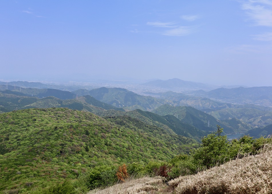 最初の滝の写真で山の名はお分かりになる筈・・。 この滝から先が大変・・。 しか〜し、1時間余の苦しさに耐えれば勝利は我が掌中! 下の山頂にグリーンが広がるがゴルフ場じゃない、、、鷹取山。 間もなく目的の山頂が見え、緑が存在をアピールしている。 前回茶色だった木々も今は緑! 山頂の写真を撮った方を山頂から撮影すると、 遠賀川の川筋が横に真っ直ぐ続く。 冬枯れの世界は今や緑の世界。緑滴る季節到来! 次は北九州市方向の眺め。 緑のトンネルが爽やかで気持ちい〜ぃ! 今日も福智山は歓迎してくれた。多分・・。 次回は多分一人で登る。多分・・。 福智山登山:7km