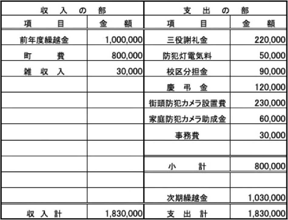 輝国公園の街頭防犯カメラは、公園沿いの道路監視でドライバーのマナーアップを促し、公園入口とトイレ周辺の監視で子どもたちの安全安心確保を狙っています。 もっとも、朝のあいさつ活動で猛スピードで走る車を見るとオービスを導入したくなります・・。(笑) 設置台数が増え、町内へ出入りする車両等のチェック体制が整えば、町全体の防犯力が高まり安心感も大きくなると考えます。 次期町内会長の下でも街頭防犯カメラ設置が進み、防犯体制が整備されるよう願います。 ところで、街頭防犯カメラ設置の過程で、町内会や自治会の抱える問題の一端を垣間見た思いがします。 カメラ設置までの道のりは結構大変でした。設置場所から、カメラ用専用ポール設置の問題、更には費用のトラブルまで。 何度か設置断念も考えましたが、この際この制度を徹底的に見てやろうと考え直しました。 その方針で市担当者や業者と協議を重ね、町内会の負担を抑えることができましたが、補助金制度全般のあり方に疑問も覚えました。 街頭防犯カメラ設置をはじめ、防犯灯設置費用、防犯灯電気料金等、それぞれに補助金制度があるのはありがたいことです。 しかし、その制度を見極める視点から取り組むことで、制度の抱える問題点も浮かび上がってきたと感じています。 クイズにして考えてみましょう。 上の表は仮想の決算報告書です。分かりやすいよう項目や金額を簡略化していますが、皆さんはこの決算報告書をどう思われますか。 承認いただけますか、それとも何か不備がありますでしょうか。 町内会の会計の問題であれ、コロナウイルスの問題であれ、正しい判断や行動には、問題の正しい理解が欠かせません。 物事を正しく理解せずに、正しい判断は下せません。 街頭防犯カメラ設置で問題にぶつかった時、思い出したのは防犯灯のLED化工事のことでした。 LED化工事申請手続きで市役所を訪ねた際、他の団体の申請金額を聞いて驚きました。 一般的10W契約LED防犯灯の定価は17,000円と記憶しますが、申請金額には1万円台から3万円台までもの幅があるというのです! 因みに我が町内会は、定価+税で楽々2万円を切る額でした。 家庭で電化製品を購入する時、私たちは少しでも安く買おうと手を尽くします。 定価より高く買うなど論外! あり得ないことです。 ところが、町内会や自治会では必ずしもそうではない。一体何故だろう。大きな違和感と不信感を覚えたことを思い出します。 さて、市の補助金を受け取る方法は主に3つです。 ① 市に登録した口座への振り込み ② ①とは別の口座への振り込み ③ 現金で受け取り これまで補助金は①の方法で受け取りましたが、街頭防犯カメラ補助金では②を試してみました。 結果は、一切問題なく手続き完了、補助金を受け取れました。 先の決算報告書が承認されれば実験成功。その気になれば会長謝礼に加え防犯灯電気料補助金30,000円更に街頭防犯カメラ補助金(総設置費の4分の3)172,500円も受け取れます! しかも街頭防犯カメラの設置は同一年度に最大4台申請可能です。仮に3台設置なら、それだけで補助金の額は50万円を超えます。 もちろん、これは仮の話であり禁断の町内会を楽しむ法ですが、皆様どう思われますか。 今回はこれにて擱筆。