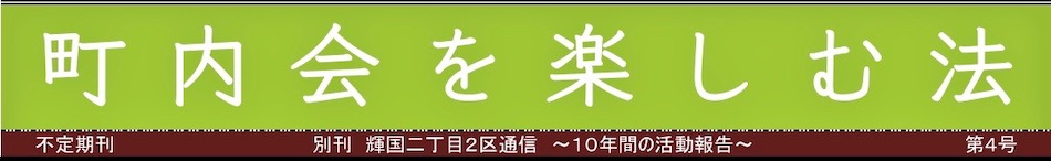 今回は『町内会を楽しむ法』第4号。前回、町内の安全安心感を高める狙いで街頭防犯カメラ設置に着手したことに触れたが、この取り組みの中で自治会や町内会への不信感は更に募った。