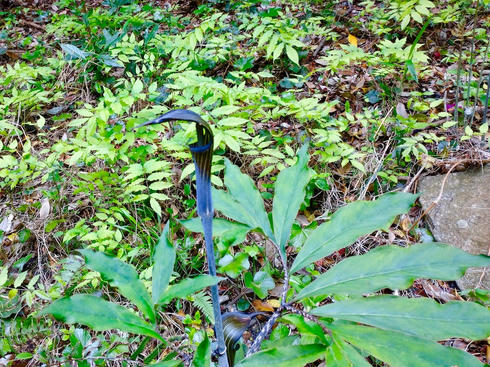 第一山へ向かう途中の小課題2つ。 第一課題、マムシグサの名に相応しい写真のゲット。いよいよ妖しく毒々しい。 第二課題、「石の上にも三本」がよく分かる写真のゲット。岩が割れる日が来るのは意外に早い? それを目にすることは・・。 課題を果たす時以外は歩きに集中。汗ばみながらもひたすら登った。そして、何度か披露したこの景色。晴れの予報だったが曇り空で、見晴らしは今ひとつ。しか〜し、高祖山撃破〜! 今回一番の課題は五山踏破。一山登っても休む時間はない。饅頭を頬張り次なる山を目指す。脚にやや強張り感があるが、樹々の織りなす巧まざる美を味わいながら歩を進めた。 そして、第二山日向山撃破! 撃破と騒ぐほどもない慎ましやかな山だが、傍には脊振山に臨む場が開けていた。 スタートして2時間少々、この辺りは初めての道であり一番不安だった。脚の不安に空模様も心配だった。おまけに今日は登山者が少ない。 そんな折、道端に可憐に咲くエビネ発見! これに気づく余裕があれば大丈夫! 小さな花に力をもらった思い。 エビネ姫に背中を押され第三山飯盛山撃破! 曇天のせいで見晴らしは利かないね。 飯盛山から引き返し、日向山を経由して高地山との分岐点到着。ここまで来てやっと安心したね。雨が落ちて来てもおかしくない空模様の下、『やったぜ〜』って気持ちだった。 ここから数分、第四山高地山撃破。 そして中央展望台からのいつもの眺め。 曇り空で景色は今イチだが、我が気持ちは今がイチ番。もう終わった気分。高名の木登りの戒めを思い出し、第二のエビネはないかと慎重に歩いた。(笑) エビネは見つからなかったが、不思議な造形など自然を味わい楽しみながら歩いた。 そして遂に、第五山叶岳撃破! 叶岳まで来て初めて気付いた、携行した3個のおにぎりは全く手付かずであることに! 思った以上に緊張し食べることに意識が回らなかったのだろう。 最後は、ツツジの花に迎えられ登山完了。佳き一日であった! 本日の踏破距離:10km