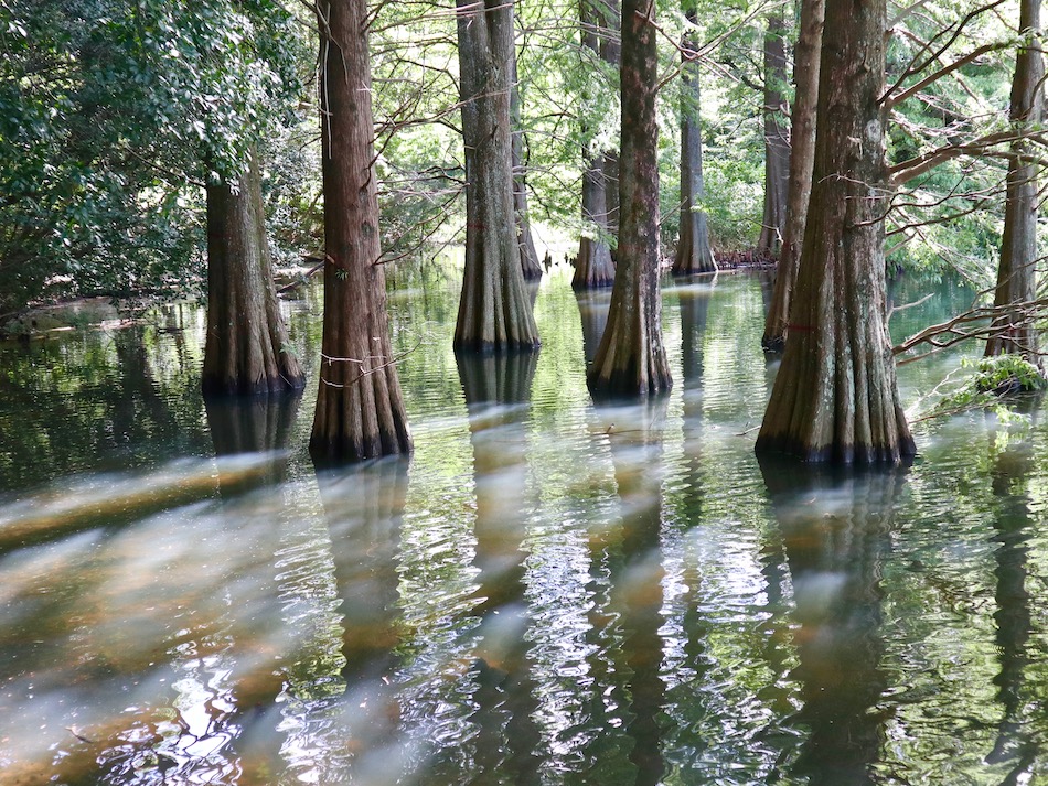 見よ! 太い木の幹も真っ青の巨大キノコ。自重に耐え兼ねて傾く大きさ! しか〜し、キノコの精一杯のアピールも長く続かない。今日は日が悪かったと諦めてもらうしかない。 じゃ〜〜ん、この景色見たらキノコのことなんか・・。今日の本命はこの恋人だよ〜。 その名をラクウショウと申します。漢字では落羽松。別名沼杉。 更に近付くと堂々とした風格が漂う。どの写真も捨て難く、選りすぐって9枚をご披露。どれが最高の見合い写真になるか? 主観の混じる説明はこれまで。じっくり写真を味わってください。 僅か30kmのツーリングだったが、最高に興奮を覚えたツーリングだった。できれば一日、いや半日でいい。時々刻々変貌する表情をカメラに収めてみたいものだ!