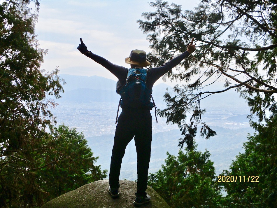 シャッター切ったの誰? は〜い、北九州から見送りに来てくれたヒロさん。で集合時間の1時間後、立っているのは片江展望台。急遽唐津鏡山行き中止、ヒロさんの油山登山に一緒します。 山頂までのコース途中の国見岩で国見、背後から写真を撮ってもらったのは転落の恐怖で引きつった顔を隠すため・・。平然と片足立ちするヒロさんに笑われたかな?(汗) 油山、低山なのだが意外に手強い。で、途中写真を撮るゆとりはなしです・・。次は山頂からの眺望。中央は能古島。その右が志賀島。更に右は海の中道を挟んで西戸崎方面。 後はどこをどう歩いたのやら。気に入った景色の写真を撮ったけれど同じ写真はもう二度と・・。(笑) 次の写真は、紅葉もだがむしろ赤松が撮りたかったかな。孤高の立ち姿が好きだ。それとも好きなのは松茸か?(笑) 最後に少し雨が降ったがそれも一興。それもこれも全てヒロさんのお陰です! 本当にありがとうございます。今後もよろしくおねがいします。 本日の距離:7km (ランに加算) |