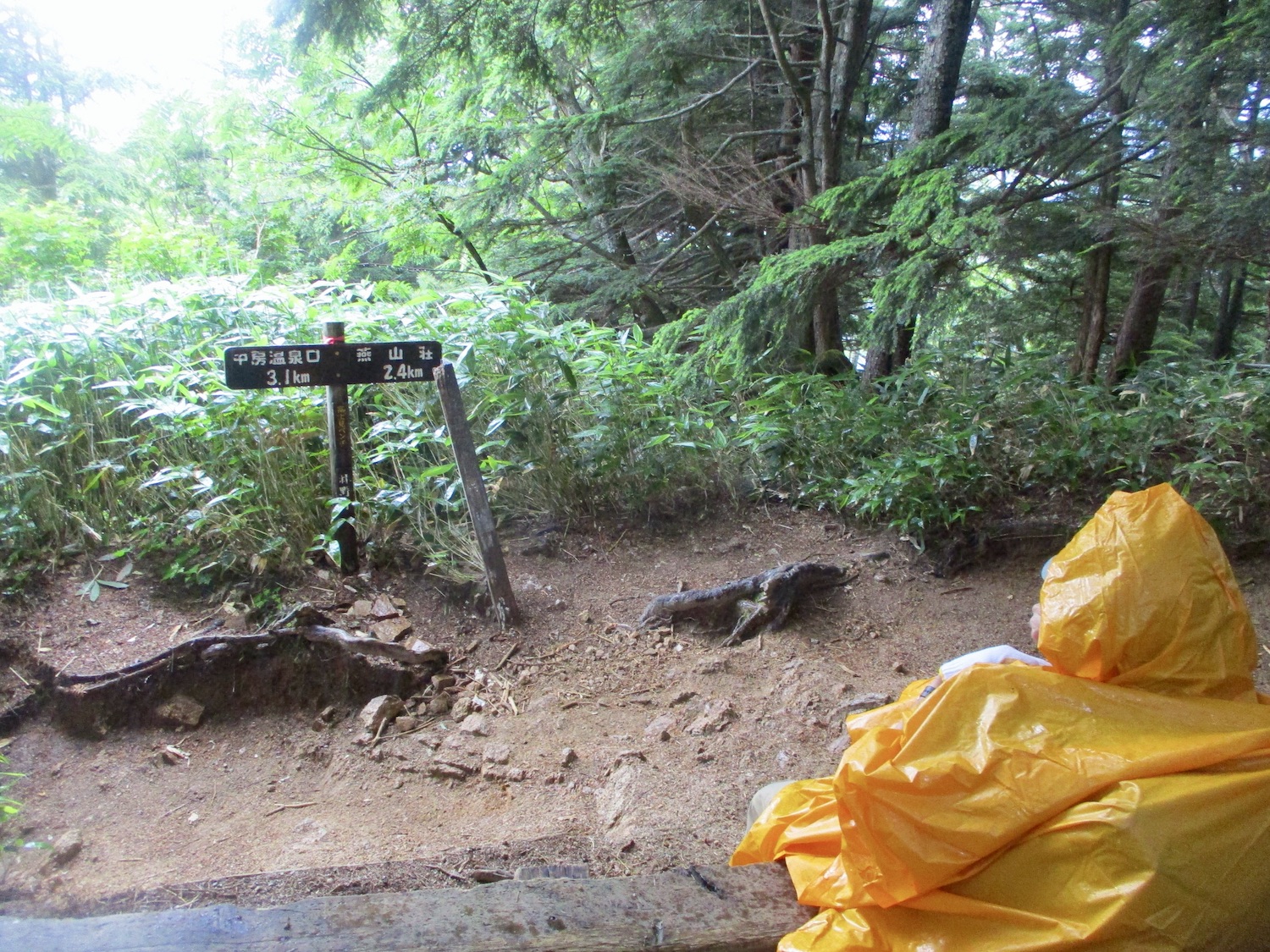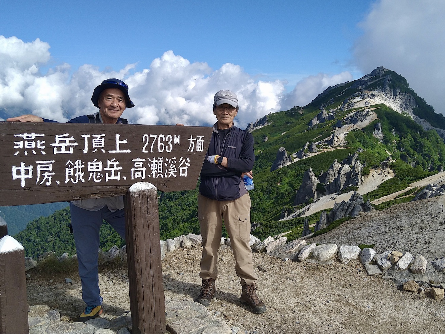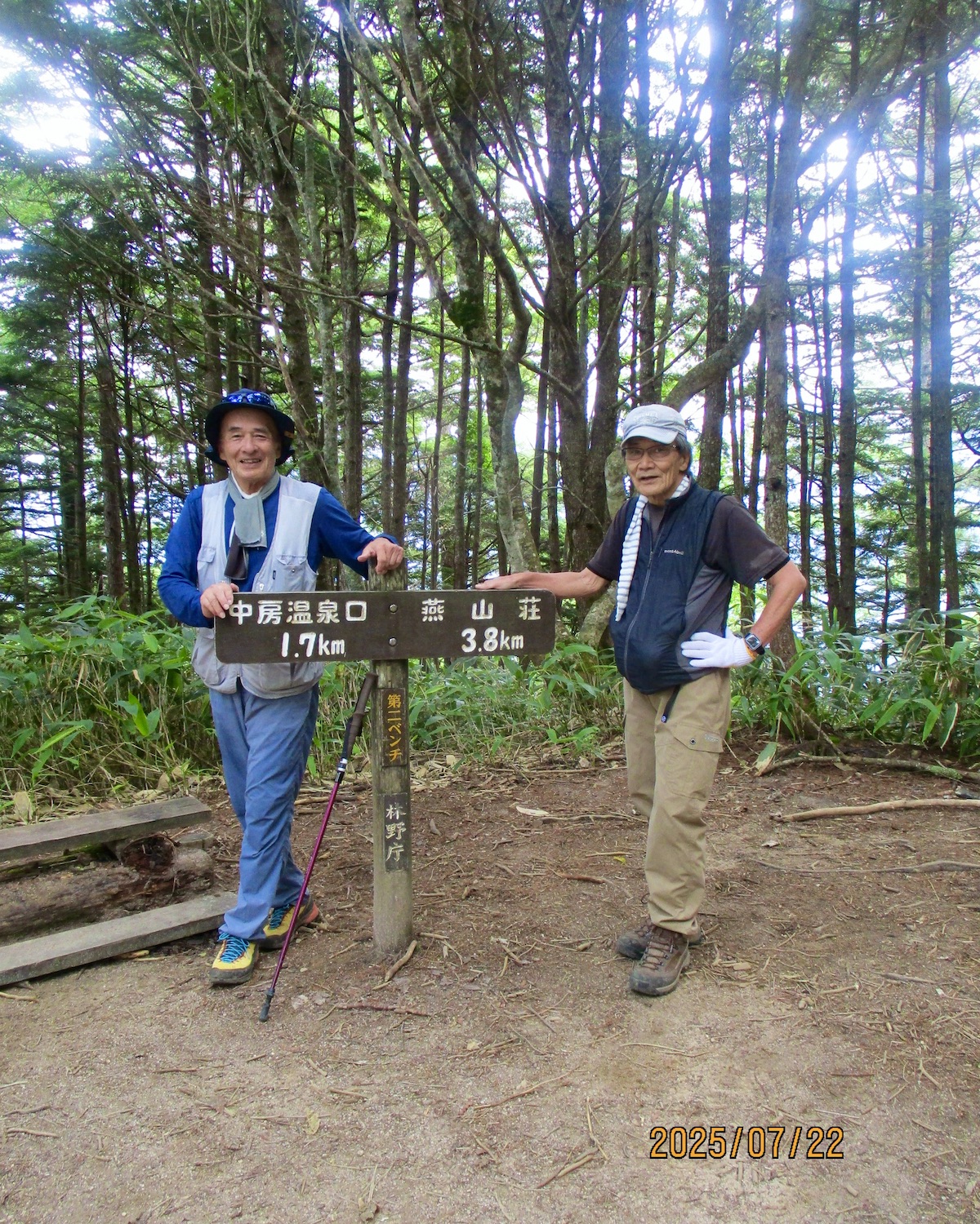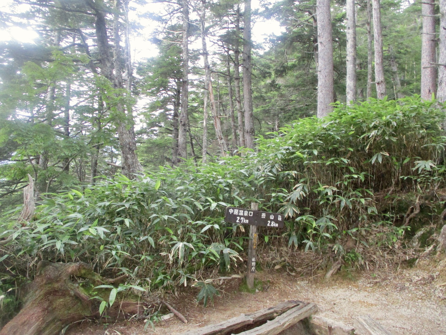 11:00過ぎ穂高駅下車、乗合バス座席も確保、路肩崩落で遅れを心配したが、ほぼ計画通り12:30過ぎ中房温泉登山口より登山開始! ルンルン気分と言いたいところだが、相手は北アルプス三大急登に名を連ねる燕岳合戦尾根、標高差1260mの急登なり。 登山道は明瞭だが、いきなりの急登続き・・。 眺望は、利かない・・。 どの山も同じ、汗水垂らして匍匐前進・・。 だが出発遅れ跳ね返し13:20第一ベンチ定刻到着! 続いて第二ベンチ到着。まだ共に笑顔で顔晴る! そして第3ベンチ。この先雷雨、だが幸い遠雷。 そしてやっとこさ富士見ベンチ。さて笑顔は? 看板に偽りあ〜り、富士山見えないぜ〜。 計画段階から名前で騙された。第一ベンチまで我慢すれば、後は富士見ベンチまで遠くの眺めを楽しみながら歩くものと決めつけてた。それがず〜っと急登、眺望なし・・。 『富士山見せろ! 富士山返せ!』 下調べ不足を棚に上げ恨み節(笑) しかし、遠くは見えずとも絵になる眺めはある。 雨と汗ですっかり濡れて合戦小屋到着! 合戦小屋辺りから眺望が得られるようになった。そして、雨に見舞われてこその景色も楽しめた。 急登に雷雨+疲れで計画より少し遅れ17:00合戦沢の頭(2488m)到着。展望が開け笑顔も復活、あと2km! 見よ、あれが燕岳! 次は、餓鬼岳・唐沢岳方向の眺め。 この後気づかないで良いことに気がついた。スマホがな〜い! 我が最悪持病の落とし物病、忘れ物病・・。 山﨑君には一足先に山小屋へ向かってもらい、小休止した合戦小屋までスマホ探しに戻った。しかし、見つかる筈もなく一人山小屋へ急ぐことになってしまった・・。 時に18:30過ぎ、夕暮れの気配が忍び寄る中、山小屋が目に入った時は流石に一安心、ホッとしたね。もう一顔晴りじゃ〜! 山小屋の灯りを目指し迫る夕闇と先を争った。そして、19:00過ぎタッチの差で夕闇征して『燕山荘』到着! その後もごたごたあったが 『終わりよければすべてよし!』 ビールと夕食でドラマチックな一日を反芻する最強コンビだった。 こんな調子で明日からどうする?