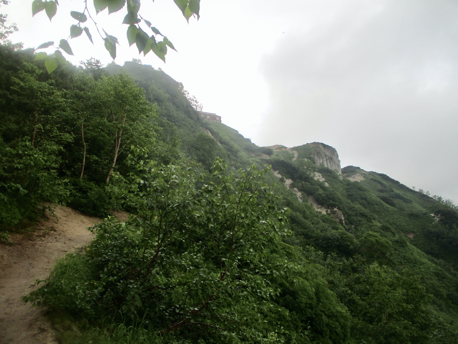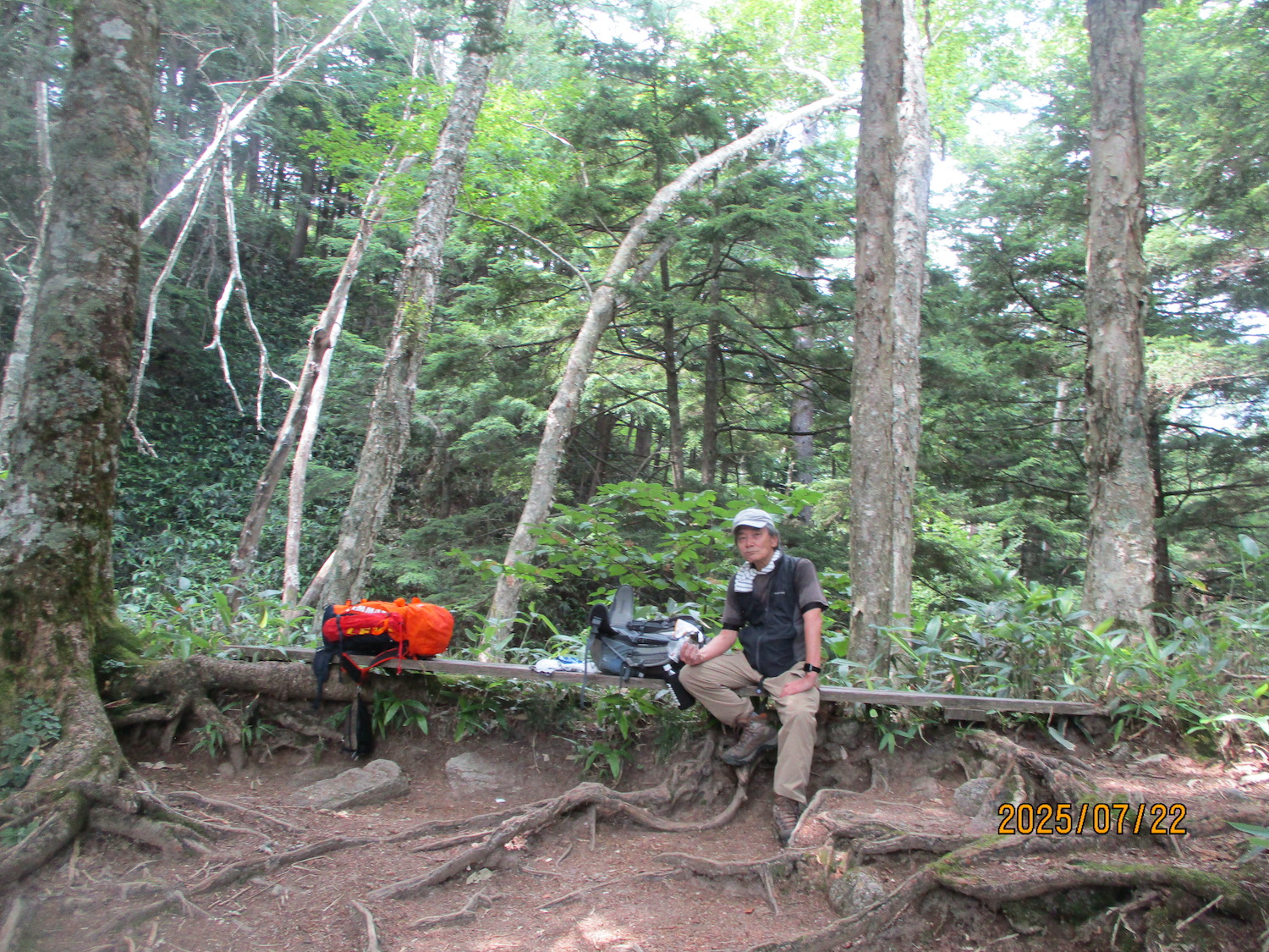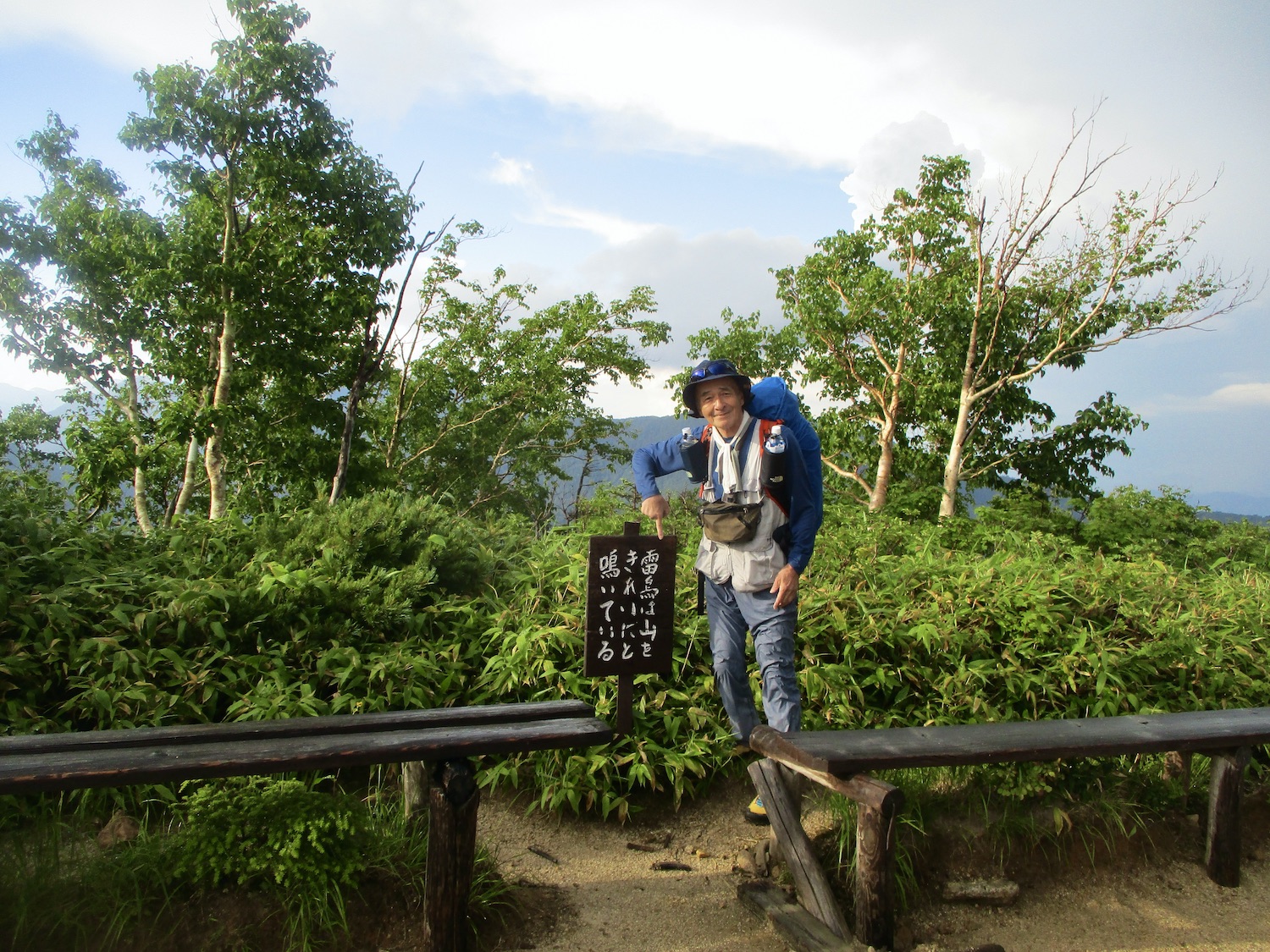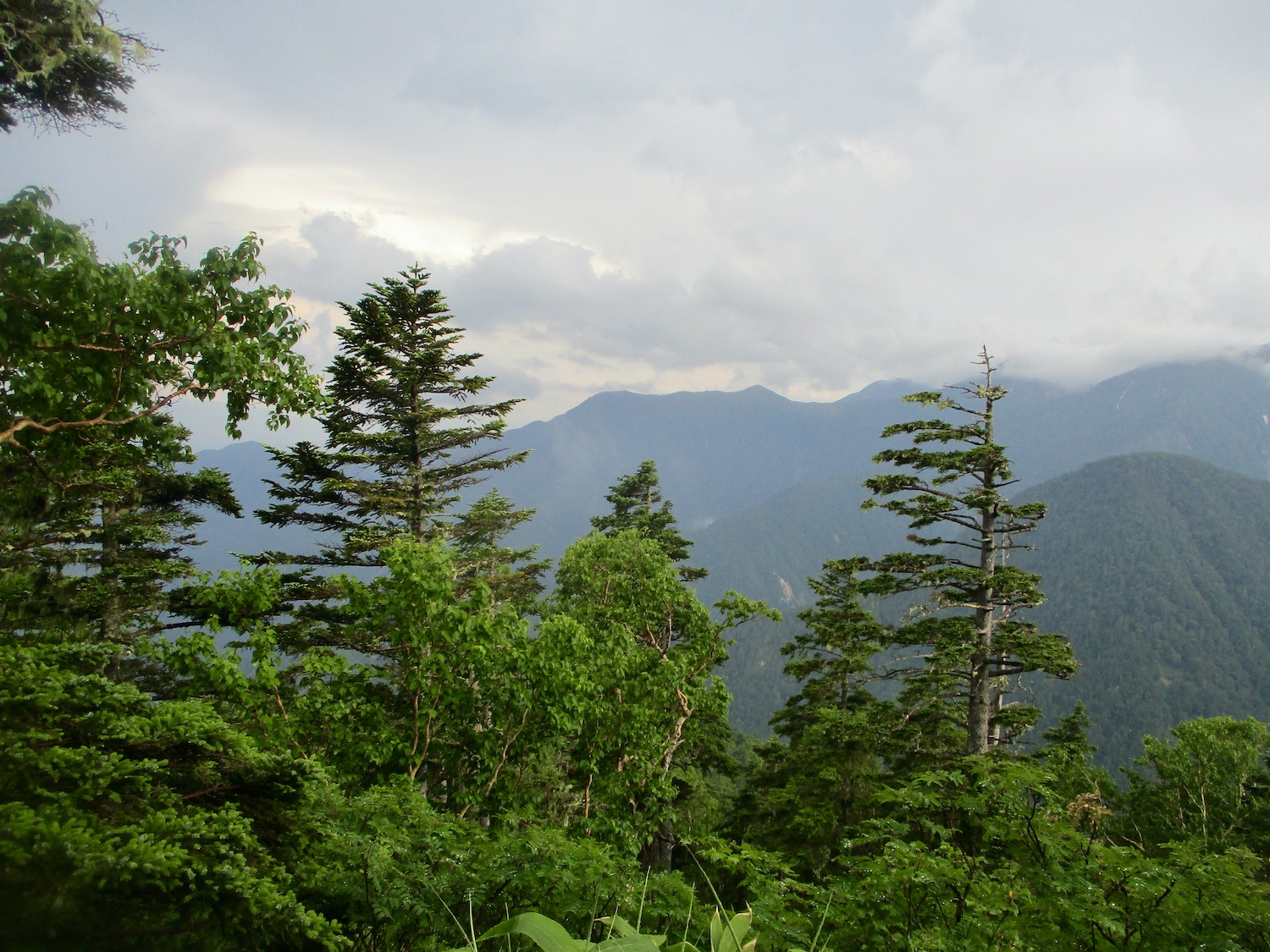 11:00過ぎ穂高駅下車、乗合バス座席も確保、路肩崩落で遅れを心配したが、ほぼ計画通り12:30過ぎ中房温泉登山口より登山開始! ルンルン気分と言いたいところだが、相手は北アルプス三大急登に名を連ねる燕岳合戦尾根、標高差1260mの急登なり。 登山道は明瞭だが、いきなりの急登続き・・。 眺望は、利かない・・。 どの山も同じ、汗水垂らして匍匐前進・・。 だが出発遅れ跳ね返し13:20第一ベンチ定刻到着! 続いて第二ベンチ到着。まだ共に笑顔で顔晴る! そして第3ベンチ。この先雷雨、だが幸い遠雷。 そしてやっとこさ富士見ベンチ。さて笑顔は? 看板に偽りあ〜り、富士山見えないぜ〜。 計画段階から名前で騙された。第一ベンチまで我慢すれば、後は富士見ベンチまで遠くの眺めを楽しみながら歩くものと決めつけてた。それがず〜っと急登、眺望なし・・。 『富士山見せろ! 富士山返せ!』 下調べ不足を棚に上げ恨み節(笑) しかし、遠くは見えずとも絵になる眺めはある。 雨と汗ですっかり濡れて合戦小屋到着! 合戦小屋辺りから眺望が得られるようになった。そして、雨に見舞われてこその景色も楽しめた。 急登に雷雨+疲れで計画より少し遅れ17:00合戦沢の頭(2488m)到着。展望が開け笑顔も復活、あと2km! 見よ、あれが燕岳! 次は、餓鬼岳・唐沢岳方向の眺め。 この後気づかないで良いことに気がついた。スマホがな〜い! 我が最悪持病の落とし物病、忘れ物病・・。 山﨑君には一足先に山小屋へ向かってもらい、小休止した合戦小屋までスマホ探しに戻った。しかし、見つかる筈もなく一人山小屋へ急ぐことになってしまった・・。 時に18:30過ぎ、夕暮れの気配が忍び寄る中、山小屋が目に入った時は流石に一安心、ホッとしたね。もう一顔晴りじゃ〜! 山小屋の灯りを目指し迫る夕闇と先を争った。そして、19:00過ぎタッチの差で夕闇征して『燕山荘』到着! その後もごたごたあったが 『終わりよければすべてよし!』 ビールと夕食でドラマチックな一日を反芻する最強コンビだった。 こんな調子で明日からどうする?