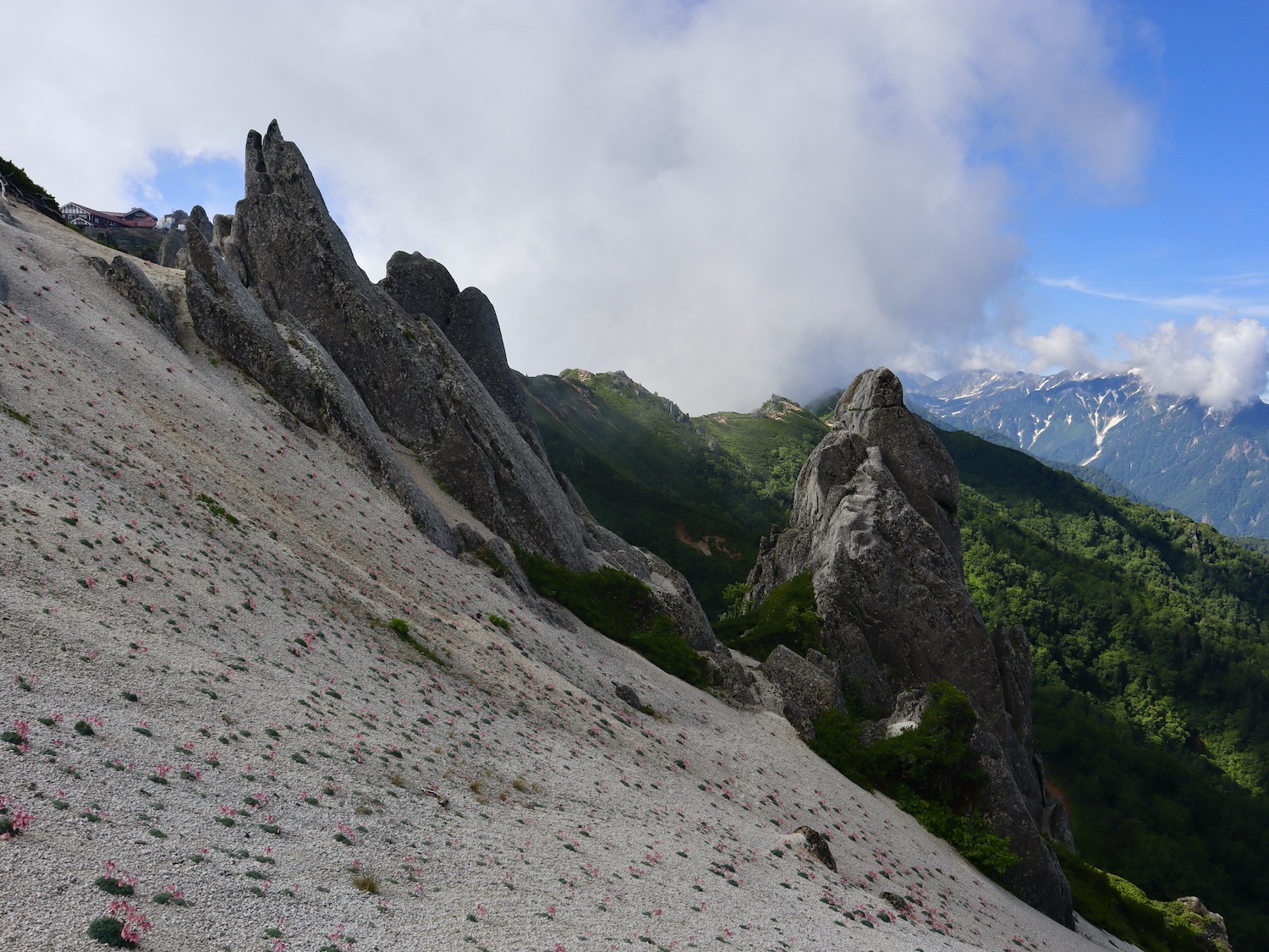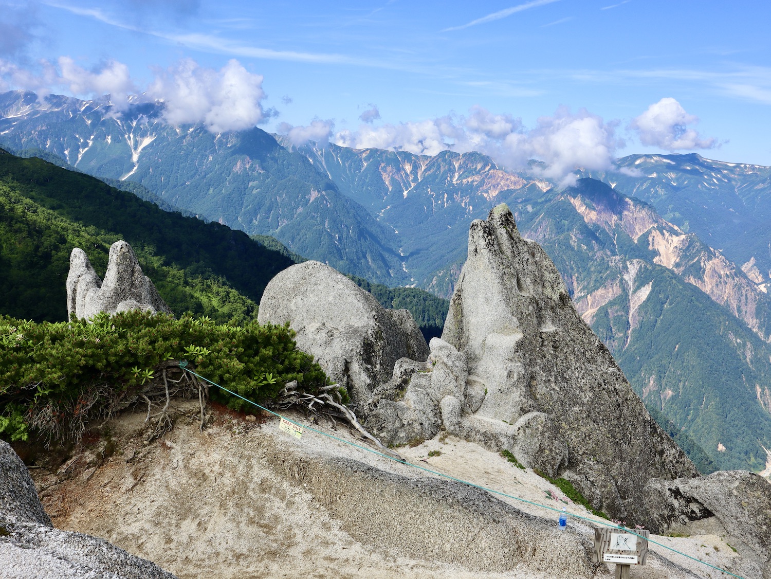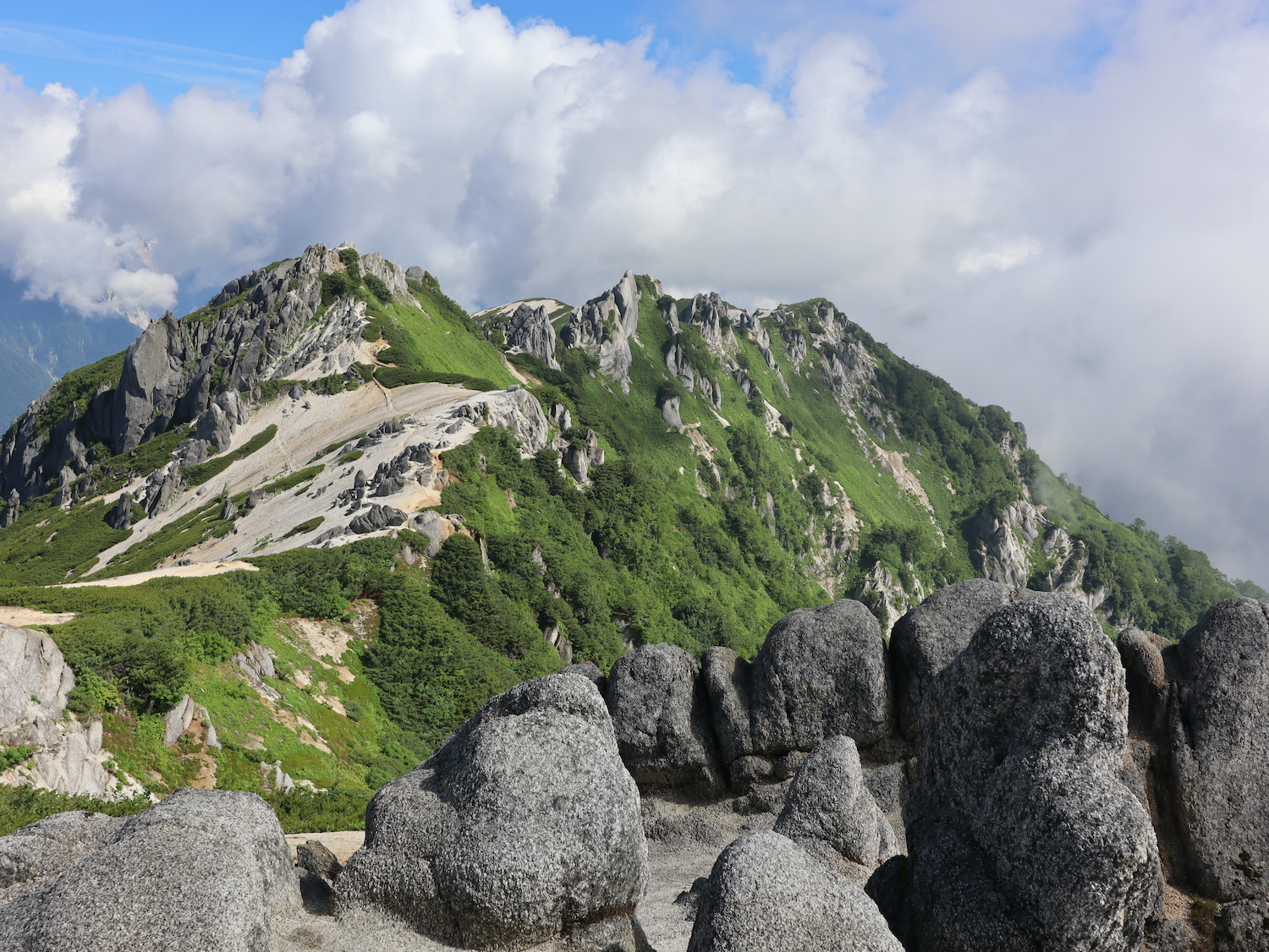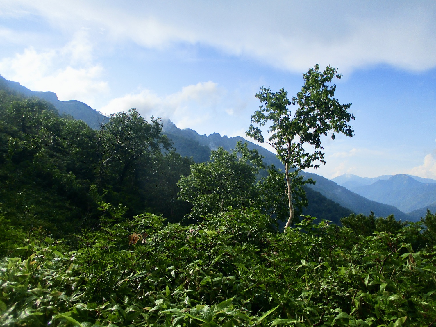 11:00過ぎ穂高駅下車、乗合バス座席も確保、路肩崩落で遅れを心配したが、ほぼ計画通り12:30過ぎ中房温泉登山口より登山開始! ルンルン気分と言いたいところだが、相手は北アルプス三大急登に名を連ねる燕岳合戦尾根、標高差1260mの急登なり。 登山道は明瞭だが、いきなりの急登続き・・。 眺望は、利かない・・。 どの山も同じ、汗水垂らして匍匐前進・・。 だが出発遅れ跳ね返し13:20第一ベンチ定刻到着! 続いて第二ベンチ到着。まだ共に笑顔で顔晴る! そして第3ベンチ。この先雷雨、だが幸い遠雷。 そしてやっとこさ富士見ベンチ。さて笑顔は? 看板に偽りあ〜り、富士山見えないぜ〜。 計画段階から名前で騙された。第一ベンチまで我慢すれば、後は富士見ベンチまで遠くの眺めを楽しみながら歩くものと決めつけてた。それがず〜っと急登、眺望なし・・。 『富士山見せろ! 富士山返せ!』 下調べ不足を棚に上げ恨み節(笑) しかし、遠くは見えずとも絵になる眺めはある。 雨と汗ですっかり濡れて合戦小屋到着! 合戦小屋辺りから眺望が得られるようになった。そして、雨に見舞われてこその景色も楽しめた。 急登に雷雨+疲れで計画より少し遅れ17:00合戦沢の頭(2488m)到着。展望が開け笑顔も復活、あと2km! 見よ、あれが燕岳! 次は、餓鬼岳・唐沢岳方向の眺め。 この後気づかないで良いことに気がついた。スマホがな〜い! 我が最悪持病の落とし物病、忘れ物病・・。 山﨑君には一足先に山小屋へ向かってもらい、小休止した合戦小屋までスマホ探しに戻った。しかし、見つかる筈もなく一人山小屋へ急ぐことになってしまった・・。 時に18:30過ぎ、夕暮れの気配が忍び寄る中、山小屋が目に入った時は流石に一安心、ホッとしたね。もう一顔晴りじゃ〜! 山小屋の灯りを目指し迫る夕闇と先を争った。そして、19:00過ぎタッチの差で夕闇征して『燕山荘』到着! その後もごたごたあったが 『終わりよければすべてよし!』 ビールと夕食でドラマチックな一日を反芻する最強コンビだった。 こんな調子で明日からどうする?