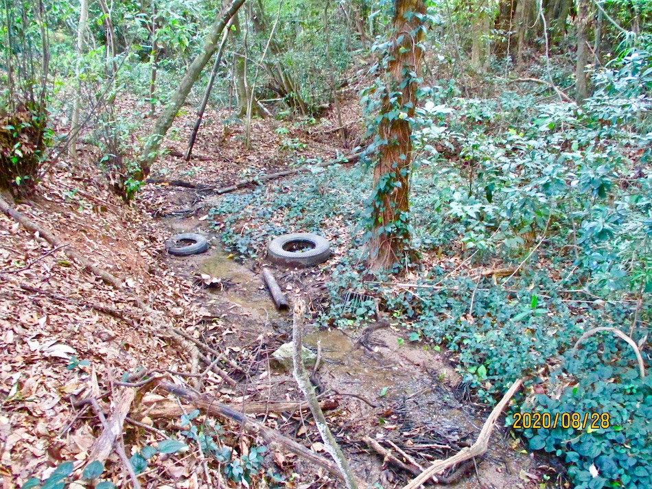 先週 8月 年間累計 ラ ン 36㎞ 135㎞ 1293㎞ 自転車 0㎞ 0㎞ 69㎞ 先週も相変わらずのマイペース。目覚めの時は来るのか? 先週記事にしたが、わが町は蛍舞う町である。木立の中から見ると道路脇に小さな水たまりがあるだけ。それとわかる川など無い。 しかし、奥へ歩くと薄っすらと流れが出現。川と言える代物でないが、地面の隙間から湧き出て所々流れをなしている。 連日の猛暑の中、そんな流れがあるとは思いもしなかった。しかも、ホタル生息には、①餌になるカワニナ ②水温25℃を超えない清流 が欠かせないそうだ。 まさに『奇跡の』蛍舞う町だと痛感したが、そんな中、タイアなどの投棄物に言いようのない寂しさを覚えた。 [600(ペース)、535(ペース)等の表記は、 それぞれ1㎞6分00秒、5分35秒で走ること] 今週のムッサン 5日(土) 台風10号の予報を考慮し、6・7日は休足と決めた。で、今朝も一番に朝ラン出動。 上智5kmJOG その後は、いつもにも増して気が乗らない。専ら台風情報の収集をした。気象庁の記者会見数回、台風特別警報の発令は動かないか!? 明朝の状況次第で避難も選択肢になりそうだ・・。 4日(金) 朝一で上智5kmJOG出動で良し。 しかし、ランなんぞより気掛かりは台風10号。予報では915hPaまで発達する見込み。明日は友人と雷山登山予定だったが、急遽中止に決定。予報の外れることを祈るのみ! 3日(木) 昨夜の台風9号の強風、ちょっとビビった。 しか〜し、今朝は、若干雨がぱらついたものの、朝ラン出動支障なし。だがコース途中所々で道路が木の葉に覆い尽くされ、銀杏の実が散乱している所もあった。 上智5kmJOG しかし、遥かに強大な勢力の台風10号が既に迫りつつある。何とかそれてほしいものだが果たして? 2日(水) 昨日驚いたのはちと早すぎた? 今朝の気温30.2℃!!! いい加減にしてくれ!、、って誰に怒鳴ればいいのか!? しかし、今日は朝ラン出動していい感じ。しか〜し、走り始めた途端、雨、稲光、そして遠雷・・。びびり・バビディ・ブー、、、豆腐の意志なるぞ、からかうのはやめてもらおう!(笑)で、結局6km走って終了。 大した雨にならず、あいさつ活動の頃には晴天。今日の予報は晴後雨だぜ、天気予報は守ってもらいたい。(笑) 台風9号の次は、近年にない勢力の台風10号・・。気象神社にお参りしたい気分だ。 1日(火) 朝いつも通り4時前起床。疲労感が強くふと温度計に目を遣って驚いた。なんと30.1℃!! 走る意欲一気に低下・・。完全休足にして雑用を片付けた。 31日(月) 昨日の久しぶりの10kmで気持ちが弛んだ・・。今日はまたしてもアップアップの上智5kmJOG。しか〜し、区役所訪ね、今月の用務全て完了でよ〜し! 区役所までマスクしての往復6kmは耐え難い暑さで、熱中症の心配さえした。汗べったりマスクはさすがに一日限定使い捨て・・。 30日(日) やったぜぃ! と、はしゃぐほどのことか(怒)って話だが、やっとの思いで10km走った。数ヶ月振りの椿事?快挙? ウォーキング並のペースだが、走り抜いた事実が有り難い。 今週は台風9号から目が離せない週になりそうだ。