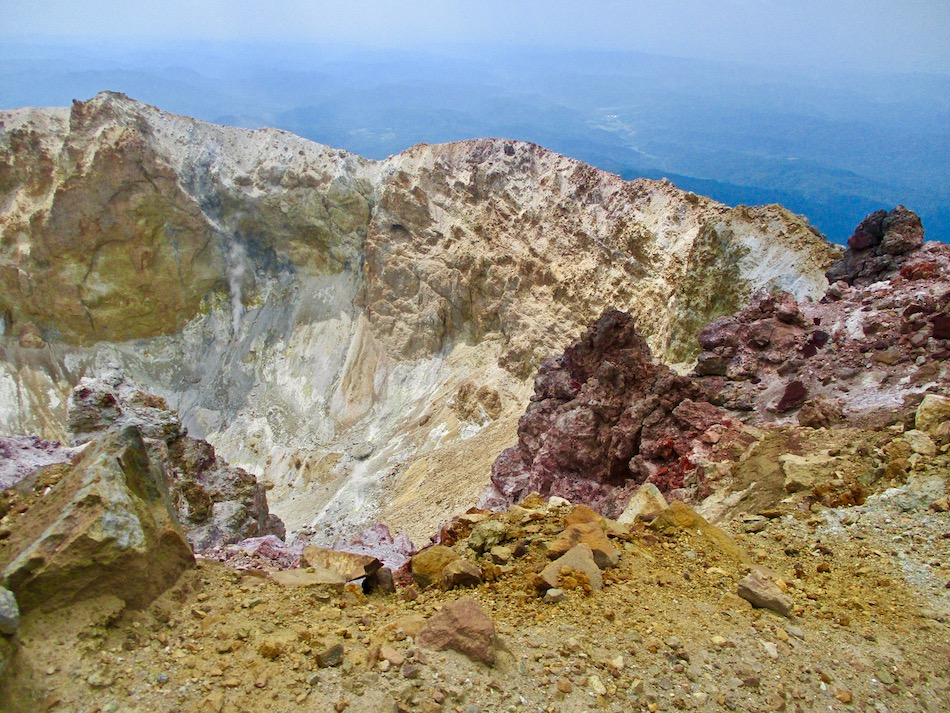 が実質的に北海道登山最終日である。 今日も桂田の朝食で一日は始まった。 食事後、車を走らせること約2時間、雌阿寒温泉側登山口 に着いたが、その途中で奇跡が起こった。 10年前自転車で日本一周した際、美幌峠から網走へ走り 下りた白樺並木の道を横切ったのだ。一瞬のことだが、直ぐ に分かった。まさに奇跡!懐かしさに胸が熱くなった。しか 〜し、感動の余り写真を撮り忘れたのは、、、残念・・。 閑話休題、雌阿寒岳登山のことである。登山口に着くや即 高い松の樹林に足を踏み入れる。スタート直後から結構な傾 斜の上りが続く。 斜里岳・羅臼岳登山で筋肉疲労気味、かつ、足の爪を傷め た身には辛い。昨日に続いてカメラ持ち腐れ。 しかし、汗でグショグショになり登る中にハイマツが徐々 に低くなり、見晴らしが良くなってきた。カメラの出番到来 である! 大きな沢地を渡った4合目あたりから傾斜は更に急になり 苦戦を強いられたが、松の丈は更に低くなって、素晴らしい 眺望に疲れも吹き飛ぶ。 神秘的な色合いのオンネトーが見えてくると、もう疲れな ど忘れて、標高を稼ぐとともに変わる景色に夢中になった。 次の写真は9合目手前あたりか? 既にマツは姿を消し高 山植物が所々、あとは岩があるばかりである。稜線も近い。 稜線に出てまもなく、別世界の光景が待ち受けていた。噴 気孔からの音が響き、火口壁に囲まれた底には赤沼がある。 底知れない爆発的なエネルギーを感じる。ふと、御嶽山噴火 の記憶が蘇った。 火口沿いの稜線を、時計回りに更に進む。 北に遠く阿寒湖と雄阿寒岳が見える。 そして、標高1499m 雌阿寒岳頂上。 頂上の先には更に道が続き登山者の姿も見える。残念なが ら、我々はいま来た道を引き返す。 引き返す前に、火口壁際から火口を覗いた。そこには赤沼 のある火口丘から一段高い火口原が広がり、目玉のように青 沼がある。なんとも不思議な光景だ。目玉の先には噴煙が上 がり、その奥には阿寒富士が鎮座していた。 後ろ髪を引かれる思いを振り払い、別世界を後にした。 本日のルート・距離 雌阿寒岳登山:7km 北海道登山旅。斜里岳、羅臼岳、雌阿寒岳の三山登頂、美 幌峠〜網走の白樺並木の道との10年ぶりの遭遇、感動満載 大満足の5日間だった。 しかし、何しろ自然豊かなでっかいどう、脚力不足もあり その魅力を味わい尽くしたとは言い難い。体を鍛え直し、い つの日か北海道に再チャレンジしたいもの。 最後に、この5日間を共有した友に心から感謝したい。全 ては友の存在あってこそ実現したことだから。 |
