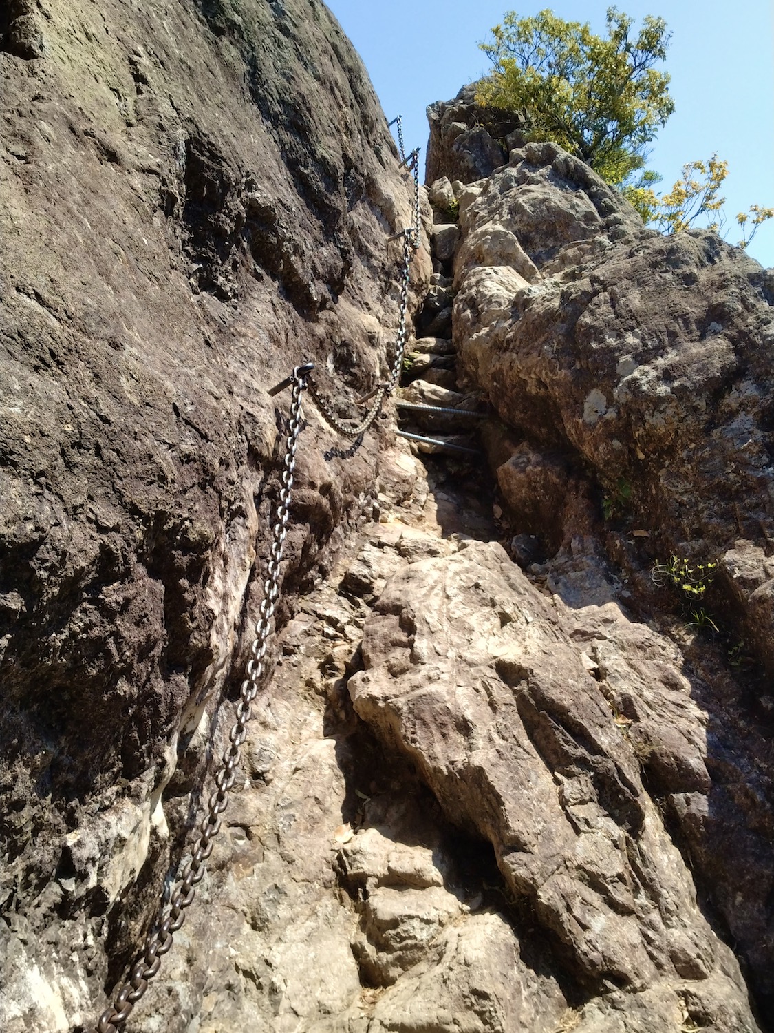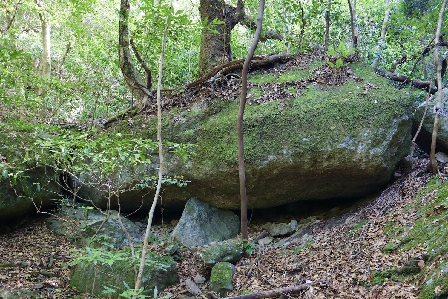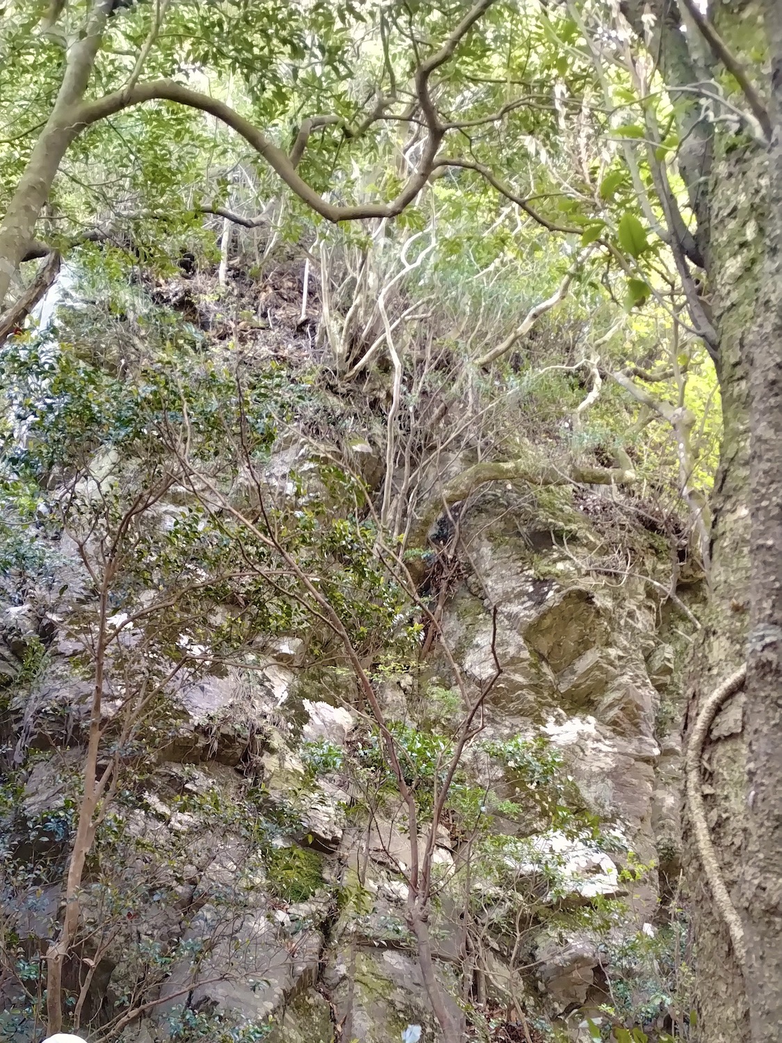 見返り峠で小休止の後、雄岩に寄る予定を変更して雌岩に向かった。セーラさん(笑)のせいでかなり遅れが出たからだ。なにしろ最強低山と称される黒髪山が待ち受ける、少しでも時間を捻出したかった。 雌岩は呆気ないほど近かったが、眺めは素晴らしい! 足がすくんで崖っぷちから退がって写真もう1枚。高所は苦手です(汗) いよいよ本丸黒髪山攻め開始。しかし、少し気が抜ける思い。 セーラちゃんの酷道と比べたら正に国道! まるでハイキング? 出会う登山者も断然多いし、道に迷う心配ほぼほぼゼロ。ゆとり出て回り道、西光密寺に立ち寄ったのは余計だったかな。 しか〜し、相手は最強低山、油断禁物、なめてはならない。山頂手前は断崖あり、ロープあり、鎖あり、梯子あり、何でもあり、一瞬も気が抜けない。登山に集中の余り写真を撮り忘れたのは残念・・。 そんな難関の先、山頂直下最後の最後の鎖場の写真が次。 ここを登り切ると 山並みは更に続き、有田ダムのダム湖に有田市街も望める。 次は雌岩でも見た伊万里、武雄側の眺望。 次の写真の尾根を進んで反対側に降りるとゴール竜門ダム! その尾根の上をヘリコプターがずっとホバリング、滑落事故? ちょっと心配、帰路に不安を抱かせます・・。 ここは早めに下山開始と鎖場へ向かうと、遠く青螺山と思しき山が見えた。さらば美少女!(笑) 黒髪山からは蛇焼山、後の平経由で竜門ダム駐車場へ降りた。登山道はわかり易く下り基調で楽勝。そこここにある巨岩や、それを或いは取り込み或いは割って逞しく根を張り伸びる樹々を楽しみながら歩くのは心身が清められ生き返る思いがした。 上のマップでは未だ山中にいて下山してないが多分GPS操作ミス。間違いなく無事下山しましたのでご心配なく(笑) 追記 さて、最強・最恐低山とされる黒髪山、確かに山頂手前の岩場は滑落の恐れもあり手強い。しかし、個人的には可愛い名前の青螺山こそ最恐だと感じる。藤田氏と一緒で何事もなかったが、一人だったら道迷いや滑落の恐れもある。だが又しか〜し、最恐の青螺山経由で絶景の黒髪山登山してこそ最高の感動が得られるとも思います! ただし初挑戦は単独でなく経験者と一緒されるよう強くお勧めします。
