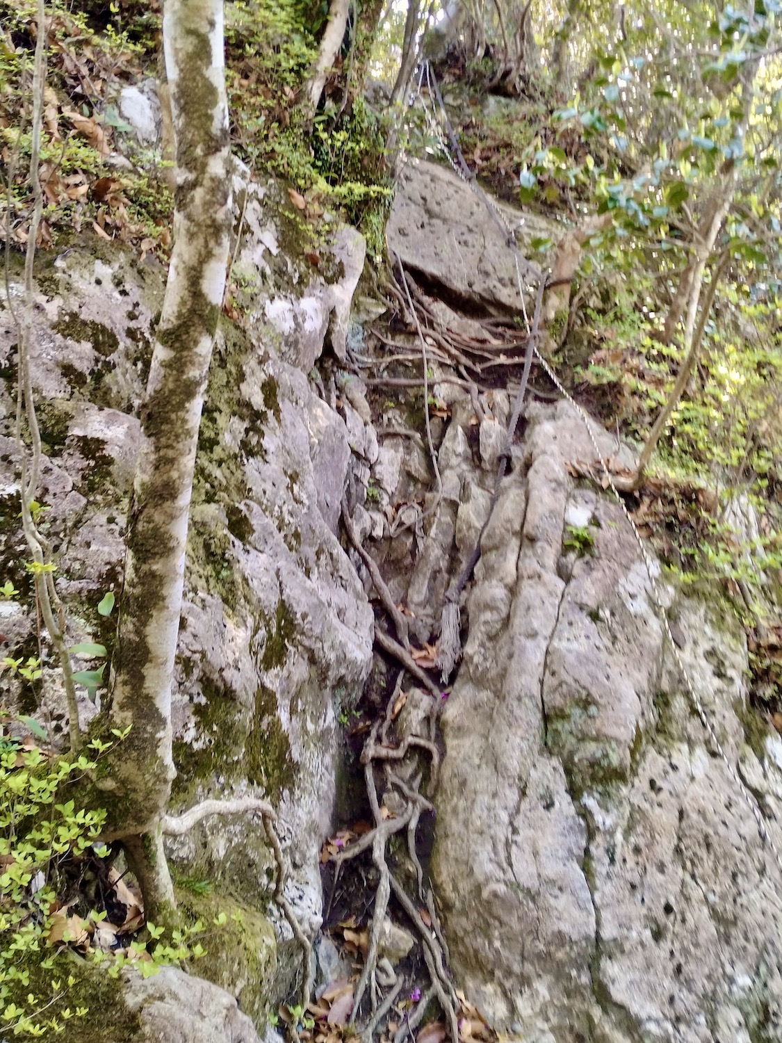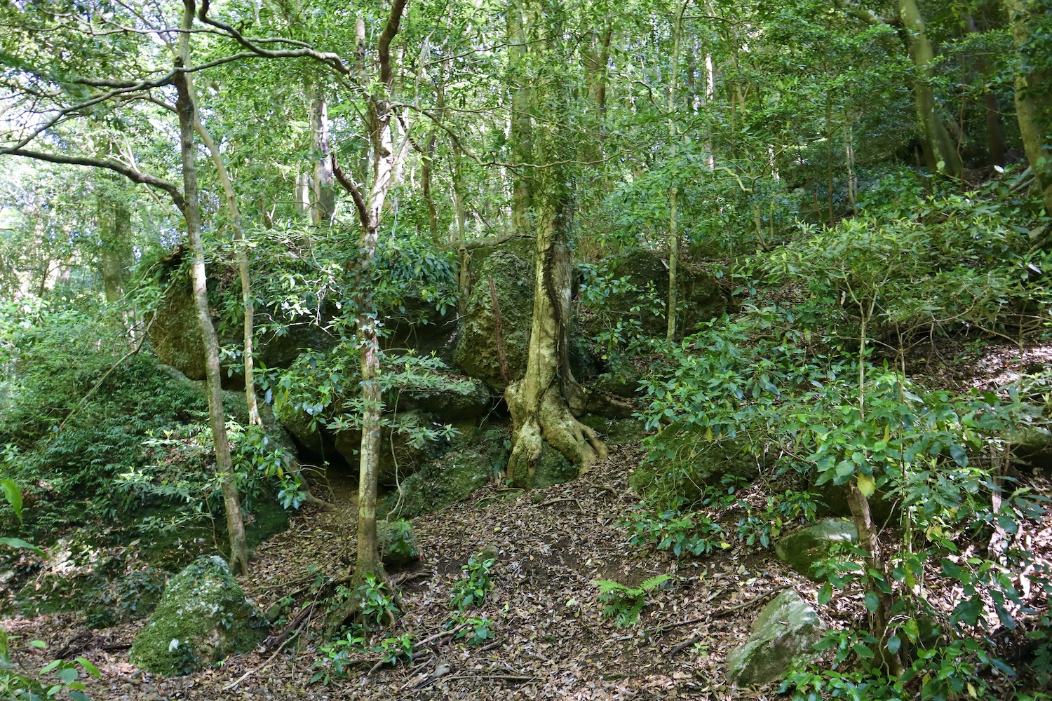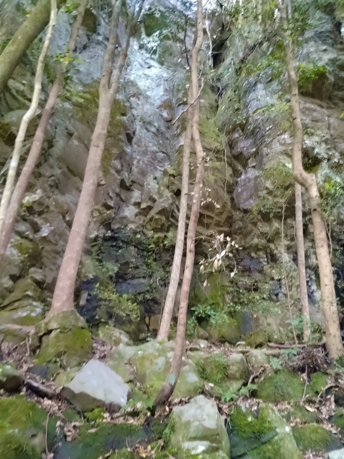 見返り峠で小休止の後、雄岩に寄る予定を変更して雌岩に向かった。セーラさん(笑)のせいでかなり遅れが出たからだ。なにしろ最強低山と称される黒髪山が待ち受ける、少しでも時間を捻出したかった。 雌岩は呆気ないほど近かったが、眺めは素晴らしい! 足がすくんで崖っぷちから退がって写真もう1枚。高所は苦手です(汗) いよいよ本丸黒髪山攻め開始。しかし、少し気が抜ける思い。 セーラちゃんの酷道と比べたら正に国道! まるでハイキング? 出会う登山者も断然多いし、道に迷う心配ほぼほぼゼロ。ゆとり出て回り道、西光密寺に立ち寄ったのは余計だったかな。 しか〜し、相手は最強低山、油断禁物、なめてはならない。山頂手前は断崖あり、ロープあり、鎖あり、梯子あり、何でもあり、一瞬も気が抜けない。登山に集中の余り写真を撮り忘れたのは残念・・。 そんな難関の先、山頂直下最後の最後の鎖場の写真が次。 ここを登り切ると 山並みは更に続き、有田ダムのダム湖に有田市街も望める。 次は雌岩でも見た伊万里、武雄側の眺望。 次の写真の尾根を進んで反対側に降りるとゴール竜門ダム! その尾根の上をヘリコプターがずっとホバリング、滑落事故? ちょっと心配、帰路に不安を抱かせます・・。 ここは早めに下山開始と鎖場へ向かうと、遠く青螺山と思しき山が見えた。さらば美少女!(笑) 黒髪山からは蛇焼山、後の平経由で竜門ダム駐車場へ降りた。登山道はわかり易く下り基調で楽勝。そこここにある巨岩や、それを或いは取り込み或いは割って逞しく根を張り伸びる樹々を楽しみながら歩くのは心身が清められ生き返る思いがした。 上のマップでは未だ山中にいて下山してないが多分GPS操作ミス。間違いなく無事下山しましたのでご心配なく(笑) 追記 さて、最強・最恐低山とされる黒髪山、確かに山頂手前の岩場は滑落の恐れもあり手強い。しかし、個人的には可愛い名前の青螺山こそ最恐だと感じる。藤田氏と一緒で何事もなかったが、一人だったら道迷いや滑落の恐れもある。だが又しか〜し、最恐の青螺山経由で絶景の黒髪山登山してこそ最高の感動が得られるとも思います! ただし初挑戦は単独でなく経験者と一緒されるよう強くお勧めします。