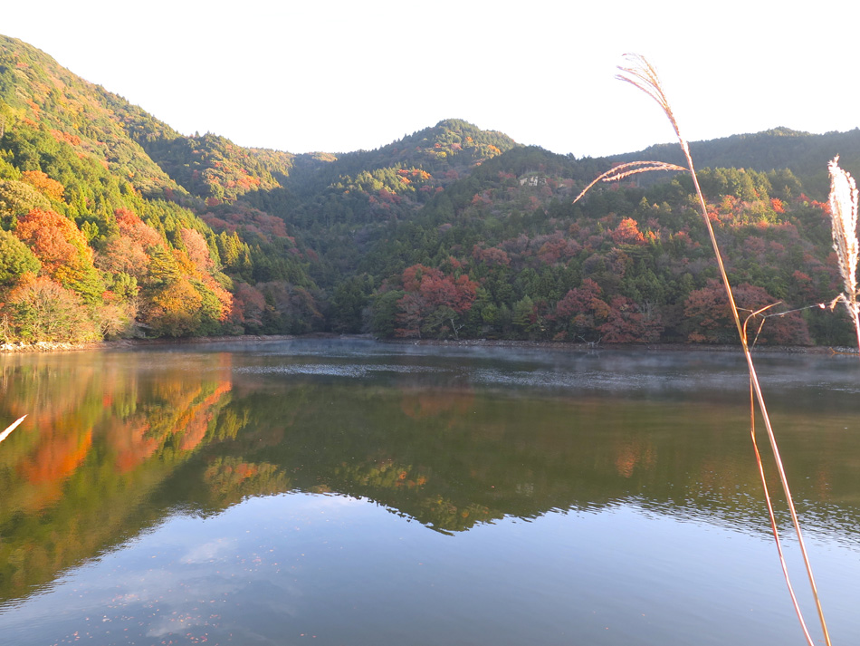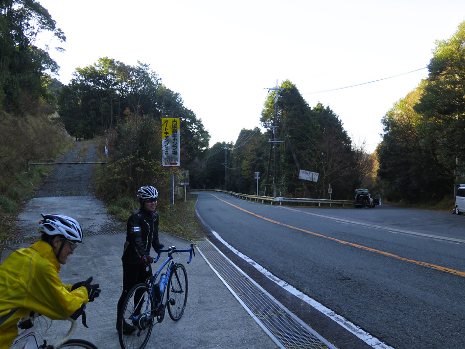 ば良いのかもわからない。それ以前に自転車の乗り方も覚束 ない。下り坂では恐怖感さえ・・。 そんな状況で、こぢんまりのんびり走りたかったのだがこ んな時に限って、、、糸島から馳せ参じた Piccolino氏、走 る気満々くぼちゃん、参加表明一番乗りuruman氏、極め付 けは北九州から参加のヒロさん! こりゃ一緒するのは大変でおますわ! しかし、天気は最高。幾度となく走り見慣れた景色もハウ ス新鮮組。 紅葉は全く当てにしてなかったが、曲淵ダムで錦絵ワール ドにご対面!! 冷え込みで湖面には靄が漂う。 この後三瀬峠に登ったが悪戦苦闘。アウター縛りで上るな ど夢のまた夢・・。寒い中待ってくれる仲間の有り難さ! しか〜し、我が貧脚はここで売り切れご免。 ピキピキはぜる太腿をだましだまし走ったが、折れそうな 心を癒やしてくれたのは素晴らしい景色だった。 雲海に浮かぶ雲仙普賢岳、手を伸ばせば届きそう! やっとの思いで辿り着いた東脊振ループ橋。顔で笑って心 で泣く、これが男の生きる道。な〜んちゃって。(笑) にしても、このループ橋からの眺め最高! この眺めお初 メンバー三人もいたのは嬉しい誤算。 『気に入ってくれたかな?』 笑っていい友!?? しか〜し、貧脚ではツーリングは心から楽しめない。精々 筋肉ツーリング・・。喜んだのは我が愛車だけ! 参加の皆さん、次回はもうちょっと顔晴りまっする! 長い目で末永くよ・ろ・し・く!