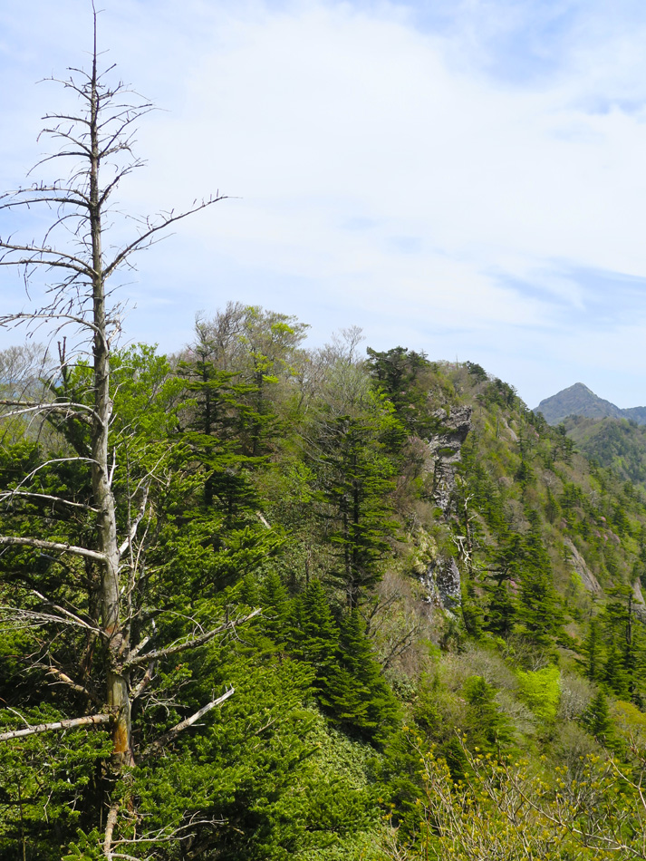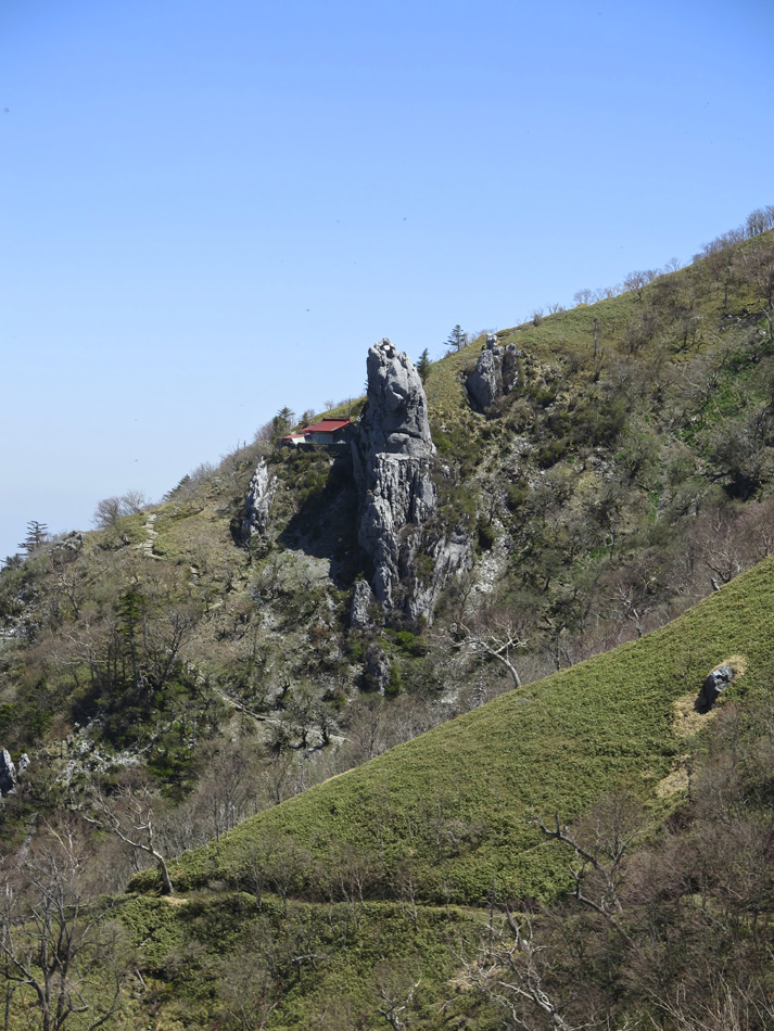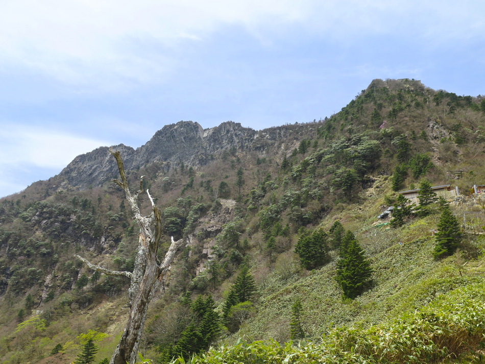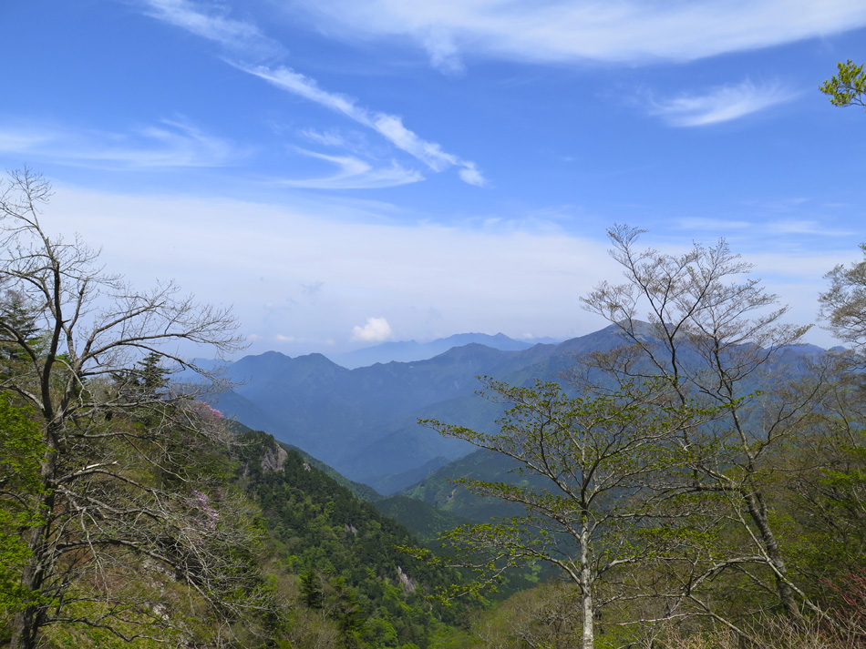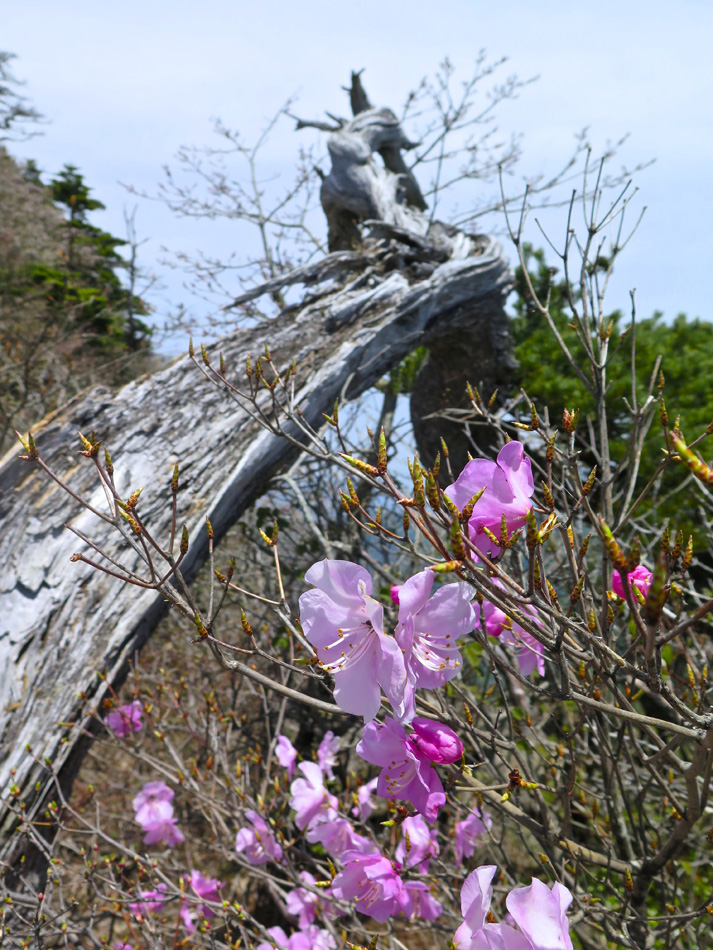 今日も羽田野君の運転で石鎚山を目指す。 ロープウェイで山麓下谷駅から山頂成就駅へ。駅名を聞い て山頂到達が保証された気分だね。更にリフトに乗り継ぐと 展望台。石鎚山が少し近付いた感じだ、、。 今日も羽田野君とはここでお別れだ。本当に何から何まで ありがとう! しばらく歩くと、石鎚神社 中宮 成就社に到着。石鎚山 がご神体であるようだ。 今日はバッテリーの残量が少なく、超節約モードの写真撮 影。成就社の写真も上の一枚のみ・・。 成就社を過ぎるといよいよ登山開始! 少し進んだところ で修験者に出会った。早朝3時登り始めて、下山途中とのこ と! しかも、一本歯の下駄で!! 我々の登山の無事を祈 って法螺貝一吹き。あたりに響き渡った。あなかしこ! 重い荷物のせいか、足の裏が熱く痛い・・。ランを休む代 わりに、負荷を掛けようと荷物を増やしたのだ。汗をダラダ ラ流しながらの苦しい歩きだった。 しか〜し、終わりのない道はない。いよいよ石鎚山が眼前 に聳え立つところまで辿り着いた。 残念ながらここから山頂の往復区間の歩行データが残って いない。間違ってGPSを一時停止したようだ・・。 登った証拠は山頂での写真。 石鎚山頂と周辺の眺め、しか〜し、ここが終わりではない のだ。糸のように細い尾根が次の山頂へと続いている! 鎖にしがみついて岩場を降りていた女性が足が届かないと 泣き出しそうな声を上げている・・。私も恐る恐る歩いたっ て感じだな。何しろ高所が苦手で・・。 アケボノツツジかな? 美しい花には癒やされたが、その 先は断崖だからね・・。・・。(汗) それにしても木内君は健脚だ! 登山では常に一人遙か先 を歩いていた。脚力・体力をつけるにはランだけでなく山歩 きにも積極的に挑みたいと思わされた。 やっとの思いで天狗岳。緊張で笑顔が強張ってる? 天狗岳側から望んだ石鎚山。険しい道にも幾分慣れたが、 引き返すのも大変でございましたよ。 アケボノツツジもそうだが、山頂近くには桜らしき花も咲 いていた。 標高が高く花の時期も遅いのだろう。葉っぱも同じ。緑は 麓から山頂へと登ってくるようだ。 花の背景に石鎚山! 絵になる景色だね〜〜! そんな石鎚山も徐々に遠く小さくなっていく・・。 『さらば! 石鎚山!』 と、少し感傷的な気分も出てきた頃、『来た〜〜〜!』 雪! 雪! 残雪だ! 表面の汚れを拭って口に入れた。 じゃりじゃりした舌触りで粗めのかき氷って感じ。 仕上げは氷で顔パック。ひんやり生き返ったね! やがて石鎚登山のゴール、石鎚スカイライン終点の土小屋 が見えてきた。次の写真の尖った山の下に見える白、土小屋 の駐車場である。 羽田野君が車を回送して待機してくれているのだ。 再び6人全員集合! 羽田野号で帰路についた。 車窓からは汗を残し足跡を残してきた石鎚山が見える。 場所により様々な山容を見せてくれた石鎚山だった。 松山空港への途中、道後温泉に立ち寄り汗と一緒に疲れも 流したのは言うまでもない。何度目の温泉・・?! かくして楽しい3日間の旅は終わった。しかし、楽しい思 い出は消えないね! 3日間の総てに感謝! そして、石鎚の雪より嬉しい奇跡が福岡で待っていた。 電話もメールも連絡一つしてなかったのだが、空港で女房 と娘が出迎えてくれた! 改めて総てに感謝!!