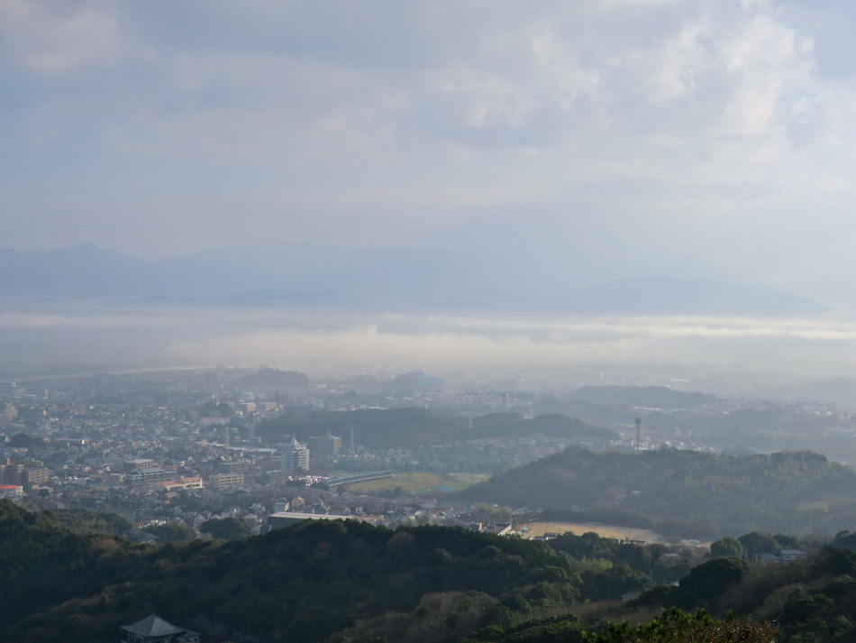 先週 12月 年間累計 ラ ン 93㎞ 452㎞ 3277㎞ 自転車 18㎞ 269㎞ 997㎞ 平成28年の年間走行距離3277㎞は年間最長記録。 12月の月間走行距離452㎞は月間最長記録。何とか形 は整えたが、まさに形のみ、内容には不満ばかりが残った。 大濠公園 平成29年1月1日 午前7時47分 昨年5月に腰を痛め、以後丸々三ヶ月以上腰痛に苦しめら れた。筋膜リリースにより症状は劇的に改善し、一時は出走 を断念した福岡マラソンにも出場したが、ワースト2の記録 に終わった。 基本的に行き当たりばったりの練習が災いの元であると思 うが、今更改善するのは難しい気がする・・。 年齢を考慮すれば、今年あたりがサブ4挑戦に踏ん切りを つける潮時と思い定めた。 筋力養成(30分階段走)、スピード養成(インターバル 走とタイムトライアル)、スタミナ養成(長距離走)により 目標達成を目指す決意である。 [600(ペース)、535(ペース)等の表記は、それぞれ 1㎞を6分00秒、5分35秒(のペース)で走ることを言います] 今年のムッサン 7日 9日の伊万里前に最後の活入れ練。インターバル走 1㎞×7本。脚に違和感あり、思い切って走れなかっ た。スピードが上がらない中、7本のタイムを揃え られたのは良かった。 大濠1㎞ ×7 interval :av.629 10㎞ (504→504→504→511→507→505→504 : av.506) 9日は2時間切りを最低目標としよう。 6日 昨日の 10㎞TTは翌日に疲れを持ち越した? 心拍 数やや高め。疲労を抜くためにもケアが大事。 午前中体のケアと、マリナタウンの買い物。肝心な 自分のエンジン強化の努力は不足だが、ウェア等へ の投資は惜しまない・・。まだまだ覚悟ができてな いね・・。夕方、30分鍛錬JOGに挑んだ。 30分JOG(28):828 3.5㎞ 明日はもう一顔晴り! 5日 昨日の恥ずかしラン?の振り替えで10㎞TT実施。 新春早々縁起が良いわいな! 二日連続の記録更新 となった。 腰痛発症後の限定付きだが、10㎞走の最速ペース 更新! 走り始めは脚に痛みを感じて不安だった、 結果オーライ。気分良し! 大濠10㎞TT+2:527(530→524)全体平均:535 昨年末時点10㎞TTベスト:540(542→538) 4日 9日の伊万里で着用を考慮しているタイツで走る。 颯爽と10㎞TTに挑んだが、何と〜〜、腰のゴムが ゆるいせいかずり落ちて走れない・・。僅か2㎞で ギブアップ、レース本番でなく幸いだった。 夕刻新年会のため、30分鍛錬JOGで終了。準休足 日とした。その決断が幸いしたか30分JOG自己新 30分JOG(27):817 3.6㎞(自己ベスト) 3日 最近の疲労感を考慮しゆったりJOGを選択した。 向かった先は油山。年末29日の走りが良くない。 少しでも良いイメージを持って伊万里に臨みたい。 標高260mまでの上りは辛いが、報酬は準備され ていた。『天空の丘』の眺め! 次の写真右側は大野城・春日・四王寺山方向か 雲それとも朝靄? 白い雲海で博多湾・玄界灘と福 岡市街地との境も定かでない。しばし見とれた。 油山18㎞JOG:637(633→704→616) 気持ち良いジョギングだった! 今夜は武蔵台27期生との新年会! 2日 相変わらず疲れ気味のため、距離を短縮して10㎞ 走実施。後半まずまずのペースで走った。今週は伊 万里ハーフ(9日)に備えあまり無理しない。 上智10㎞FJG:616(622→609) 1日 新春初日。大濠公園で初日の出を拝した。勿論走り 初めを兼ねてのこと。町内ラン友の浜口さんと一緒 になり、お互いの健闘を誓い祈った。二人で走った 後半はペースも上がった。 大濠10㎞JOG:603(621→545)