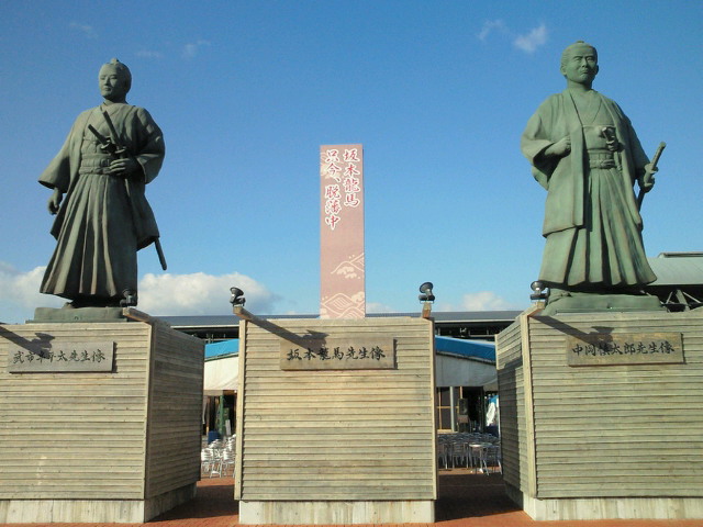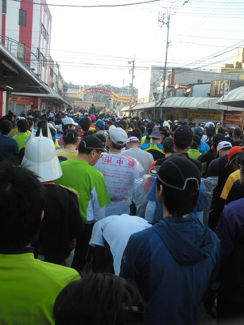 一緒するmaple-tutumiさんと博多駅で待ち合わせ。10時過ぎの新幹線で岡山へ! 鹿児島始発の列車だったが、運良く3人掛けの席に空席が二つ。先客の青年に断り相席することとなった。 この青年Fさん、弱冠24才ながら我々壮年・老年コンビに嫌な顔一つ見せないばかりか、我々との会話を楽しんでくれている風であった。活き活きとして誠実な姿勢に我々も話に興が乗り、結局は岡山までの車中ずっと話に花が咲くこととなった! 勿論話題は自転車やランに関することが主だったが、いつの日か一緒に走ることを約して大阪へ向かう青年と別れた。袖振り合うも多生の縁、再会の日のあることを願うこと切である。 楽しく話が弾んだ新幹線車中であったが、岡山からは一転最悪だった。 人身事故によりダイヤが乱れ、岡山発11時過ぎの列車に乗車。実際に発車したのは13時過ぎ・・! 子供であればペイントの施された列車で喜んだかも知れないが? 瀬戸大橋からの眺めや数日前の雪の残る景色を楽しみながらの旅となったが、列車は満員で終点まで席に座ることはなかった・・。 4時頃に高知駅到着。約3時間不安定な姿勢で立ちっぱなし、既にマラソンを完走した心持ち・・? 前日受付を済ますや即宿へ直行。 長距離走途中に便意を催すことが常態化している点を考慮、6時前に食事を済まし、腹ごなしも兼ねて外を歩く。 夕暮れの空は深い青。明日は天気には恵まれそうだ!