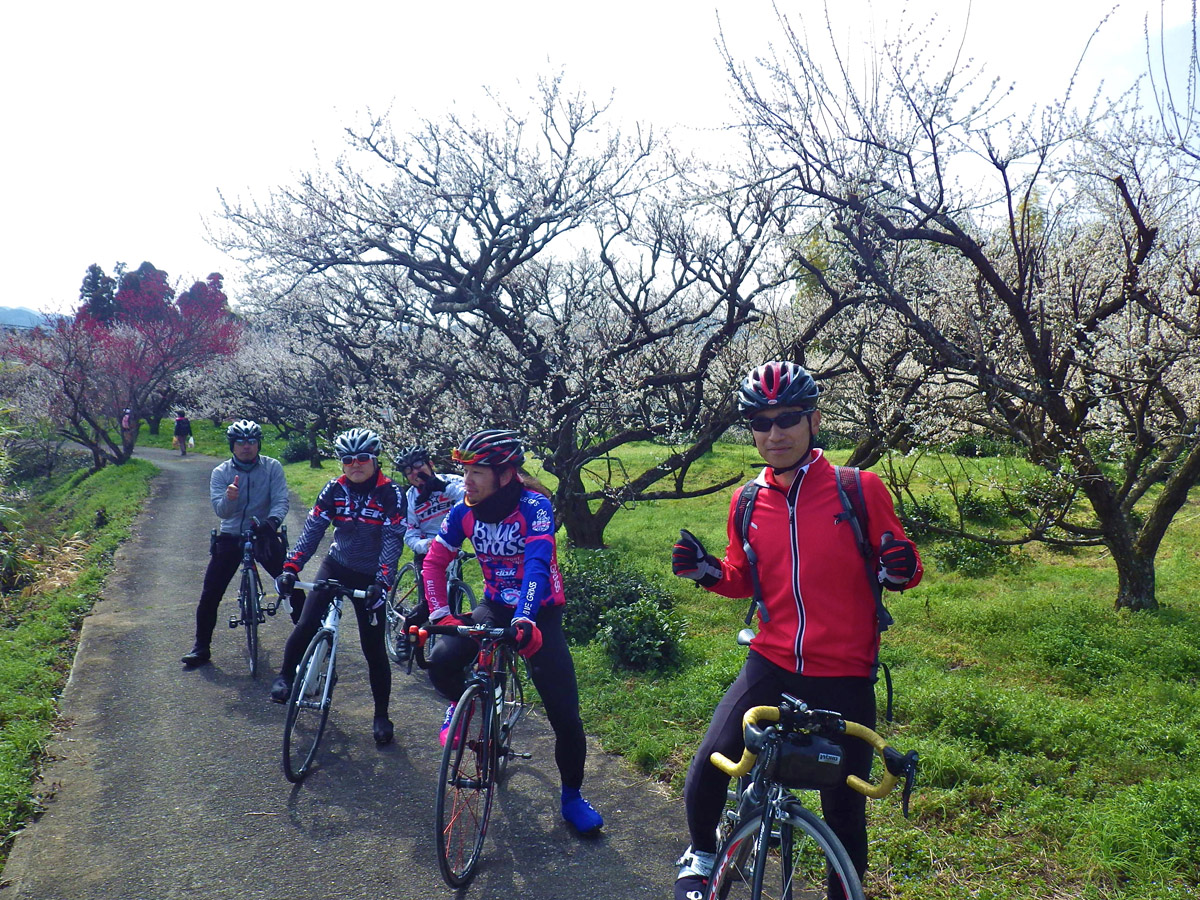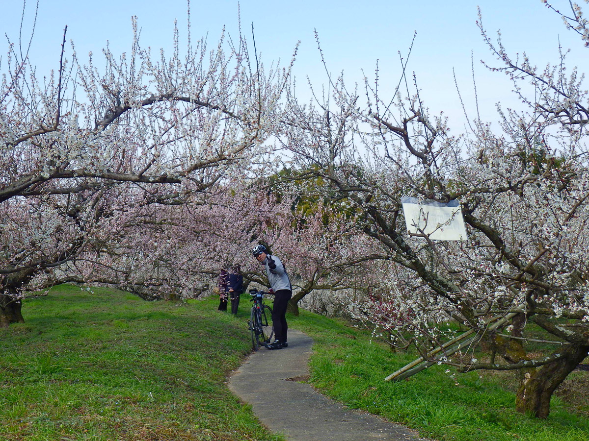 絶好の行楽日和の下、梅園は「梅3万本」の看板通りの素晴らしい景色を堪能させてくれました。 何と言っても青空に恵まれたのが最高だった。 そして、山を覆い尽くすように広がる梅! 以下4枚は是非拡大してご覧を! 梅の花のトンネルをくぐり抜けた先の山頂はまるで夢の国の展望台。 しかも、梅祭りの会場は広大な梅園のほんの一部。梅は遠く続く山も谷も埋め尽くさんばかり。梅の絨毯!梅のパッチワーク!全員が感動の光景でした。 こんな景色に囲まれてずっと時を過ごしたい! 最近テレビで何度も放送されご存知かと思いますが、是非一度は足を運んでみて下さい。決して期待を裏切りません。 本日の走行距離138㎞。梅林に眼福を得、地鶏にグルメ気分を味わい、心身共に健康増進の充実した一日でした。 |