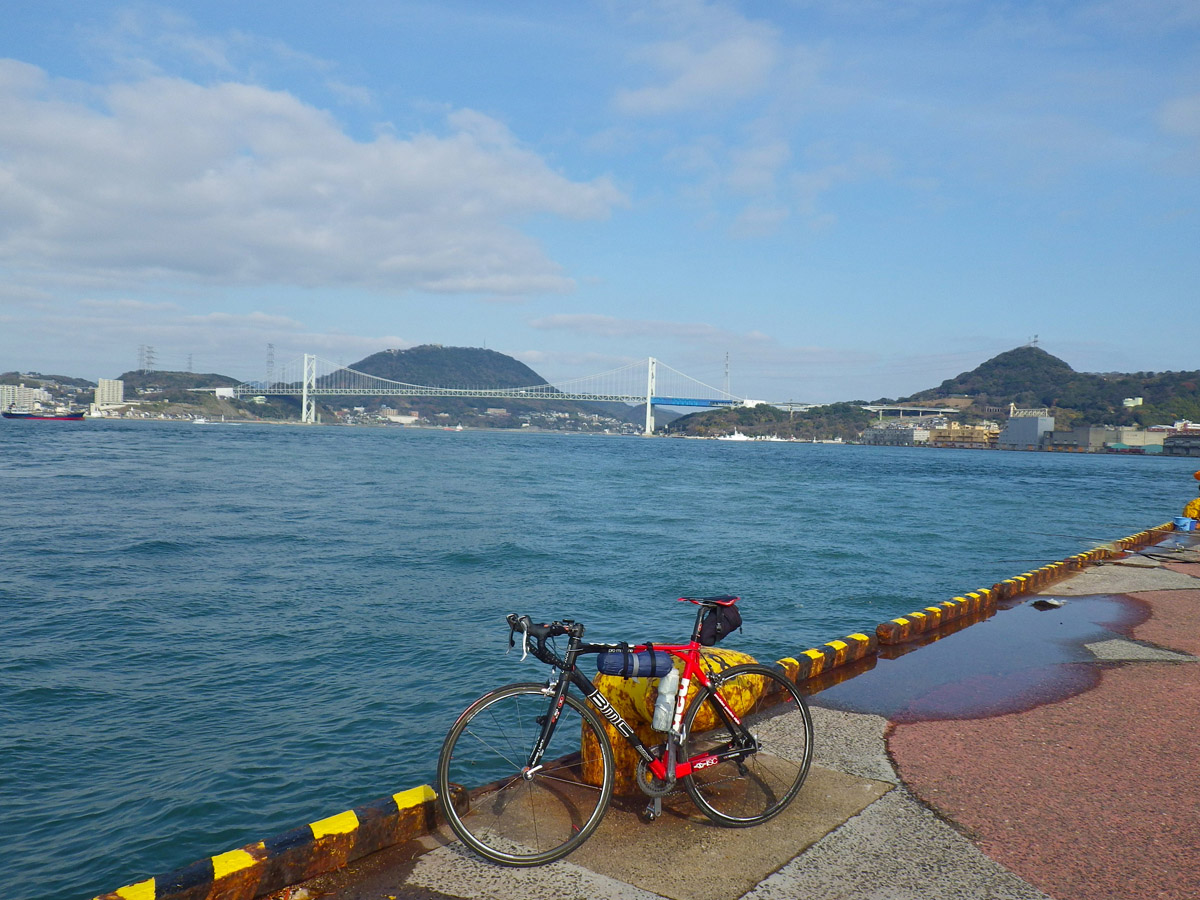 そして、有言実行!コース自己新記録達成です。(^^) さて、今回の本題。 仲間の力!やはりたいしたものです。 このところ僅か5〜60㎞が、とても遠く感じられる有様でしたが、昨日16日はチーム4人でのツーリングで今月初の100㎞超え達成。 楽しく充実した一日でした。 今回は、ほぼ全コースをグレッグさんに先導していただき、最後尾からのんびりと走りました。もっとも、時には40㎞超の強烈な牽きで、取り残されそうになることしばしば・・。 目的地門司レトロが近づき本州下関側が見えるようになると、疲れも吹き飛び一気に観光モード。特に、関門大橋は時間をかけて味わい、改めてその雄姿を認識した気がします。 この一枚が特にお気に入り! 写真は勿論娘からプレゼントされたPENTAXで撮影したのは言わずもがな。(^^) レトロ地区は初めてゆっくり見て回りました。 次回は、この洒落た船上レストランでもゆっくりしたいもの。 今回メインはレストラン「グレシャゾート」のバイキング。 雰囲気最高!味最高!和・洋・中の料理に舌鼓を打ちました。私が最初に取った料理は、、、 この後更に料理を取り、締めはソフトクリームお代わり付き! おまけに、誕生月サービスで1000円のVIP待遇。(^^) 更に付いてきた招かれざるおまけ。何と1㎏超の体重増加・・。 食後は、すっかり膨らんだ腹をさすりながらも激坂挑戦!和布刈公園に我々の歓声が響き渡ったのは言うまでもありません。 帰りは、戸畑駅からJRで輪行。車内宴会では心地よく、充実した一日のツーリングの思い出に浸りました。 本日の走行距離129㎞。