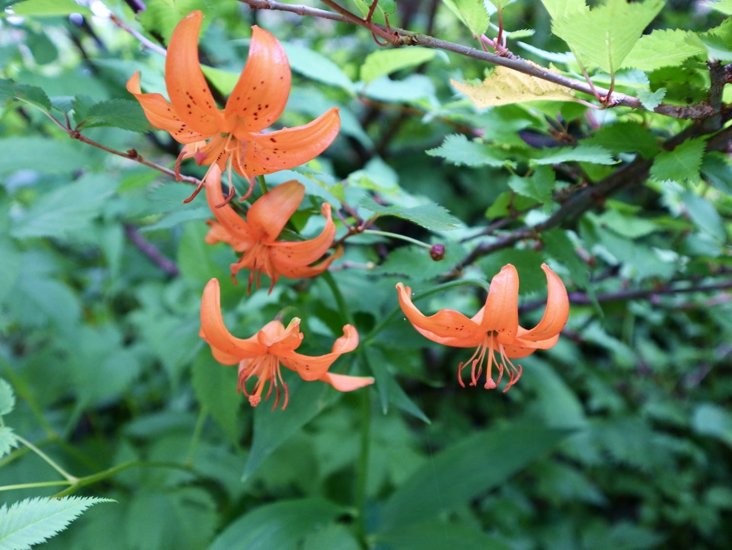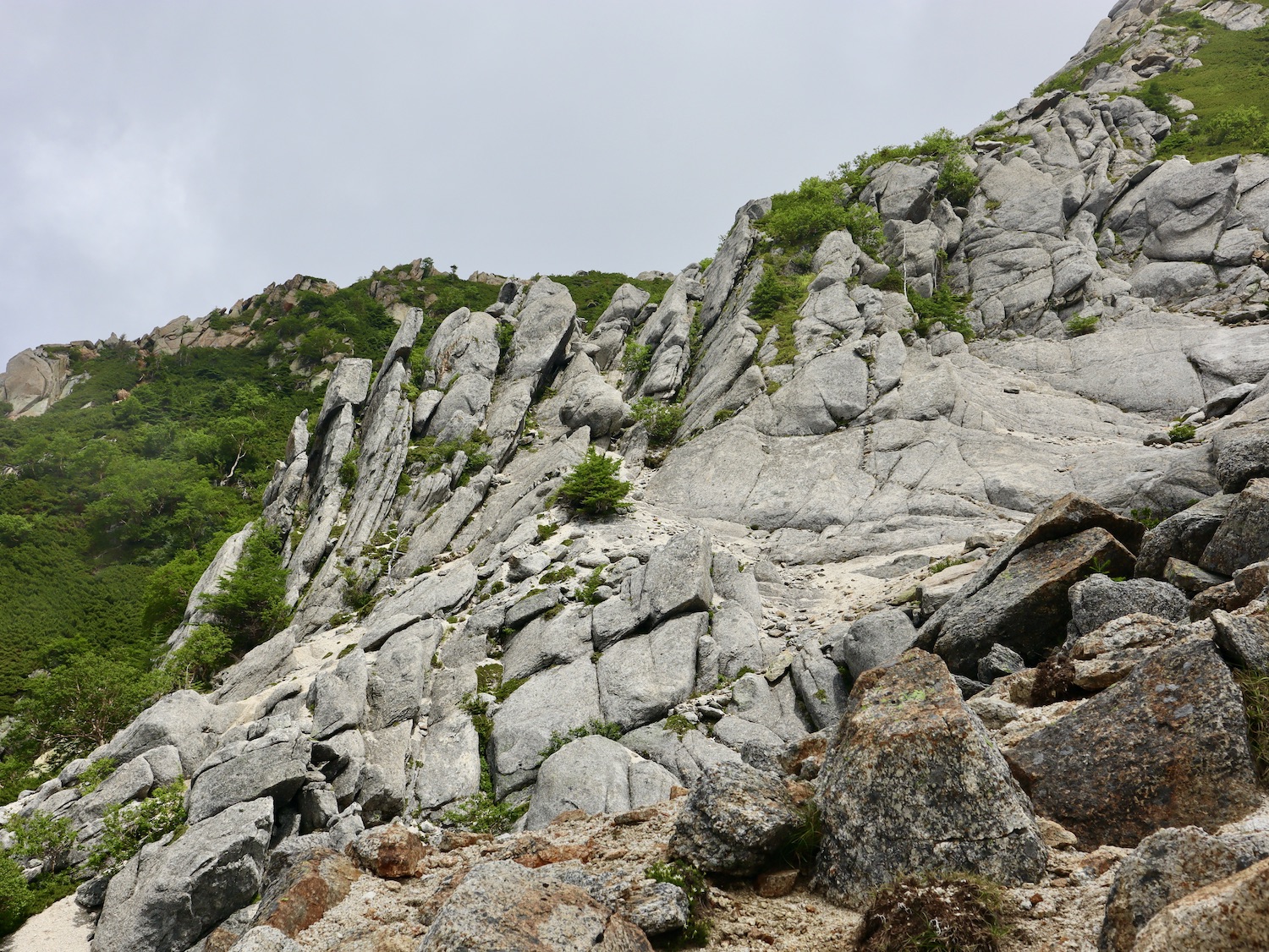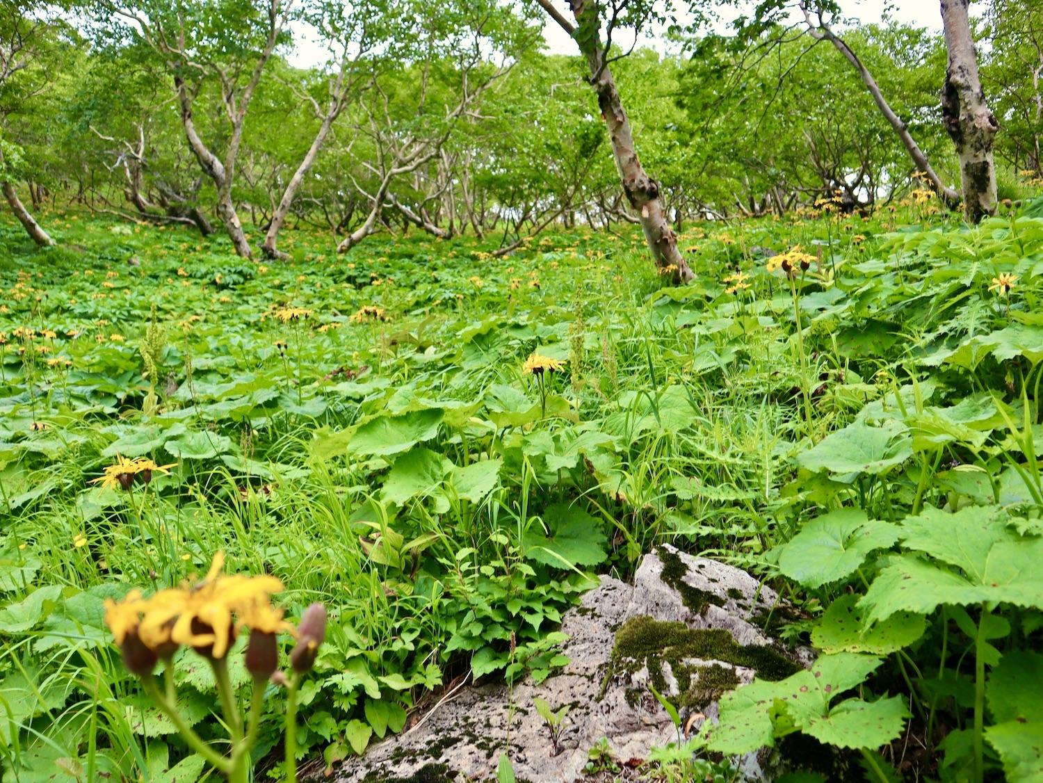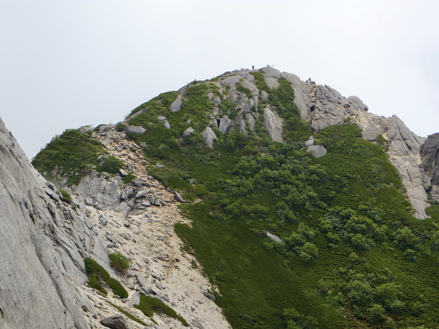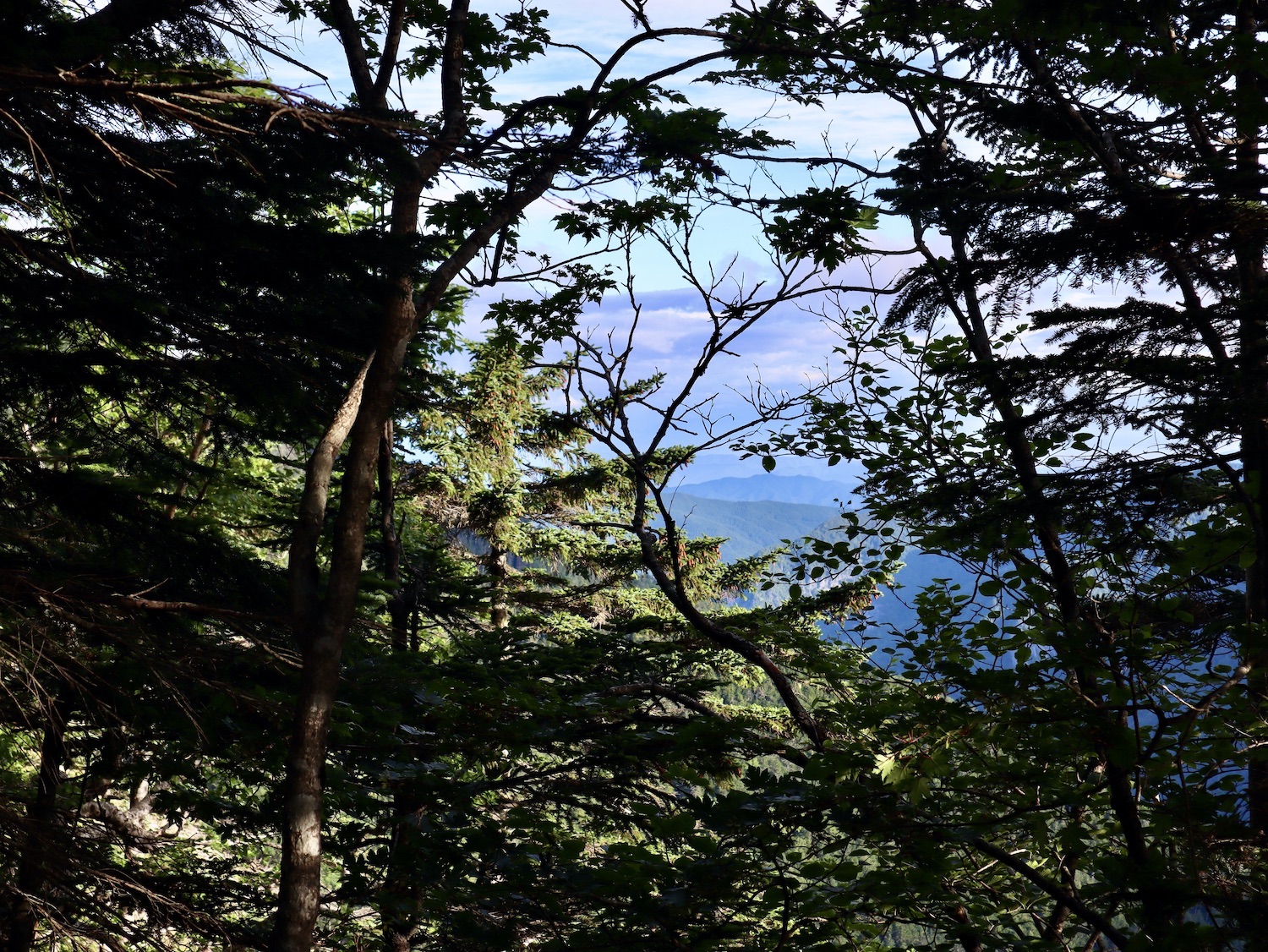 前日令和6年7月29日、山小屋「こもれび山荘」スタッフより『明日は昼前から天気が崩れ昼過ぎ雨になるが、明後日31日は好天の予報です』と報告があった。同行の園田君山﨑君と相談し、メインの甲斐駒ヶ岳登山を31日に回し、今日30日は仙丈ヶ岳登山実施に予定変更した。 山荘は標高2000mで高い山に囲まれ、スマホは使えないしテレビ・新聞もなく、スタッフの情報だけが頼りである。 好天下の活動時間を長くしようと、朝食時間を4:30に早め、弁当を受け取って、5:15山荘を出発した。 山荘周辺の、白っぽい木肌の高木が天を突いて伸びる様に威厳と安らぎを感じたが、登山路に入っても同じだ。 時折樹間から覗く遠い山並みにも元気を貰う。 7:00前、五合目藪沢大滝の頭(2519m)到着。ここから直登し小仙丈ヶ岳をめざすルートを取る。 更に進むこと20分、木々が低くなり背後に鋸岳(2685m)の山並みが見える。そして多分、右手雲の中には木曽駒ヶ岳。 登ること更に5〜6分、刻々と変わる雲の動きが気になる。 と、急速にガスが広がり始め、瞬く間にガスに包まれ強風に見舞われた。山荘に戻ることも考えたが、取り敢えず休憩・補給して様子を見ることにした。 雨は降らず、時折ガスが薄らぐのを幸い、小仙丈ヶ岳(2864m)だけでも登ろうと決し登頂を再開した。 出発から3時間、8:20小仙丈ヶ岳撃破! 園田君、山﨑君の勇姿もガスに霞む。 ガス酷く強風吹く中だが、同じルートを引き返すのも能がないと、仙丈小屋・馬の背ヒュッテ経由で山荘に戻ることにした。山頂を後にする園田・山﨑両君の姿が見る見るガスに溶け込む。 仙丈ヶ岳へ連なる尾根沿いに歩いて、9時過ぎ仙丈小屋との分岐に到着。依然ガス・風が酷く眺望も期待できない。後ろ髪を引かれる思いで仙丈ヶ岳(3032m)登頂断念、仙丈小屋へ向かう・・。 10:00前、仙丈小屋に到着。来し方はガスの中。 ものの10分も経たずにガスが晴れる! 山小屋の厚意で弁当を持ち込んで昼食にした。熱いコーヒーをいただき20分ほど休憩して小屋を出ると仙丈ヶ岳がきれいに見える。 記念に写真を撮り10:00過ぎ仙丈小屋を発った。 10分ほどして振り返ると左に仙丈ヶ岳、右に大仙丈ヶ岳(2975m)、間に仙丈小屋が見える。 西に目を転じると遠く市街地が見える。 雲に隠れてるのは中央アルプスか? 更に40分ほど歩き馬の背へ向かう途中、小仙丈ヶ岳と仙丈ヶ岳を写真1枚に収めた。驚いたことに写真を拡大すると、右端近く仙丈小屋が写っている! デジタルカメラの凄さ? このゆったりした山容ゆえに仙丈ヶ岳は「南アルプスの女王」と呼ばれるらしい。因みに、明日登る甲斐駒ヶ岳は存在感と威圧感の大きさゆえに「山の団十郎」と言われるそうだ。 「馬の背」へ行く目的はお花畑だった。しかし、天気の心配もありここで中断、「馬の背ヒュッテ」へ急ぐことにした。 しか〜し、女王のお花畑は人に優しい。 馬の背ヒュッテへの登山道沿いこそお花畑! 上の黄色い花はマルバダケブギ。 次は有名なトリカブト、見る分には問題なし。 戸台川に連なる流れの傍にはクルマユリの花。 藪沢の流れ沿いをこもれび山荘へ下山開始して間もなく、12:30頃だったろうか、雨脚が一気に強くなり土砂降り状態・・。写真を撮るどころじゃない。 山荘に戻って登山リュックを改めると、中身はまさに水浸し状態。夕食時の明日は好天の言葉が今は救いだ。 途中、雨は収まり最後の山荘への道を歩く。この静寂にして幽玄な雰囲気がとても気に入った。3時前無事山荘に帰着。足の疲れがやや不安だが、ガスあり強風あり本降りの雨あり、勿論絶景あり。苦っ楽しい一日に乾杯〜!! (第1日 完) 『待った〜! タイトルの女神って何じゃい』 これは失礼。今日私は南アルプスの女王に会い、女神に出会った。女王については既に語った。女神について一言。 下りの終点の大平小屋前で休憩していると下山して来た女性が『このサックみなさんのじゃありませんか』 我が雨具サック・・。雨の降り始め、直ぐ使えるよう装着したのを落としたらしい。土砂降りの中、拾ってずっと持って来てくれたのだ! 『なかなかできることじゃないね』と友の言葉 『いや〜、彼女は俺の女神だよ』と私。 女王が見せてくれたさまざまな景色に劣らぬ感動を受け、穏やかで豊かな気持ちになった。『ありがとうございました』お礼は言ったが名前さえ聞いてない。改めてお礼を言えなかったのが心残りだ。