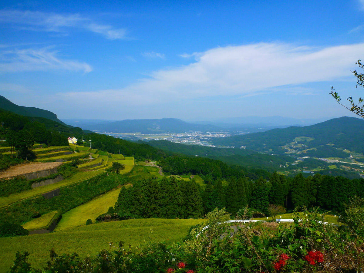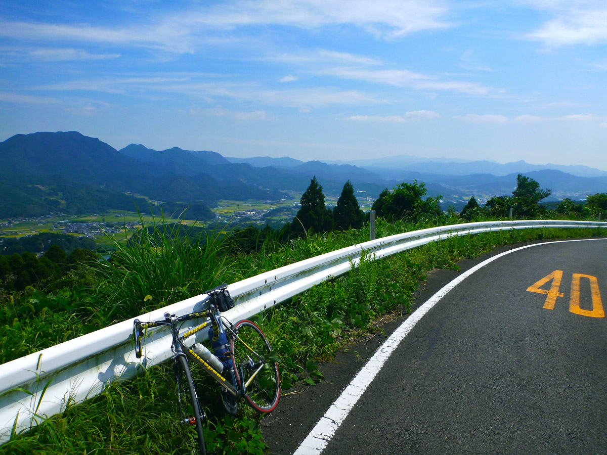 29日。台風の進路、ちょっと心配です。今日は何とかもちこたえ雨がぱらついた程度でしたが、明日はどうなることでしょう? さて、今日・明日は町内でのボランティア活動。今日は公園の植え込みの剪定作業をします。花壇の世話をする『花の会』の活動資金を稼ぐのも目的です。 劇的ビフォー&アフターとなったでしょうか? 皆さんの協力で、午前中一杯、昼過ぎまでかけて一気に完了したものの、帰宅後は、昨日の疲れもあってか缶酎ハイ一杯で熟睡! 夕方になって、ジョギングに出掛けます。脚にかなり張りがあり『即ランコース』を走ることにします。アップアップの走りにやや絶望的な気持ちも起こります。30数時間山の中を走り通す人物の例を身近に知っているだけに尚更。 ここは何事も同じ。とことん自分を信じ自分を頼りにするだけでしょう! それに、200mインターバル走!今に、、、。\(^O^)/ 本日のラン 5㎞。 静かに明日、今月最終日、を迎えます。 第9日 28日。上り口から7.2㎞。所要時間37分50秒。12時12分トンネル前到着!トンネルを抜けて、本日最初の写真がこれ。 中央部、山間に白く見えるのは佐世保か? 俺、もしかしてサイクリング企画の天才?(^^) そんな気になる一日でした。 スタートまたまた8時。走りながら計画の略案。①国見山到着、12時〜12時半。②佐世保着13時。最遅で13時半。③帰路国見山到着15時。④帰宅時間19時。が目安でした。 結果を先に、①12時12分 ②13時01分 ③15時07分 ④18時58分。(^-^) これ本当。自分でも信じられません! 国見ツーリングに対する麻生さんのコメントに刺激され、佐世保はログ・キットの佐世保バーガーを食べに行こうと決めます。これができたら自転車の走りが変わる気がしたのです。突破口になる気がしました。 汗水垂らして制覇した山、トンネルを抜けるとそこは佐世保! もう一枚写真を掲載させて下さい。σ(^^) そして、ログ・キット その佐世保バーガー(^^) 大満足のボリュームでした!ポテト・ドリンク付きで1000円ちょっとはお得です。 最後は雨との戦いとなり、本日の自転車192㎞。 (国見山登り口で親しげに挨拶をくれた方、国見ライダーさんの知り合い!?) 第8日 今日27日、午前中一杯は仕事に専念。昼から整骨院で、このところたまった筋肉の張りをほぐしてもらいます。疲労がない時には何ともないマッサージが拷問。『痛ててて、てぇ〜〜〜!』思わず声を上げます。帰宅後は、暫しソファで休養。夕方、大濠公園へ出掛けます。 自然は天才芸術家 挑むのは、200mのインターバル走。200mの全力走、そして、200mの休み。今までの1km の代わりにたった200mの全力走でいいのだから、楽じゃ〜〜ん!よし、ここは最初だが10本やったるで〜!はっきり言いますが、完全になめていました。 しか〜し、若い時にスポーツをした経験のない哀しさ!(v_v) ちっとも楽なんかじゃありません。元気があったのは3〜4本目まで。後は真っ直ぐ走るのさえままならない状態で、脚も上がらなくなりメロメロ。8本で降参。ジョギングと合わせて3km の甘酸っぱい初トライでした。 国道四苦八苦号入り口 本日充実のラン 3㎞! と、日記には書いておこう。(^^) おもしろき こともなき世を おもしろく 波瀾万丈、痛快無比の人生としか思えない高杉晋作の生涯。その高杉晋作の辞世の句が、『おもしろき こともなき世を ……』 糞面白くもない世を、どう生きようが一生は一生。高杉晋作にして、実は精一杯に人生ドラマを演じたのでしょうか? 人間の器量の絶望的な差は今更如何ともしがたい。せめて苦ッ楽しくドラマを演じましょう!(^^) さて、10日間700㎞の挑戦第7日。 今日26日、平戸往復、長崎輪行等を考えていましたが。出発した時は、既に朝8時。思いと行動が一致しません!(-。-;) 走りながら思いついたのが伊万里・国見山制覇。 伊万里市街の先に連なる山並み。 近づくにつれ、聳え立つような山容に圧倒されます。 登ろうなど、今まで一度も思いませんでした。佐世保行きは国見山を迂回して、常に早岐経由です。 伊万里を抜けると左折、国道202号に入るのですが、今日は直進国道498号です。498号、シ・ク・ハっく、酷道四苦八苦ではないですか〜〜!(゜◇゜)ガーン 延々と続く上り坂、しか〜〜し、以外に楽でした。何よりも素晴らしい景色が疲れを感じさせません。 どうぞ、クリック拡大でご覧下さい。先ずは、有田方向の眺め。 そして、伊万里市街方向の眺め。 ずっと眺めていたい気持ちを抑えて、まさに後ろ髪を引かれる思いで帰路につきます。 その国見山からの下りにある展望所で出会ったのが最初の写真のお二人。景色を撮るために止まったのですが、雰囲気の良さと挨拶の言葉に惹かれてついつい話し込んでしまいました。と言っても、一方的に自転車の素晴らしさを話しただけ? (^^ゞ 今日は本当に楽しい時間を過ごさせて頂きました。どこかで見かけたら是非声をかけて下さい!次回は、トンネルを通り抜けて佐世保に行きたいと思います。 国見岳に行ったと思ってましたが