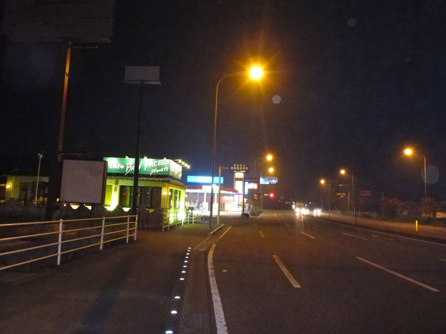 福岡・鹿児島を自転車で走るのは最低9〜10回目の筈ですが、やはりスタート時の若干の緊張と不安は変わりません。無事に帰り着くだろうか?ある程度の覚悟はしているつもりですが、一人旅となるとしばらくはペダリングは上の空。 スタートから1時間、筑紫野市高雄交差点通過。2時過ぎには何という偶然!東日本大震災に際し募金活動で協力いただいた、久留米サイクランドシライシ前通過。更に3時過ぎには八女市の道の駅たちばなを通過。風が強く?ピンボケ写真。f(^ー^; と、ここまでは順調!ところが小栗峠を上る時に、闇夜に現れた電照菊?のハウスの郷愁を誘う温かい光りに気持ちをそそられたのが運の尽き!シャッターが止まりません。 4時前小栗峠を越えると様子は一変濃霧の世界!幻想的な風景に魅了され連続シャッター。道路はドライアイスの白煙に覆われたようです。ダンプカーが白煙をかき分けて爆走。視界が悪く、折角の下り坂もスピードは控え目。 4時半には山鹿の市街地を抜け、5時半には熊本市中心部を通り抜けます。この間徐々に白んでゆく空は息をのむ美しさ。 白川を渡る頃には東の空はかなり明るくなっています。 そして、6時少し過ぎ、熊本・八代間で日の出の時を迎えました。何とも言えない神々しさです。 7時過ぎ八代市街を走る頃、人や車の動きも多くなります。ここ3〜4回の徹夜ツアーでは夜の帳の中に眺めた無機質な工場の煙突が、妙に人の息遣いを感じさせてくれます。 ナイトツーリングの魅力をたっぷり味わった鹿児島ツーリング前半でした。