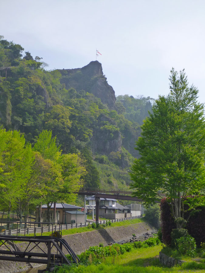 八代のすぐ先は日奈久、温泉と竹輪の街。朝8時まだ営業する店もない日奈久た(ひなびた)(^^ゞ 町ですが竹輪屋さん発見〜!気さくな店員さんが、店に続く工場からできたての竹輪を出してくれました!うま〜〜〜い!『お代わり〜』結局4本。それにたこ天も、、。朝食代わりです。σ(^^) 日奈久から先がコース最大の山場、アップ・ダウンの連続、赤松トンネル、海浦トンネル、佐敷トンネル、津奈木トンネルと続きます。海浦豚眠を抜けると突如海と山の景色が広がります。海に突っ込んで行く気分!(シャッター切るのが遅かったかな〜) 次に、最長の1570m佐敷トンネルを抜けた先には川があり、川面には鯉が気持ちよさそうに泳いでいました。何万人分の鯉の洗いができるやら (^o^) (来月の鯉ツアーが待ち遠しい) 最後にある津奈木トンネルの先には懐かしい景色が待っていました。つなぎ美術館の側にそそり立つ岩山です。今回は鯉のぼりが山上に泳いでいましたが、最近当てにならない記憶では普段は国旗が翻っています。いつか登ってみたい所です。 (右の写真クリックしてみて下さい。鯉のぼり泳いでます。) 津奈木通過は10時前、この頃になると暑さとの戦い。写真を撮るどころでなく、枕崎行きだけが関心事。水俣、出水とひたすら走り続けます。しか〜〜し、12時半近く、福岡から走ること240㎞余、道の駅阿久根でやや長めの休憩を決断します。日奈久の竹輪以外まともに食べてません。深夜の福岡帰着を覚悟しない限り枕崎行きは、、、(Q_Q)↓むり、無理です。 実質、最終目標は鹿児島と諦めての休憩でした。芋饅頭の豪華な食事 σ(^◇^;)を貪る私に相応しい景色はこれだ〜〜っ!